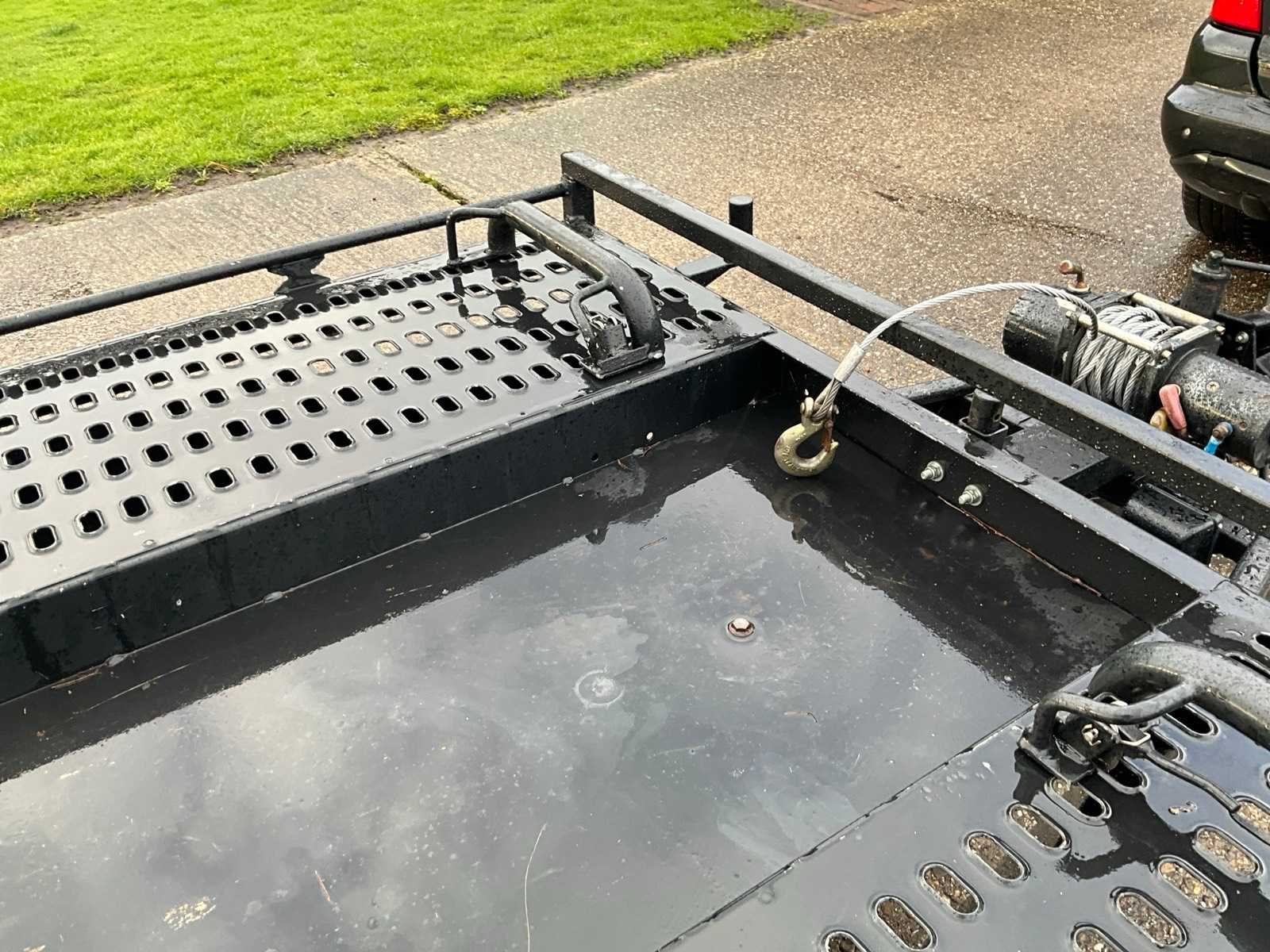 Voorzien van oprijplaten 248x30cm; elektrische lier; opbergkist met inhoud; accu/ acculader; laadvloer circa. 400x199cm Merk: Hapert Type: TA Bouwjaar: 2017 Chassisnummer: XLHAT270000795856 Aantal assen: 2 Ledig gewicht: 656kg Laadvermogen: 2044kg Datum eerste toelating: 2017-07-05 Datum eerste toelating (NL): 2017-07-05 Kenteken: 15-WP-PT Kentekenpapieren compleet?: true Hoogte: 60cm Nationaliteit documenten: NL