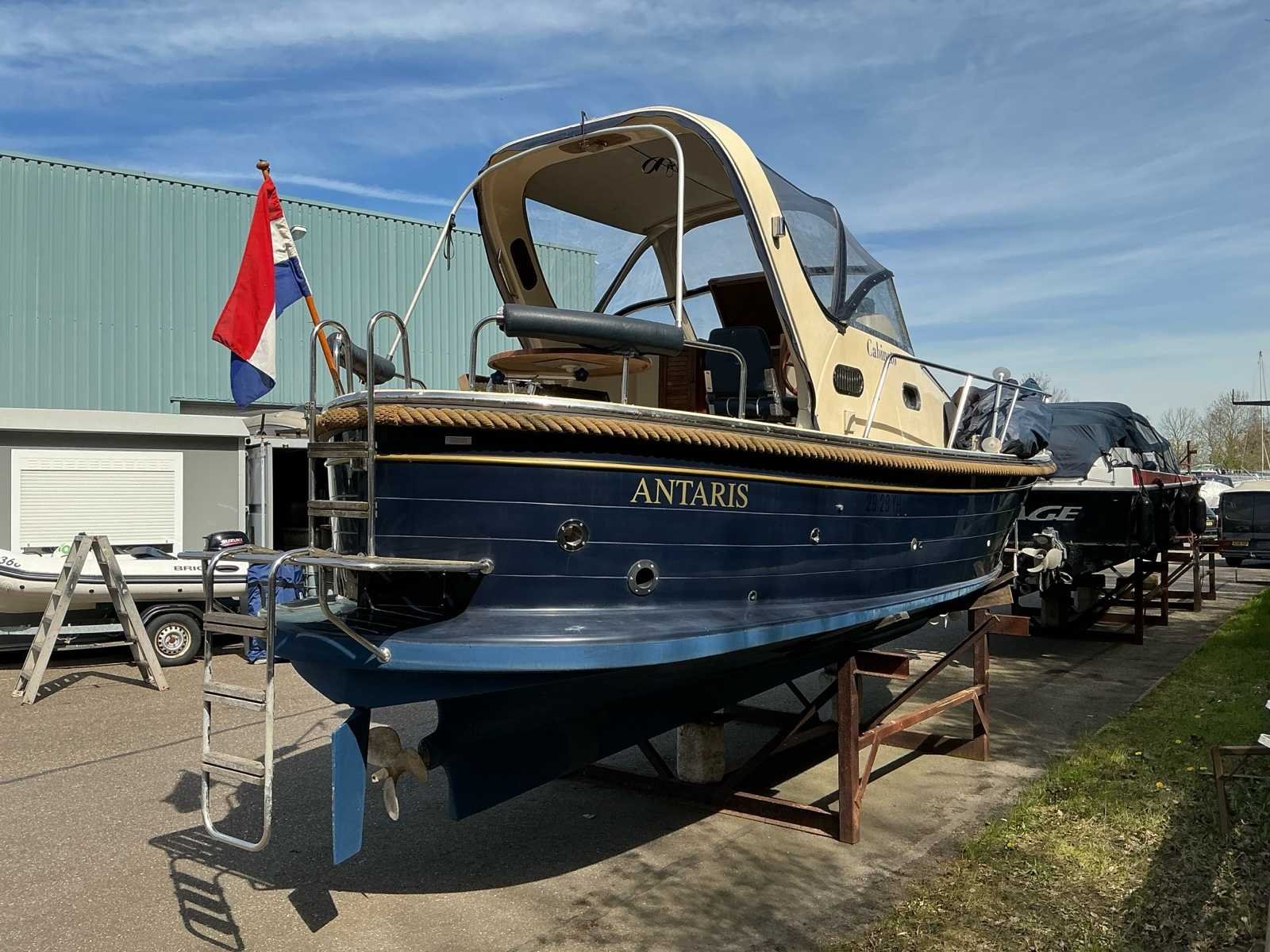 Voorzien: snelvarend, diesel standkachel, volle tank diesel, met winterzeil, cabriokap, plastic kap/ramen vernieuwd, Merk: Antaris Type: Cabinato 770 Rompmateriaal: Polyester Brandstof: Diesel Bouwjaar: 1998 Serienummer: ITMMIAA012B998 Lengte over alles: 7.7m Breedte formaat: 2.65m Rompvorm: Sloep met kajuit Type motor: Volvo Penta TAMD22 Aantal cilinders: 4 Binnenboord: true Vermogen: 77kW Afgelezen urenstand: 526hr Boegschroef: true Inhoud brandstoftank: 200l Type stuurinrichting: Hydraulische Navigatieverlichting: true