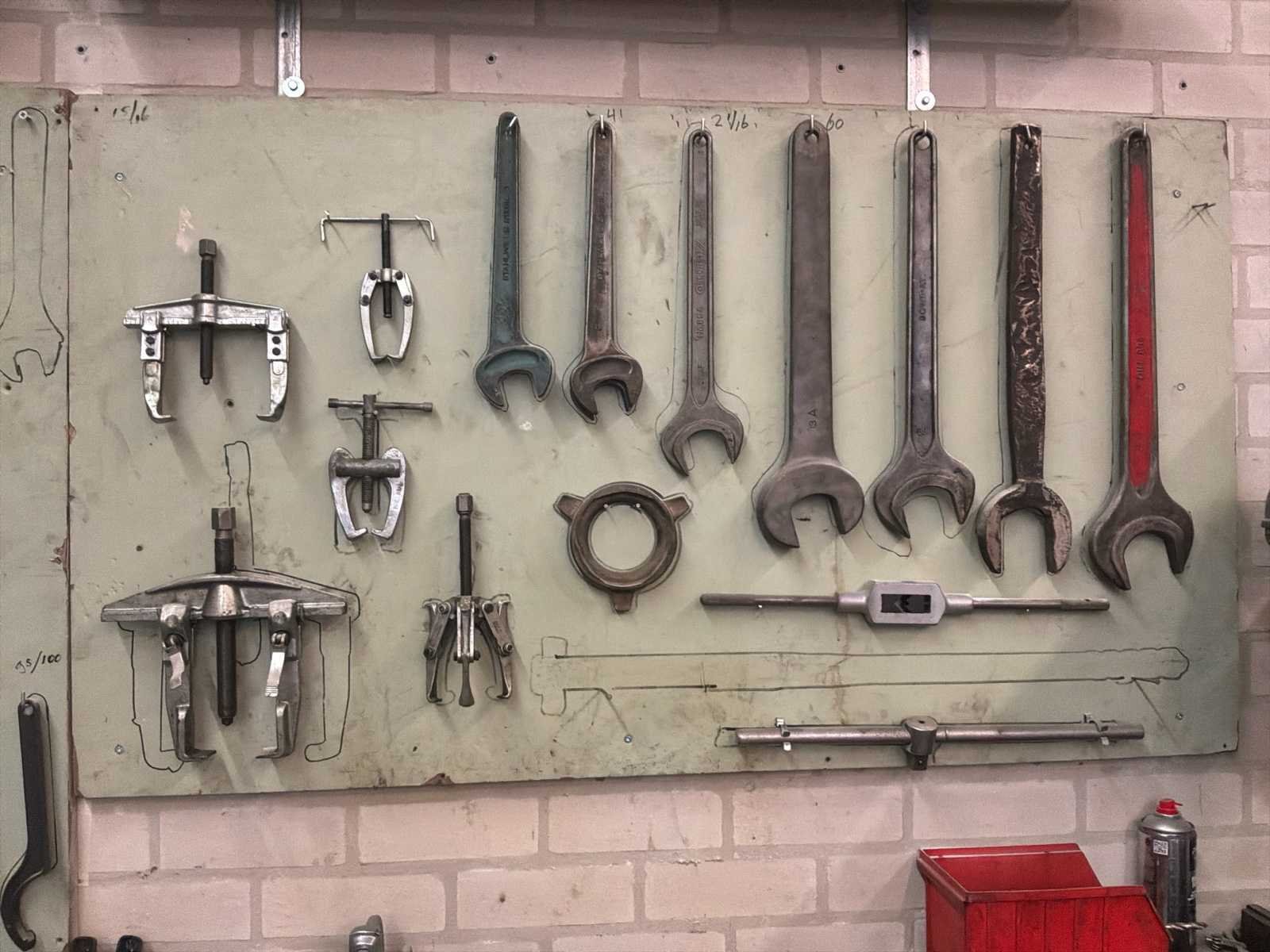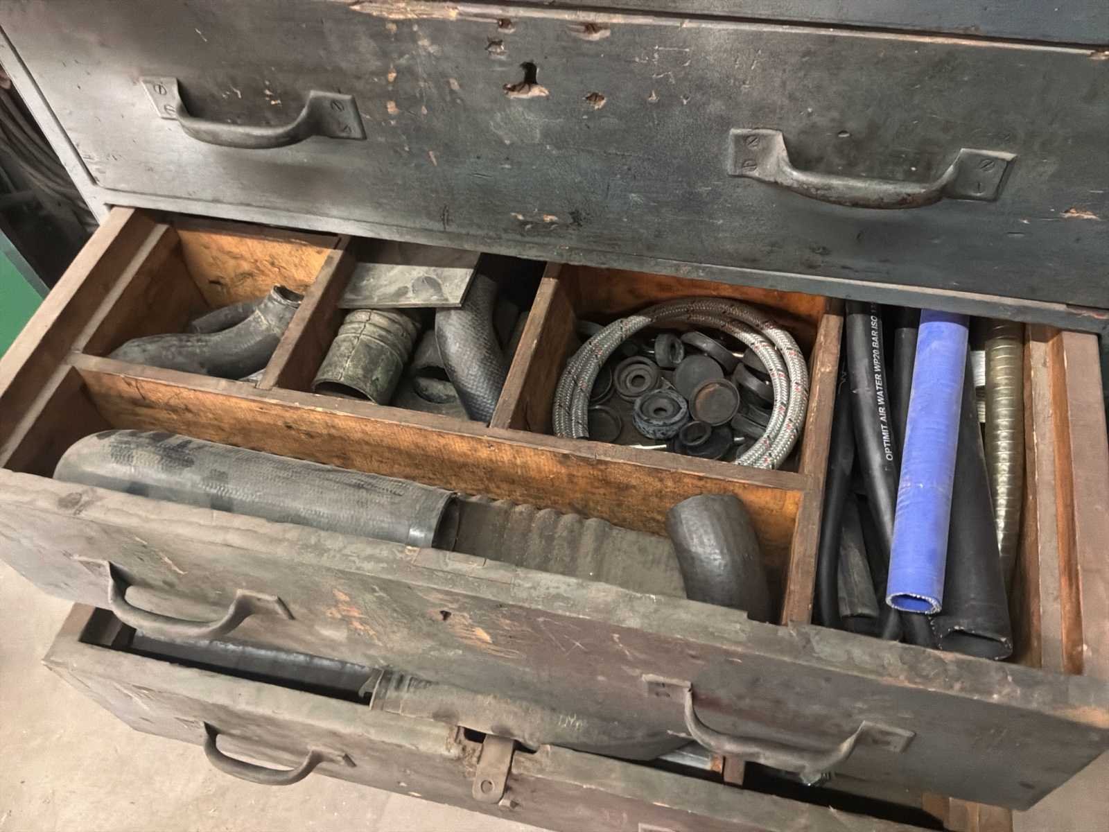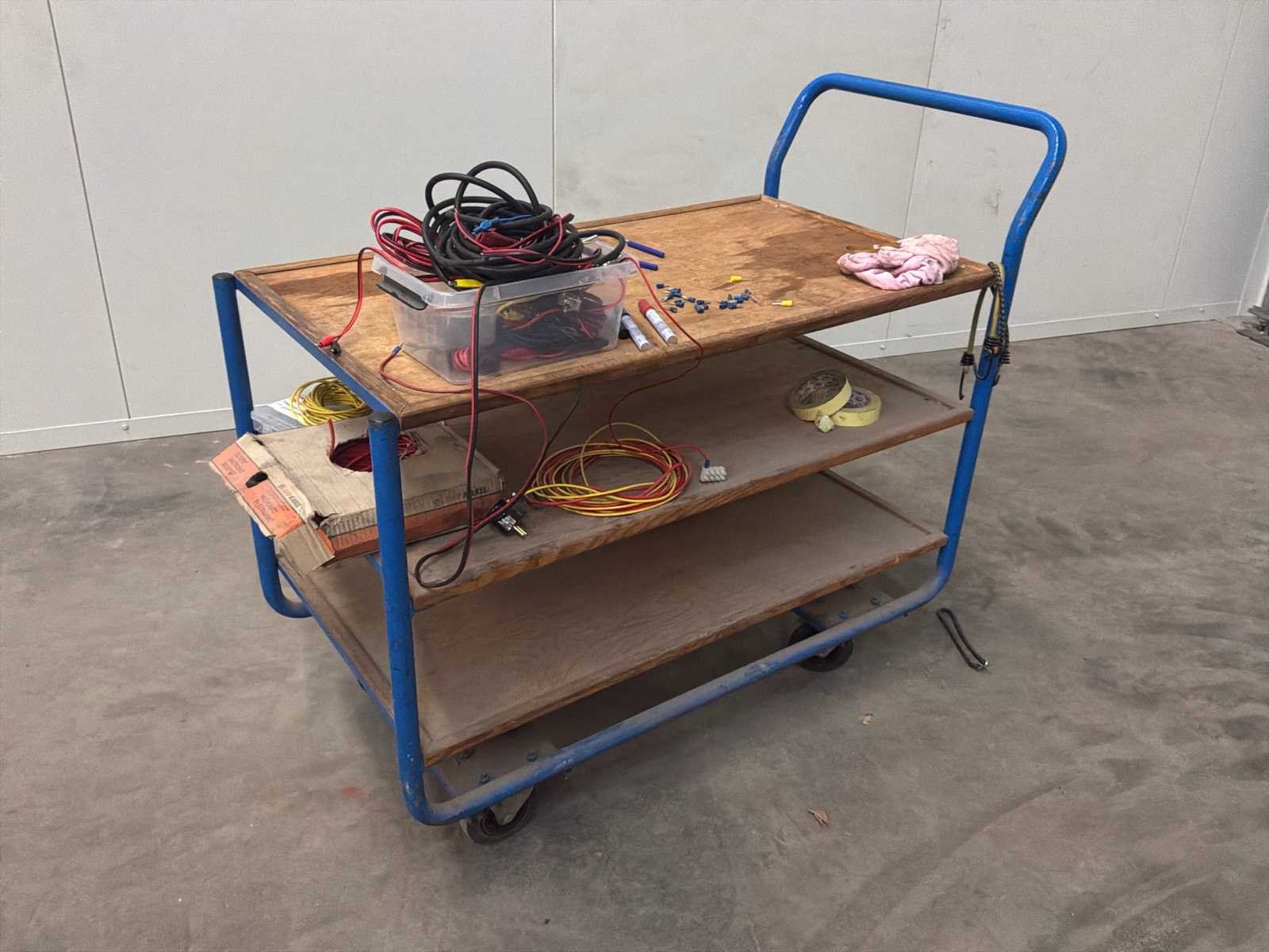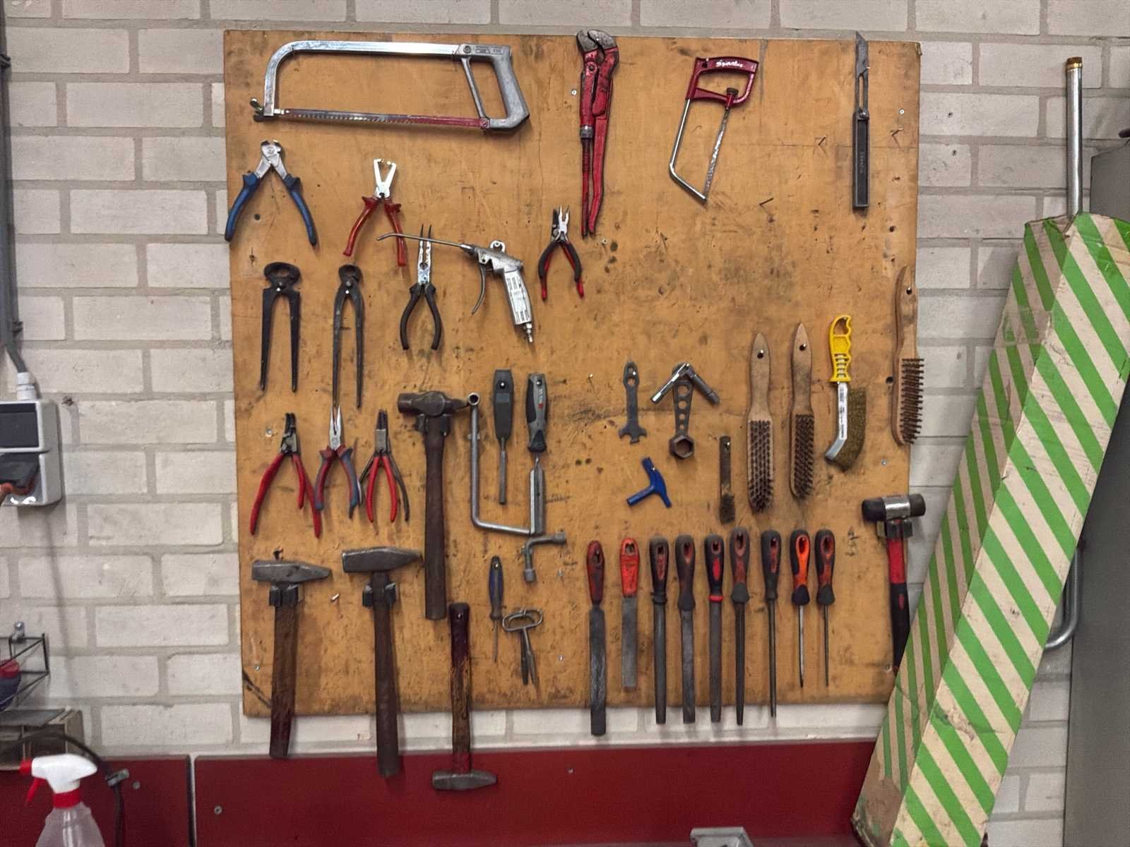 Bestaande uit onder andere 1x Kärcher HDS755 hogedrukreiniger (werking onbekend), 1x Airpress K200-600 compressor, 1x legbordstelling met inhoud circa 303x50x212cm, 1x Powerbrush GV702 industriële(water)stofzuiger, 1x Tech Drive G4 stofzuiger, 2x palletstelling circa 283x93x198/257cm (zonder inhoud), 1x palletstelling circa 570x90x540cm (zonder inhoud), 1x houten ladekast met inhoud circa 168x82x120cm, diverse handgereedschap, 1x werkbank met stalen blad inclusief bankschroef afmeting circa 300x89x85cm, partij diverse auto-onderdelen verdeeld over diverse kasten (kasten niet inbegrepen), 3x rode werkbank circa 120x80x81cm voorzien van 1 Slibette slijpmachine en 1x bankschroef inclusief handgereedschap, 1x garagekrik, diverse hijsmaterialen, 1x Kinzo 8E316 zaagtafel, 1x transportwagen circa 105x60x100cm, 1x transportwagen met inhoud circa 139x65x87cm