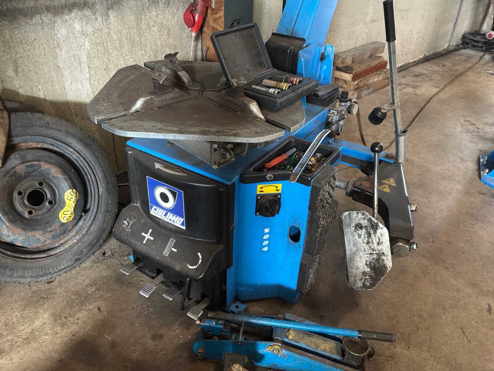 Bestaande uit 1x CEMB C31 balanceermachine met toebehoren zoals loodjes en 1x Giuliano 5224 bandenwissel machine met toebehoren inclusief 3x garagekrik * alles in werkende conditie Leveringsvoorwaarden: Niet gefundeerd - onverpakt