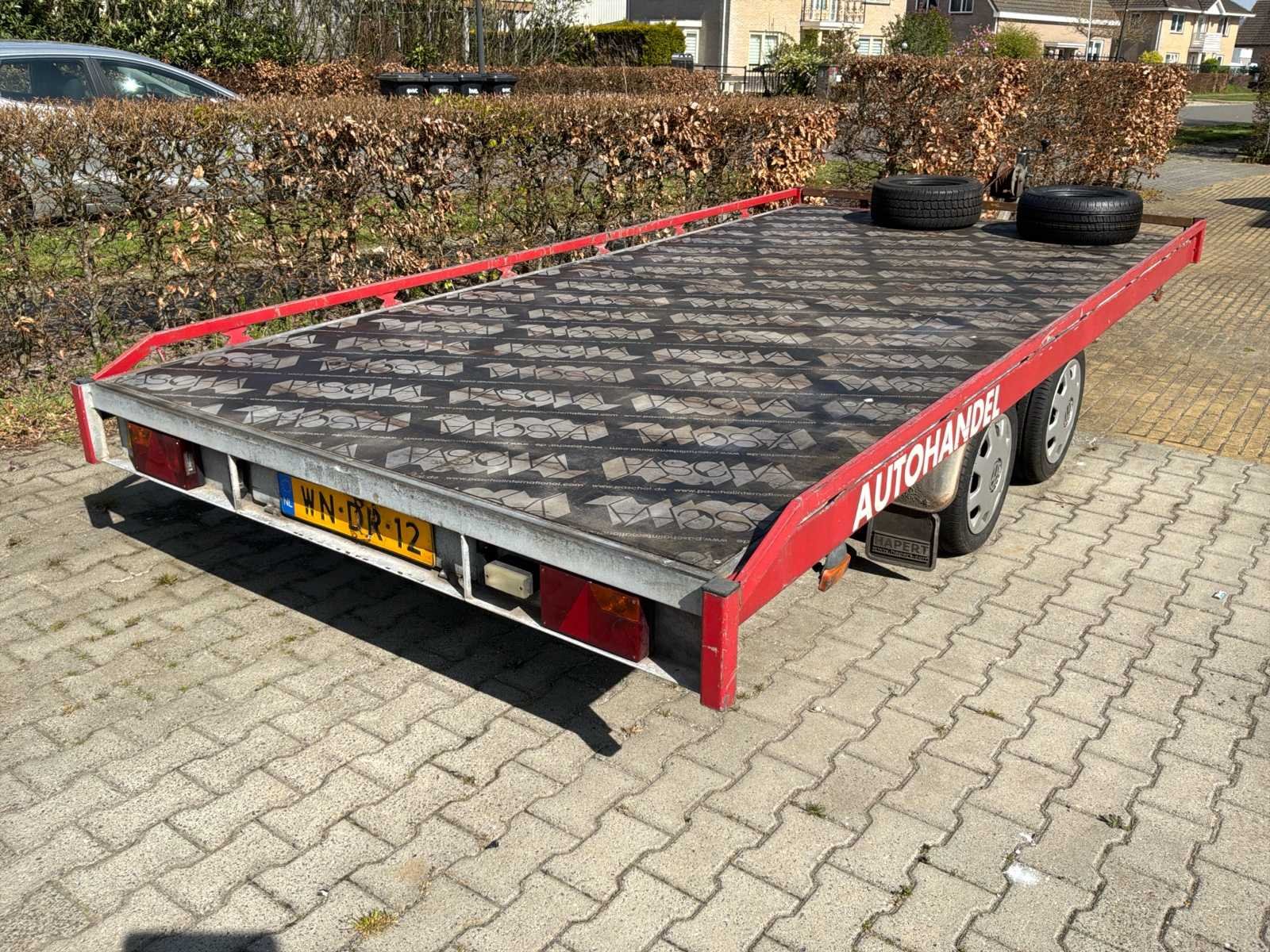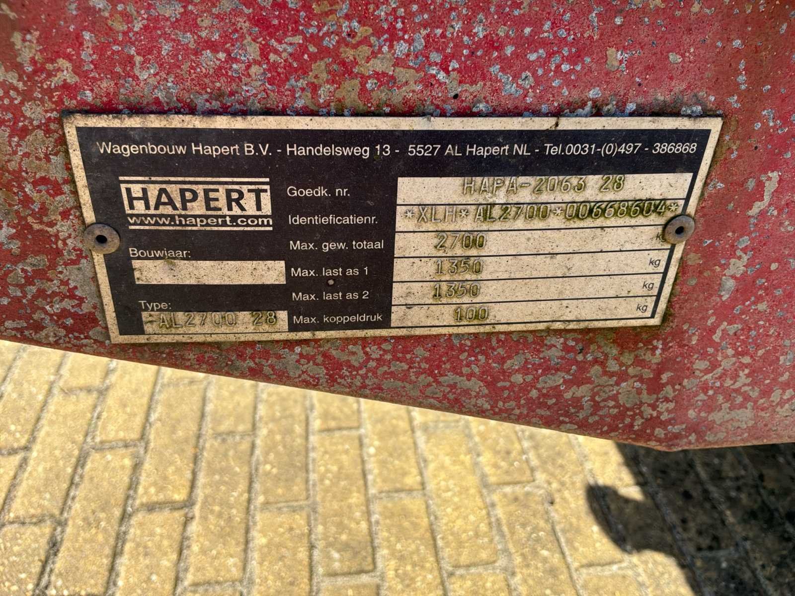 Max totaal gewicht 2100 kilo * voorzien van oploopjes * voorzien van handlier * voorzien van 2 reservebanden Merk: Hapert Type: AL 2700 Bouwjaar: 2005 Chassisnummer: XLHAL270000668604 Aantal assen: 2 Laadbak afmeting l: 400cm Laadbak afmeting b: 200cm Ledig gewicht: 667kg Laadvermogen: 2100kg Datum eerste toelating: 2005-02-08 Kenteken: WNDR12 Hoogte: 75cm Lengte: 355cm Breedte: 206cm Nationaliteit documenten: Nederlands Zelf rijdend exporteren: Mogelijk Leveringsvoorwaarden: Niet gefundeerd - onverpakt