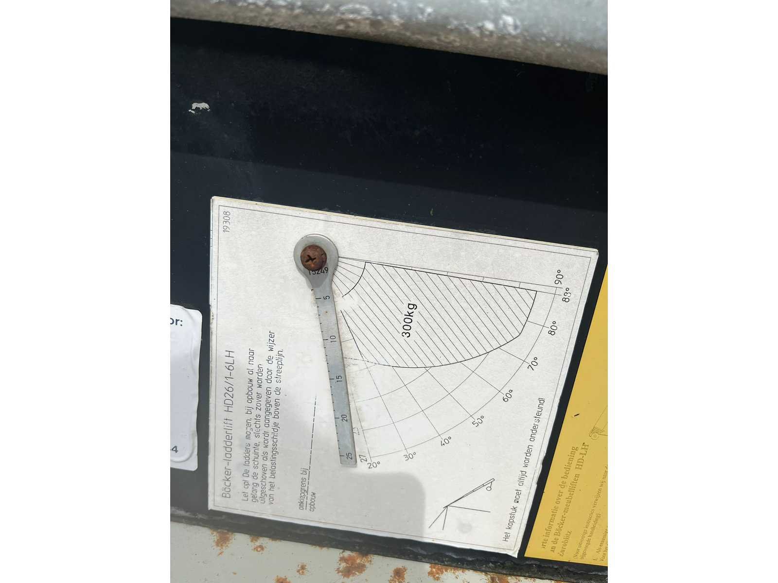 Bocker hd26/1-6lh 26 mtr 300 kg Met kenteken Honda gx360 elektrisch gestart watergekoeld ( staat al een paar jaar stil) Afstand bediening Laadbak in delen neerklabaar en draaibaar Bezichtiging alleen op afspraak Merk: Bocker Type: HD26/1-6LH 26m Max. platformhoogte: 26m Max. belasting: 300kg Merk motor: Honda GX360