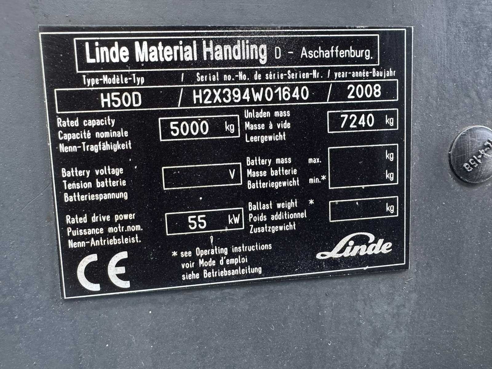 Linde - 2008 - h50d - 5.8m triplex - vorkheftruck