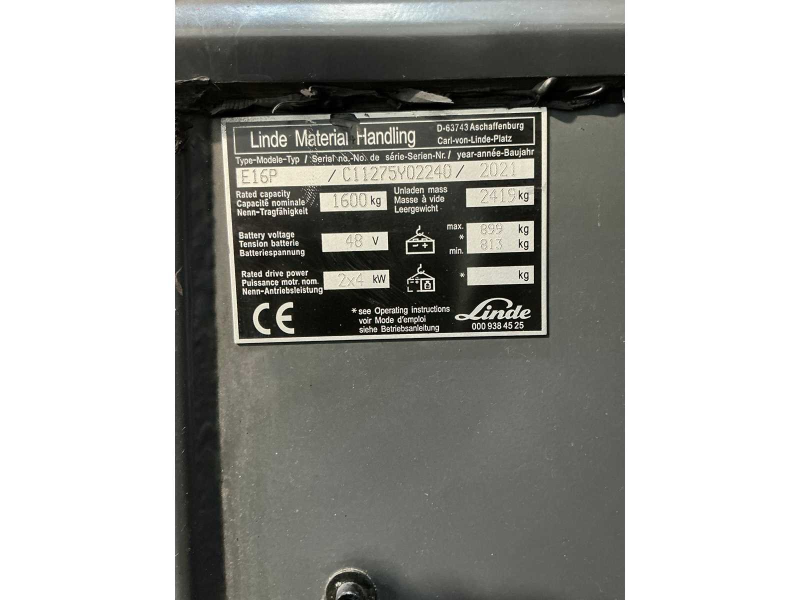 Linde - e16p - 2021 - 4.62m triplex, side-shift - vorkheftruck