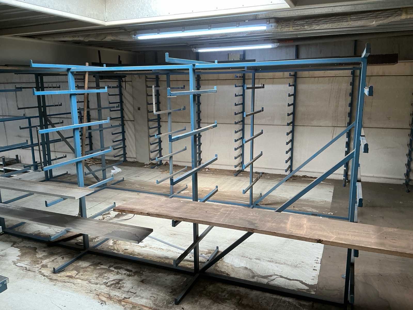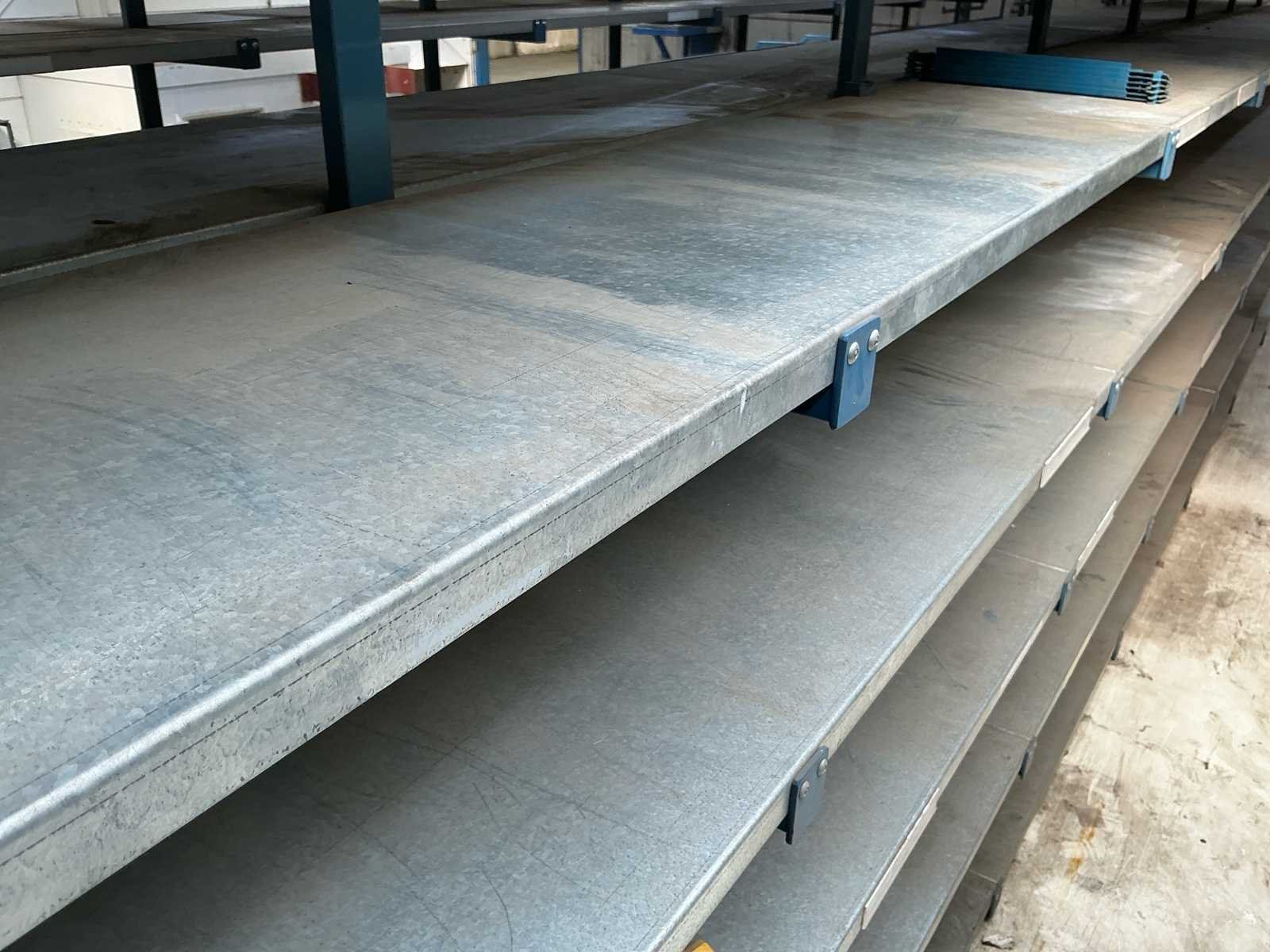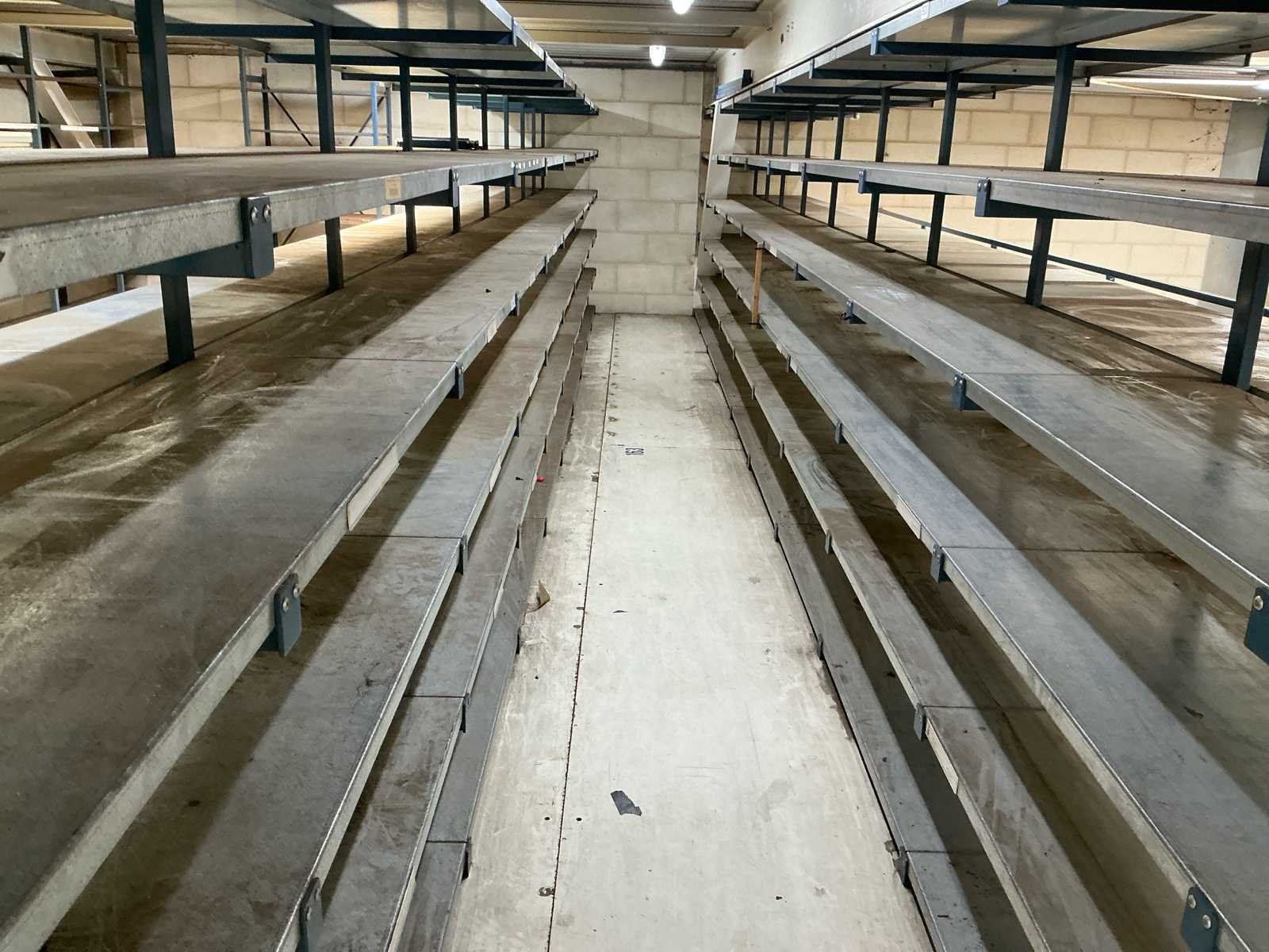Bestaande uit: 2x dubbele magazijnstelling (875 cm lengte, 200cm hoogte, 90cm diepte) met 6 rijen legborden. 2x dubbele magazijnstelling ( 460cm lengte, 170cm hoogte, 84cm diepte) zonder legborden 1x enkele magazijnstelling ( 600cm lengte, 175cm hoogte, 40 cm diepte) zonder legborden