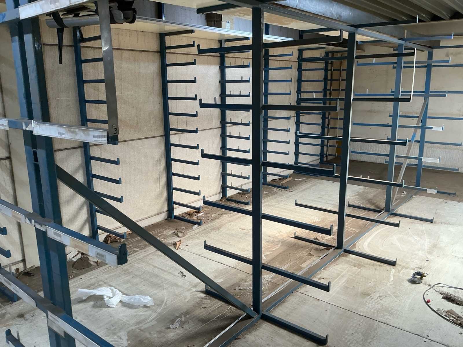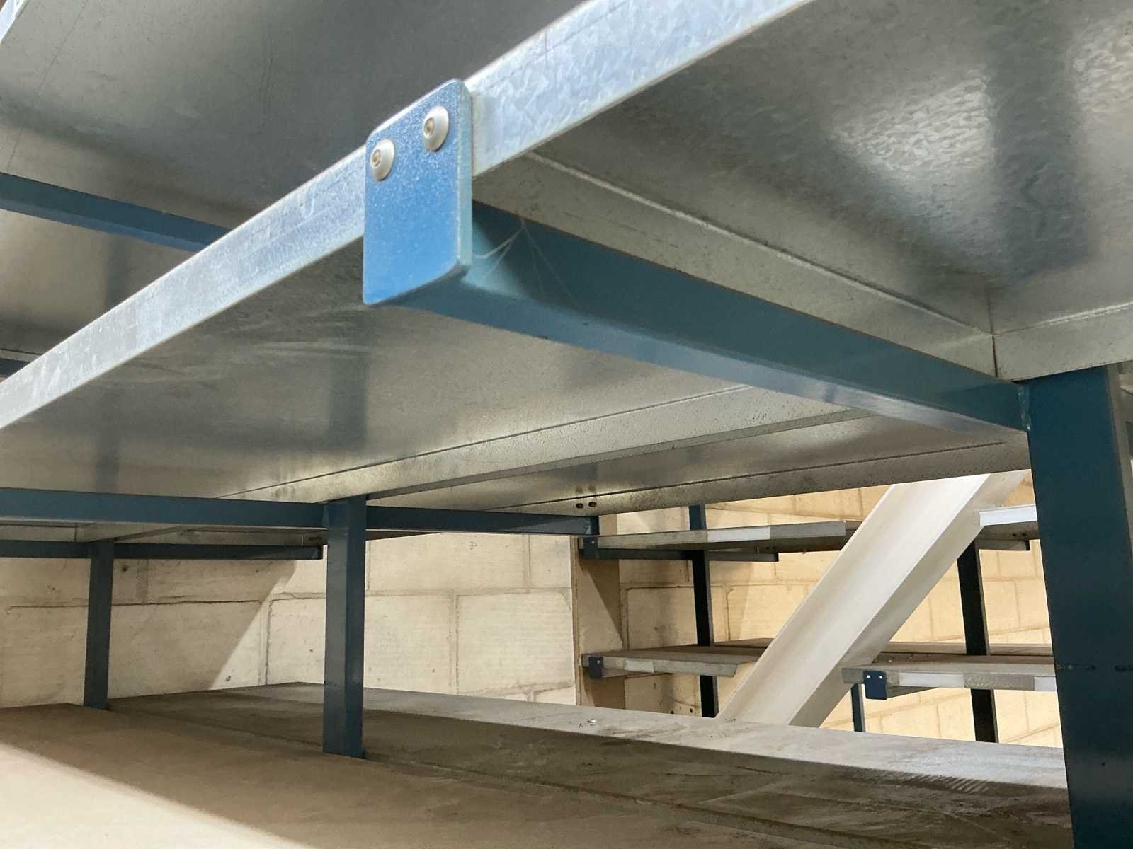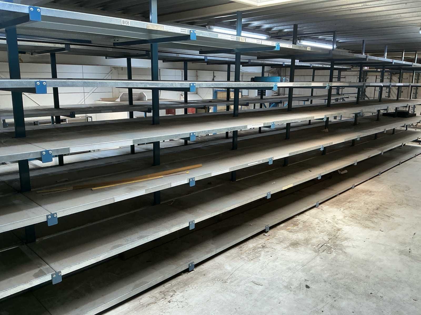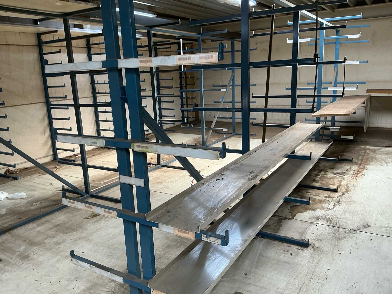 Bestaande uit: 2x dubbele magazijnstelling (875 cm lengte, 200cm hoogte, 90cm diepte) met 6 rijen legborden. 2x dubbele magazijnstelling ( 460cm lengte, 170cm hoogte, 84cm diepte) zonder legborden 1x enkele magazijnstelling ( 600cm lengte, 175cm hoogte, 40 cm diepte) zonder legborden