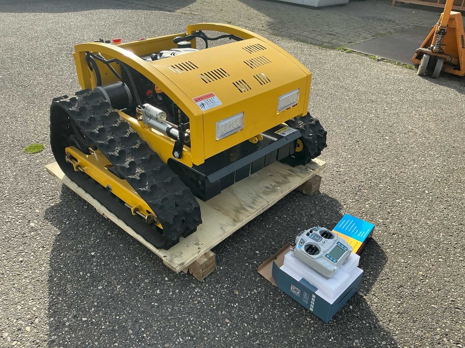 Voorzien van ''Microzone C7'' afstandsbediening; 12V Charger Merk: AGT Type: JD500 Bouwjaar: 2025 Serienummer: JD50025071304A Werkbreedte: 50cm Benzinemotor: true Brandstof: Benzine Vermogen (pk): 9 Eigen gewicht: 122kg Totale afmeting L: 900cm Totale afmeting Breedte: 930cm Totale afmeting Hoogte: 600cm