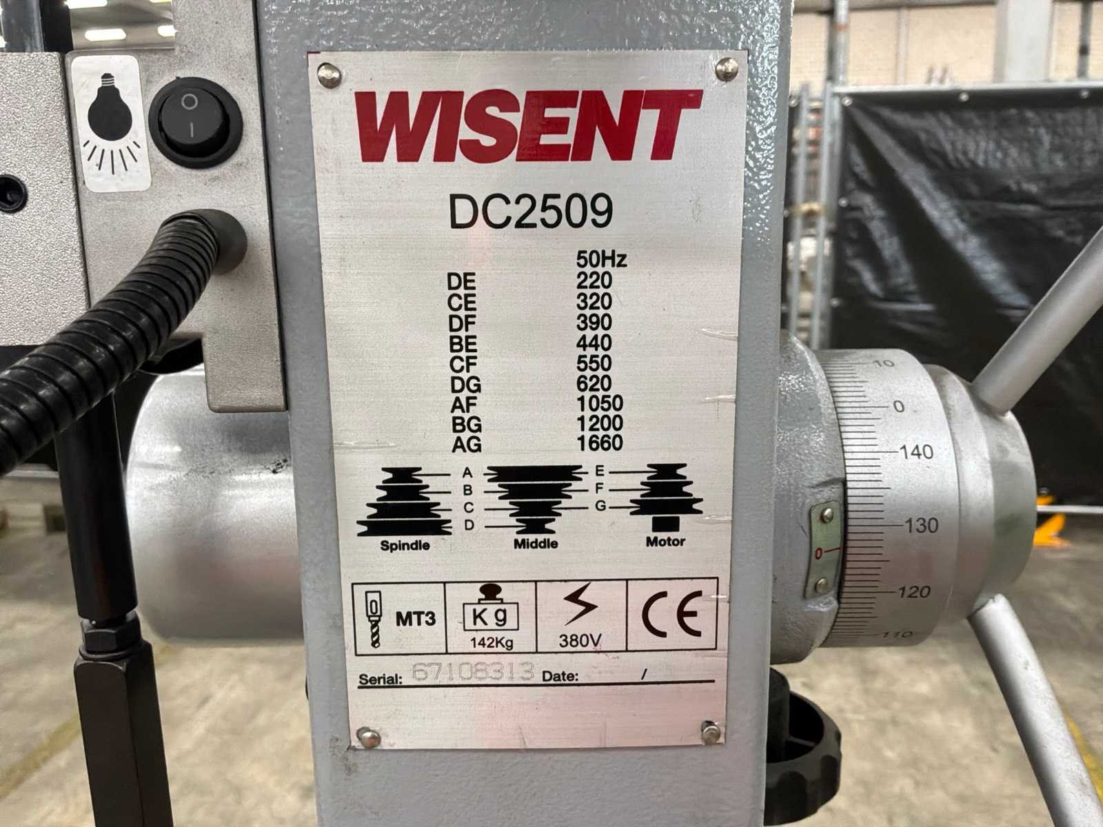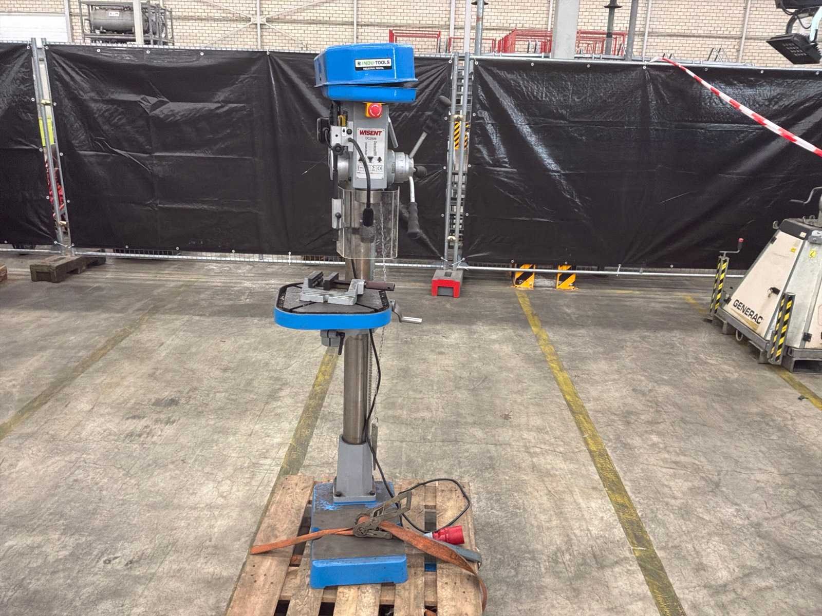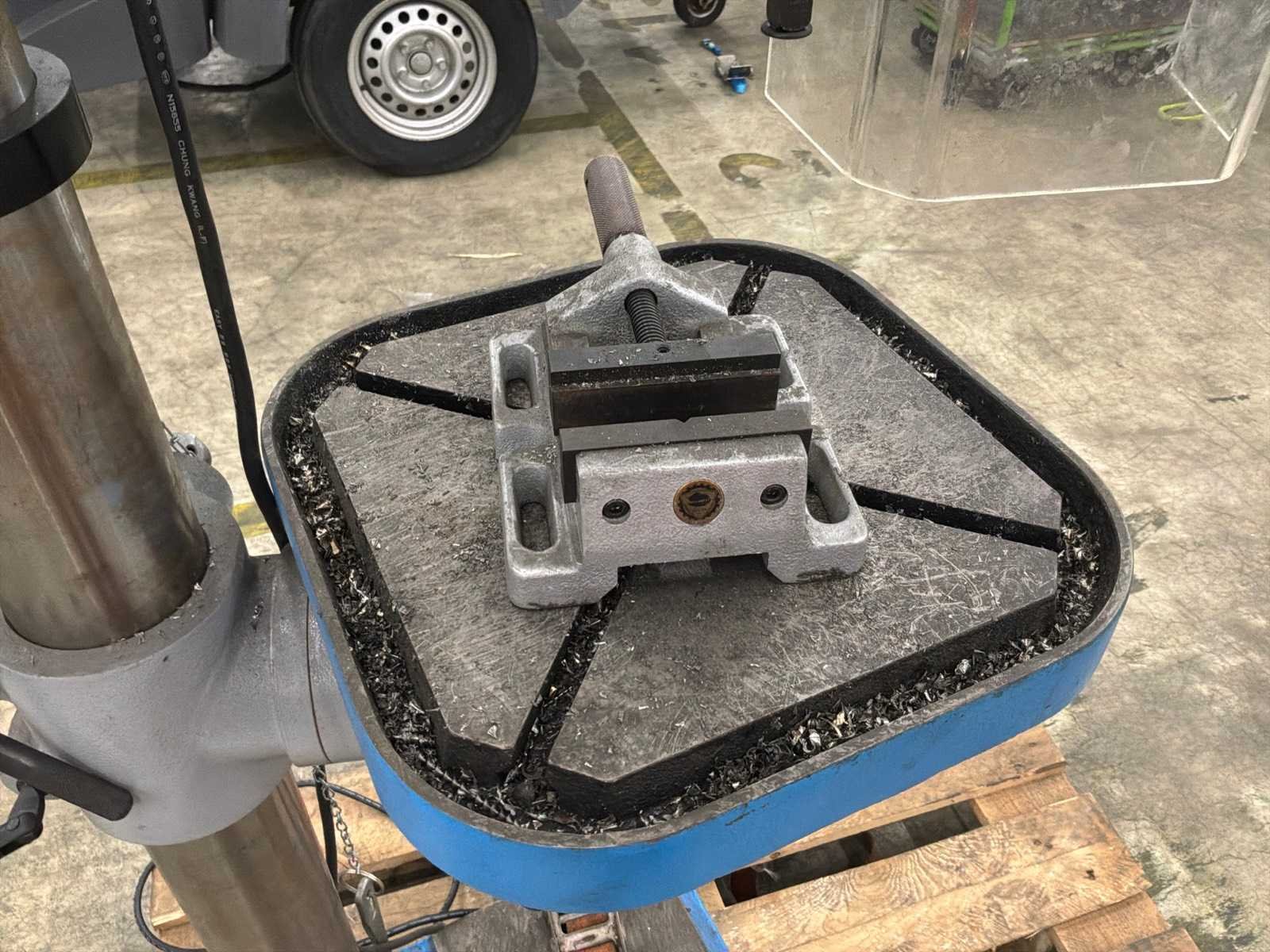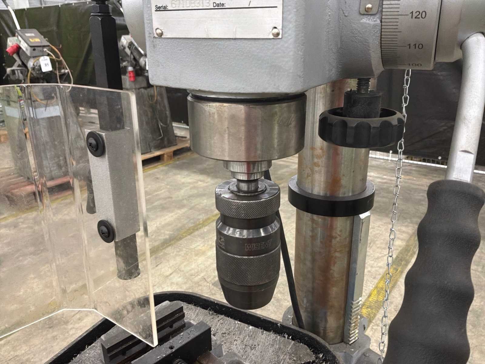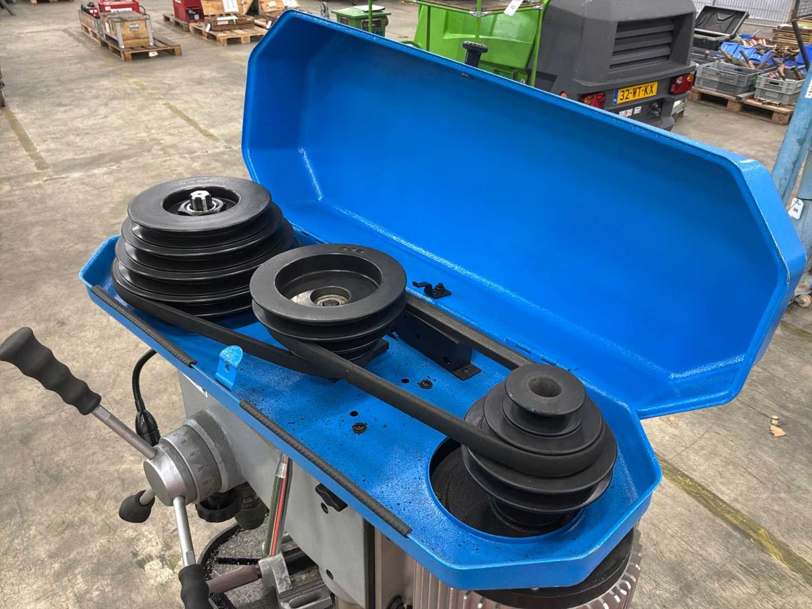 V- snaar aangedreven, Boorspil MT5, Verstelbaar 45-0-45°kantelbaar; 360° draaibaar, Pallet inbegrepen. Merk: WISENT Type: DC2509 Bouwjaar: 2023 Serienummer: 67108313 Boorcapaciteit: 25mm Aantal snelheden: 9 Uitlading: 225mm Tafel afmeting l: 350mm Tafel afmeting b: 350mm Motorvermogen (kW): 0.75kW Aansluiting: 380V Machinegewicht: 142kg Afmeting b: 350mm Afmeting h: 1680mm