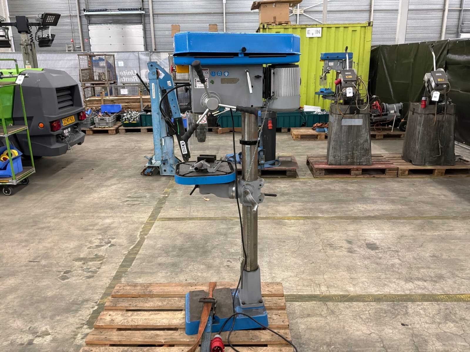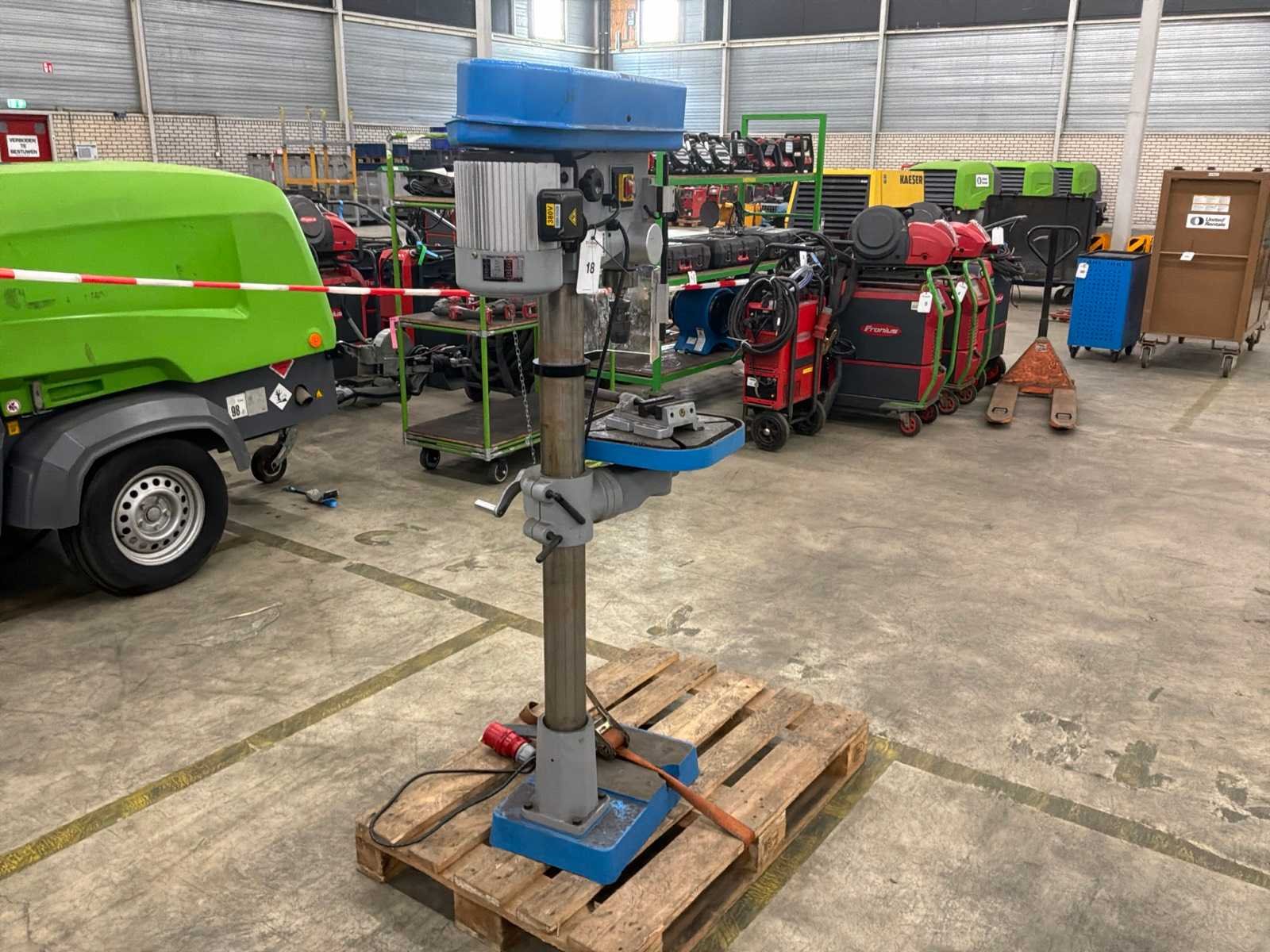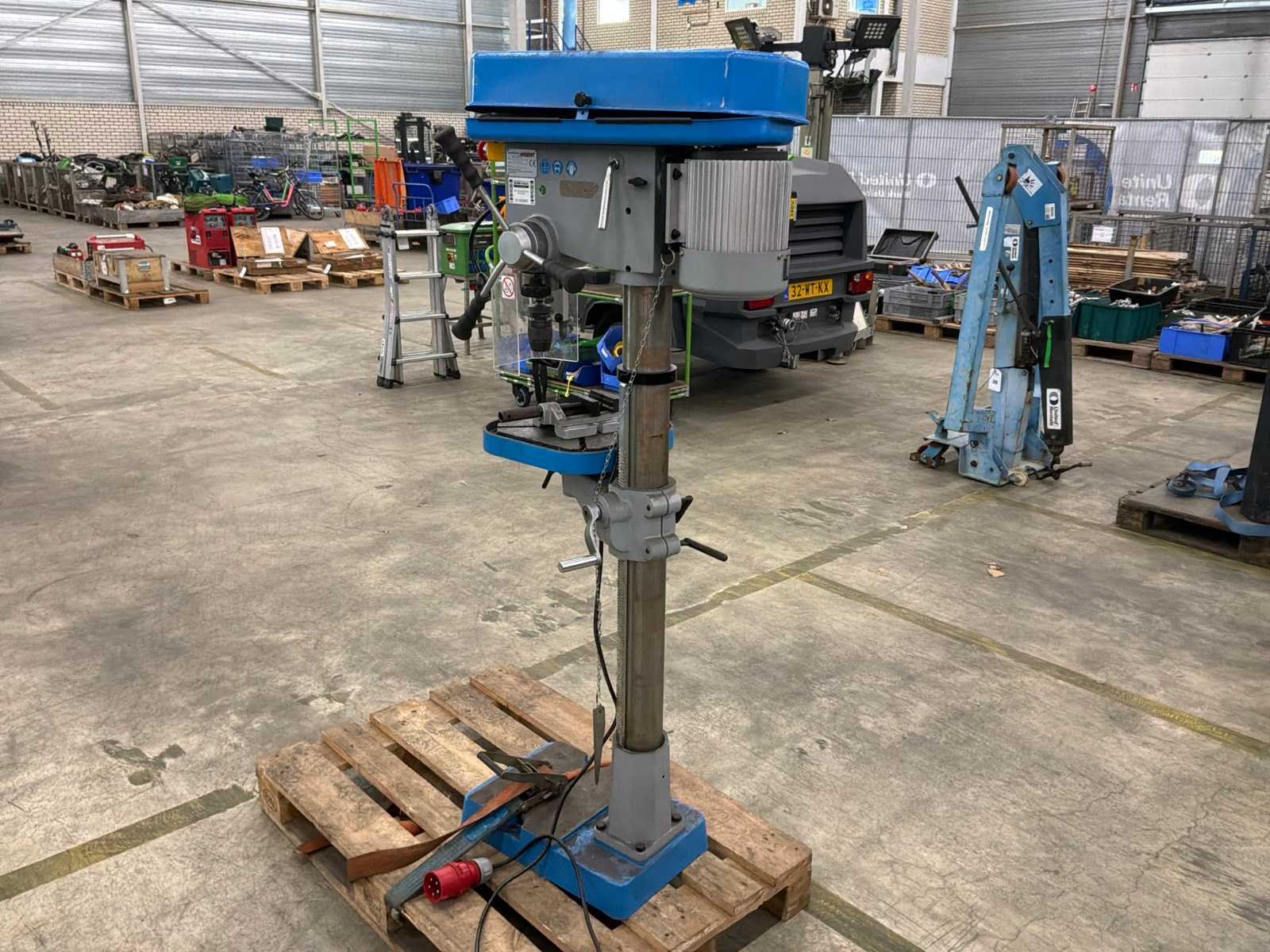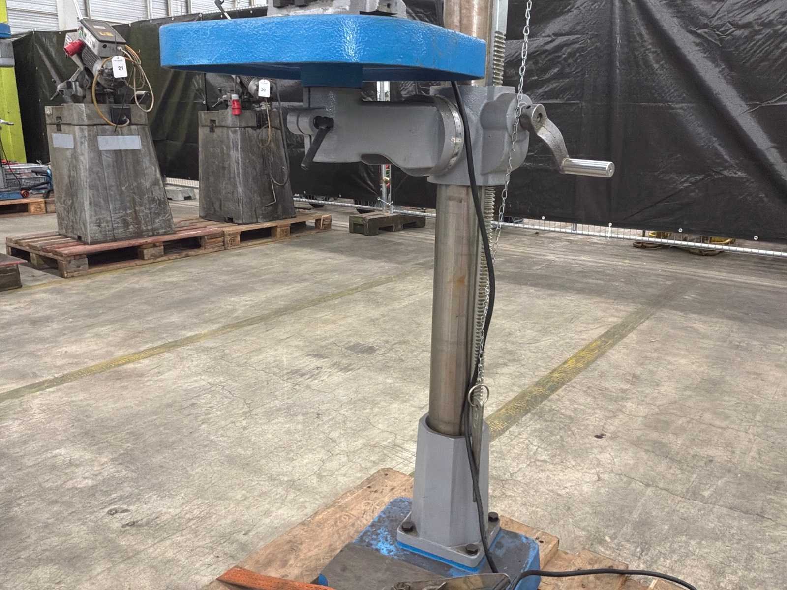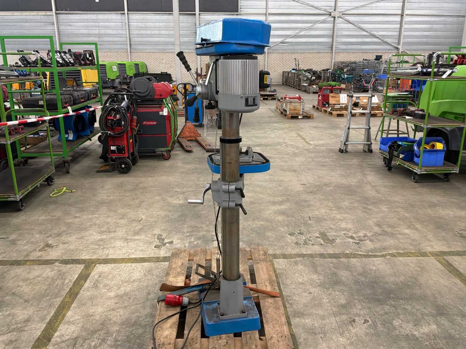 V- snaar aangedreven, Boorspil MT5, Verstelbaar 45-0-45°kantelbaar; 360° draaibaar, Pallet inbegrepen. Merk: WISENT Type: DC2509 Bouwjaar: 2023 Serienummer: 67108313 Boorcapaciteit: 25mm Aantal snelheden: 9 Uitlading: 225mm Tafel afmeting l: 350mm Tafel afmeting b: 350mm Motorvermogen (kW): 0.75kW Aansluiting: 380V Machinegewicht: 142kg Afmeting b: 350mm Afmeting h: 1680mm