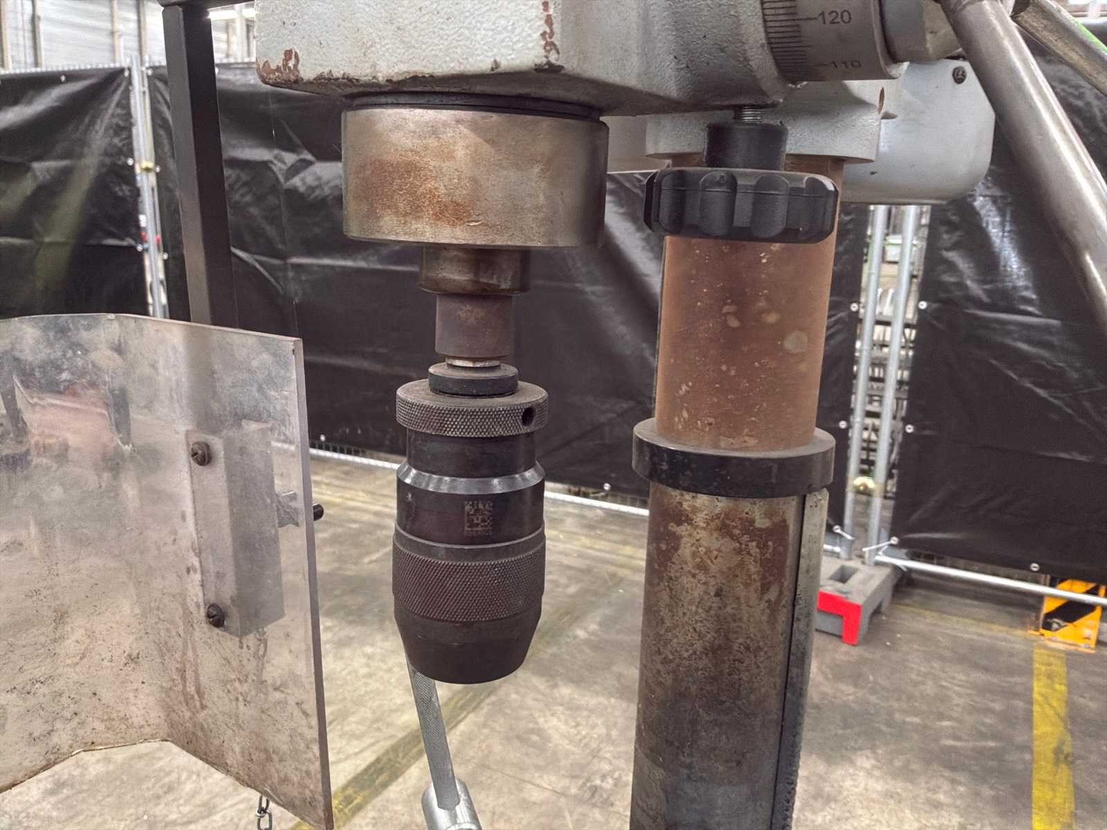 V- snaar aangedreven, Boorspil MT5, Verstelbaar 45-0-45°kantelbaar; 360° draaibaar, Pallet inbegrepen. Merk: WISENT Type: DC2509 Bouwjaar: 2014 Serienummer: 67407135 Boorcapaciteit: 30mm Uitlading: 225mm Tafel afmeting l: 350mm Tafel afmeting b: 350mm Motorvermogen (kW): 0.75kW Aansluiting: 380V Machinegewicht: 142kg Afmeting b: 350mm Afmeting h: 1680mm