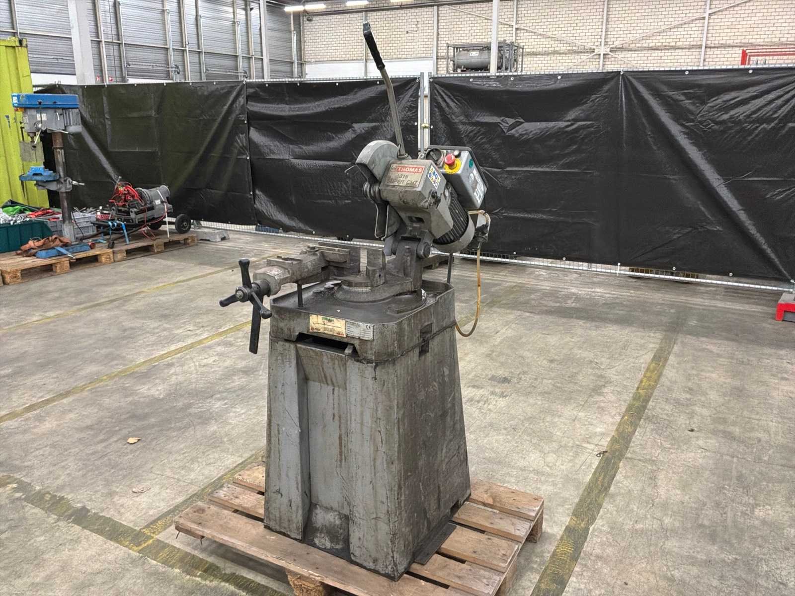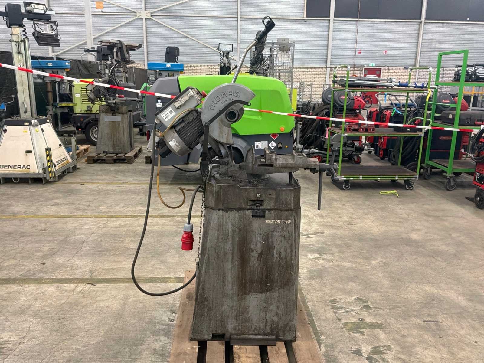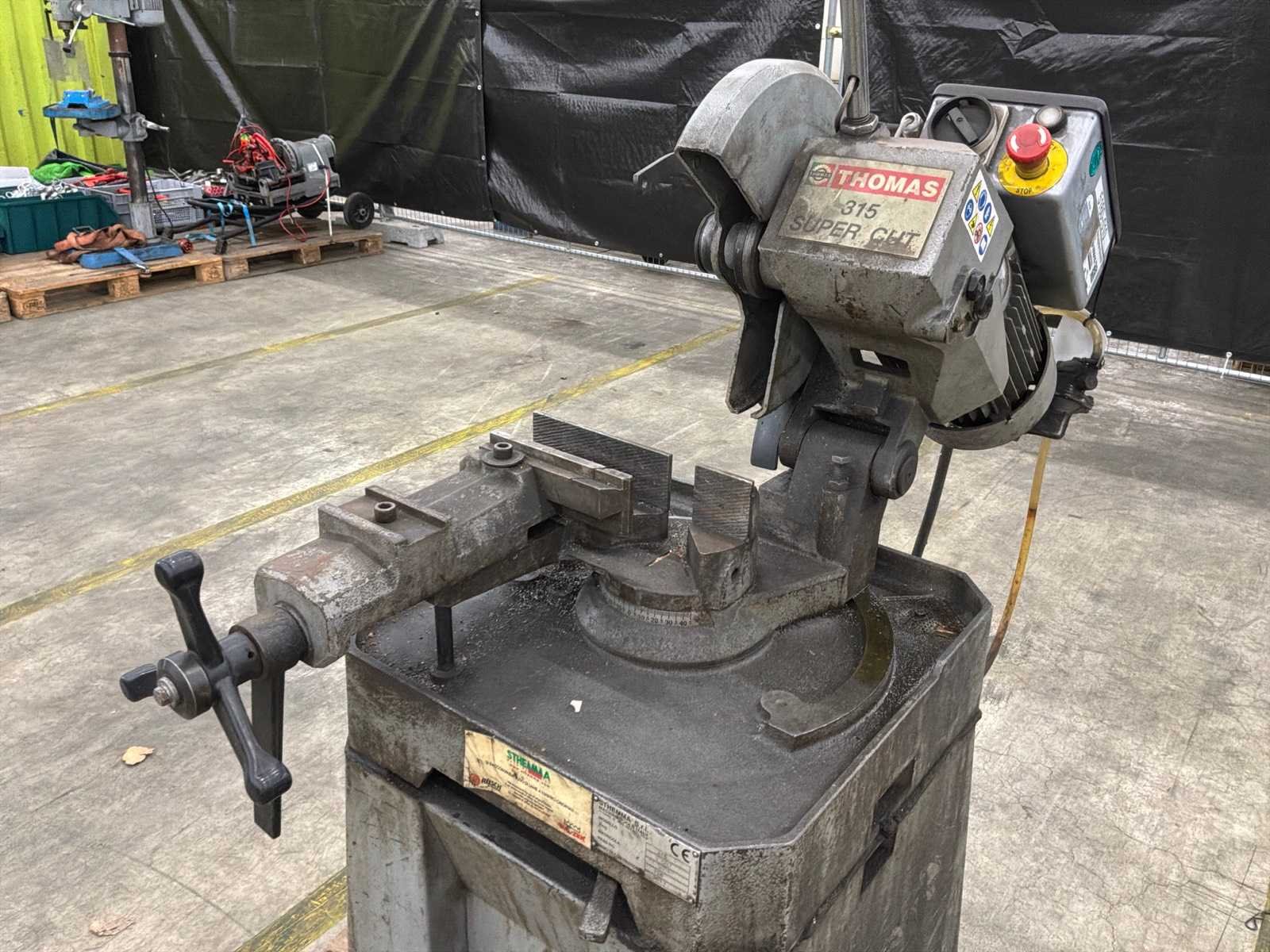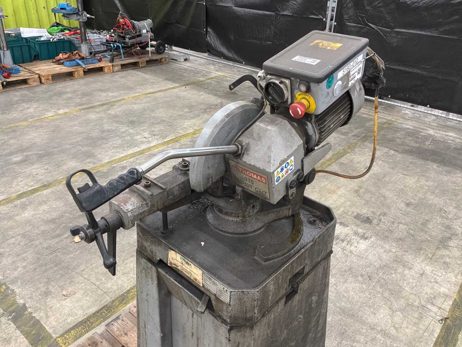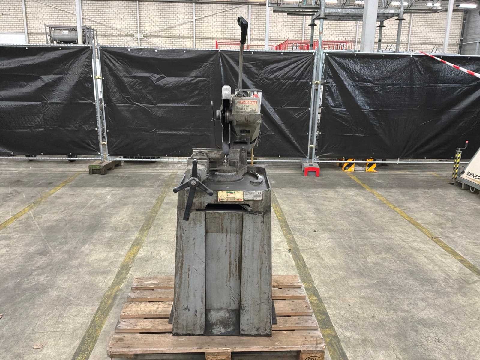 Voorzien van koelmiddel pomp, Op en inclusief pallet Merk: STHEMMA Type: THOMAS 315 SUPER CUT Bouwjaar: 2013 Serienummer: 13 00287 Zaagblad Ø: 100 Aantal snelheden: 2 Snelheid van n =: 22rpm Snelheid tot n =: 44rpm Koelmiddelpomp: true Motorvermogen (kW): 1.3kW Aansluiting: 400V Machinegewicht: 128kg Afmeting l: 1000mm Afmeting b: 750mm Afmeting h: 1450mm