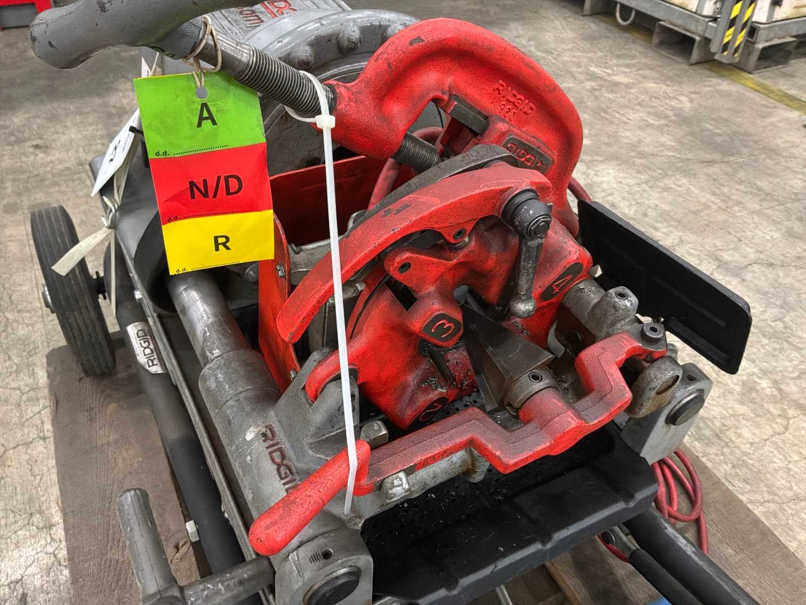 Op en inclusief pallet Merk: Ridgid Type: 300 Compact Snijcapaciteit max.: 50/60 Hz'' Aansluiting: 220V Serienummer: EAF 265321117 Elektrisch: true Vermogen: 1700W Totale afmeting Breedte: 570mm Totale afmeting L: 1300mm
