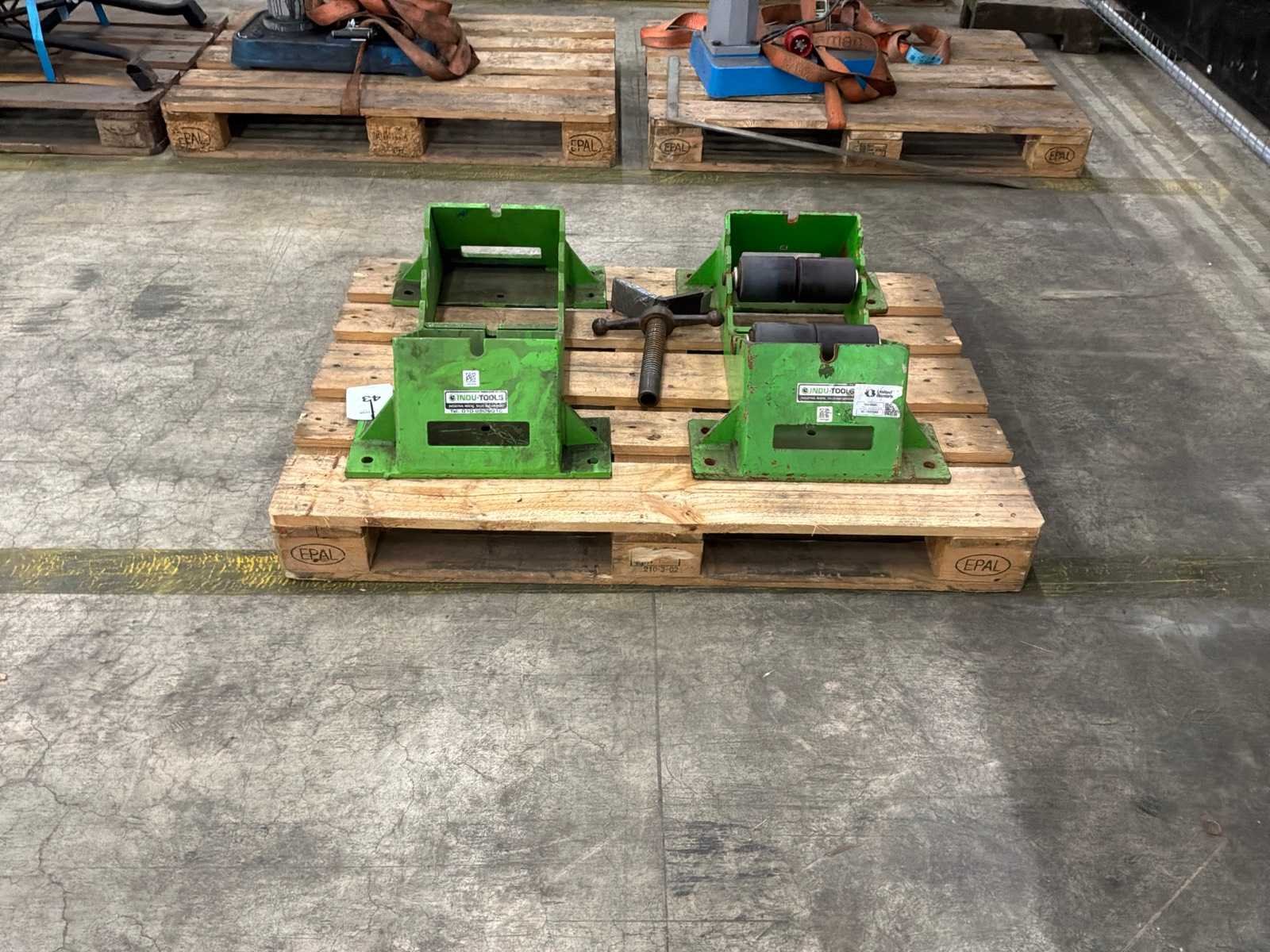 2x pijprollenbokken op en inclusief pallet, 1X incompleet Merk: INDU-TOOLS Totale afmeting L: 420mm Totale afmeting Breedte: 670mm Totale afmeting Hoogte: 20mm