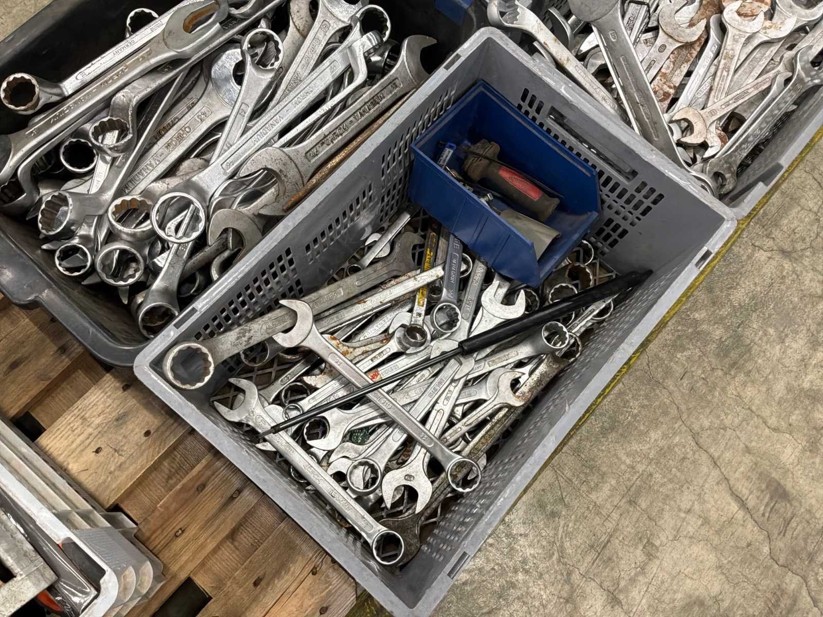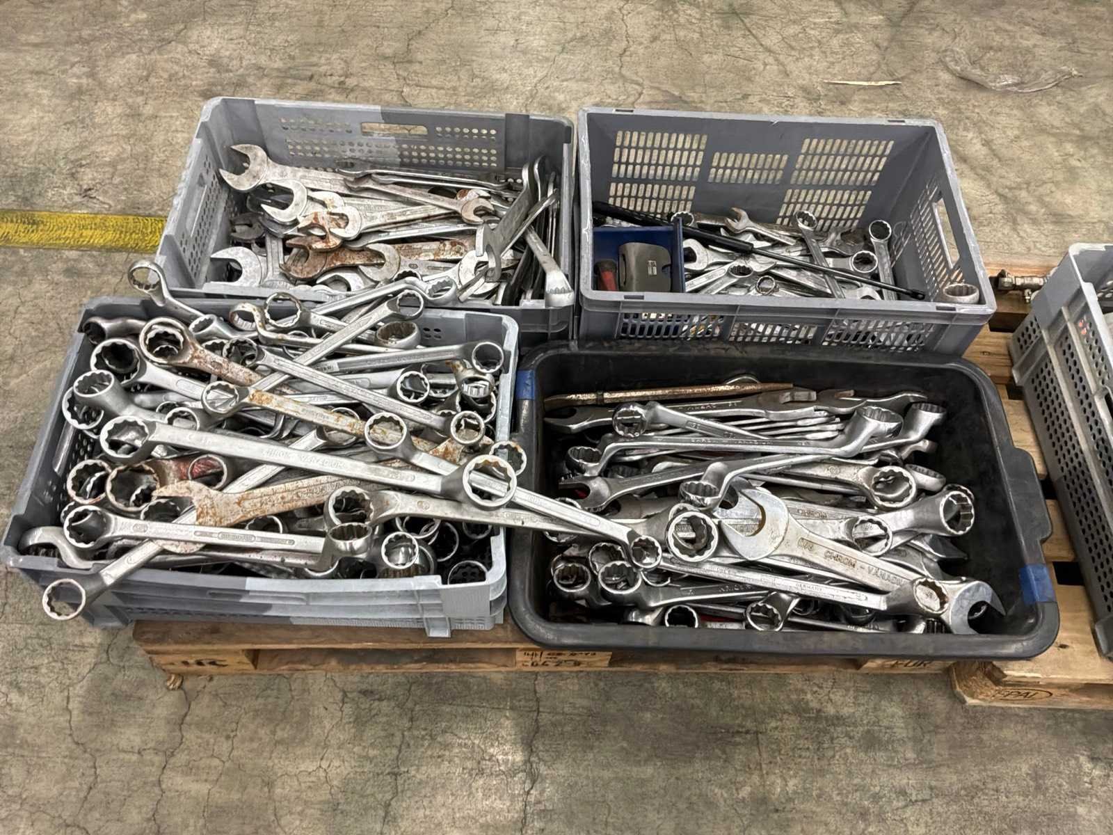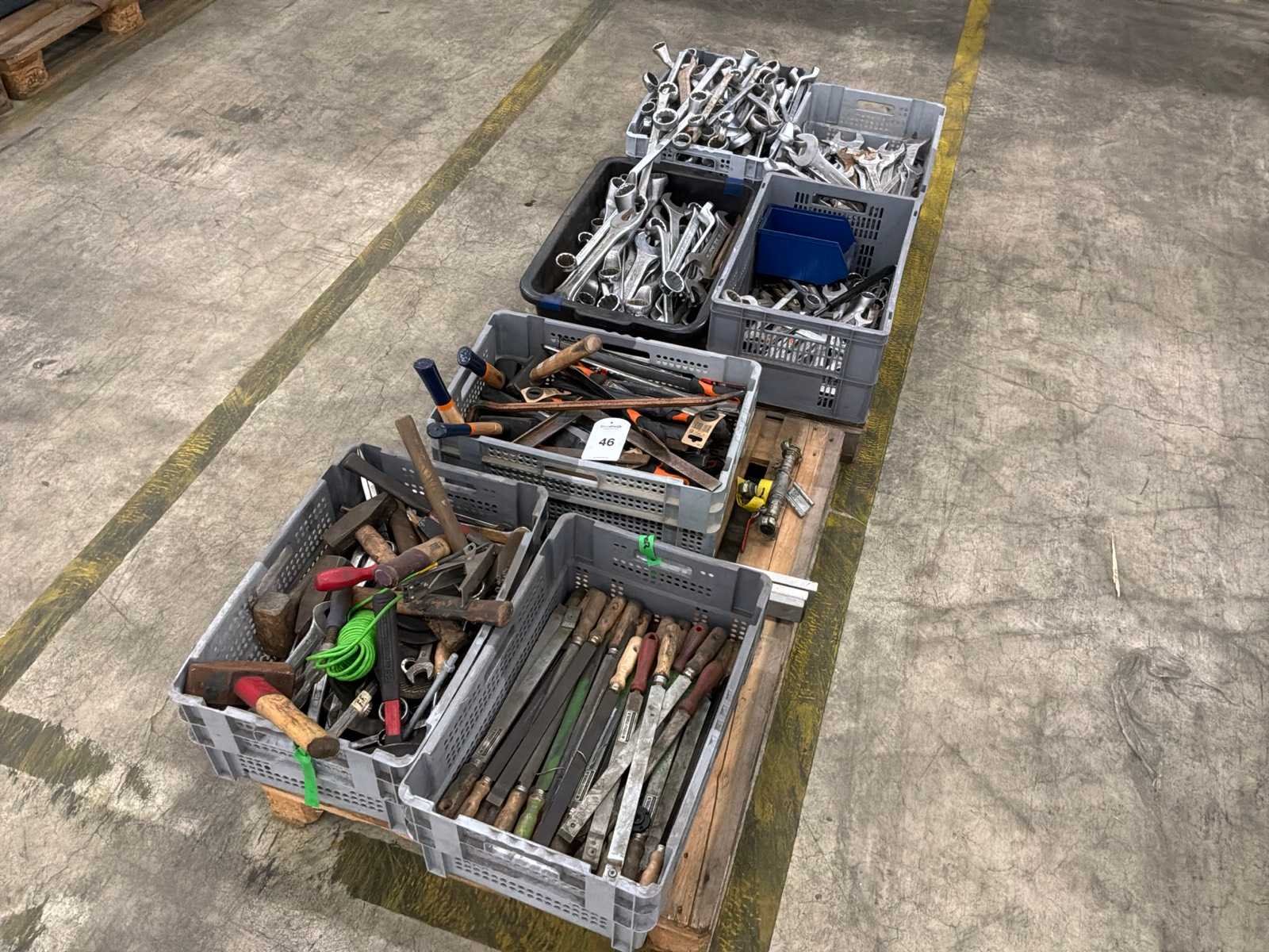 Diverse handgereedschappen waaronder: vijlen,hamers, verschillende maten steeksleutels (“46,”41,”36,”32,”30). Pallet inbegrepen.