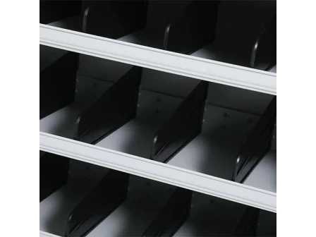 Ongebruikt; kleur blauw/grijs; 58 zwarte schotten; de geïllustreerde blauwe schotten horen niet bij het kavel 7023 Merk: Povag Lengte: 100cm Breedte: 45cm Hoogte: 198cm