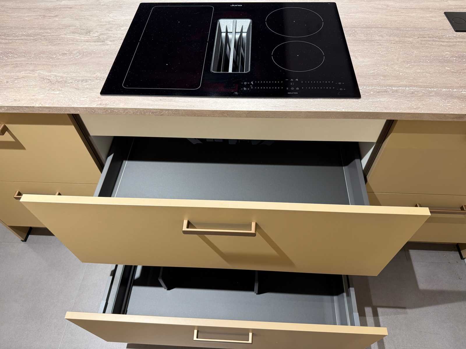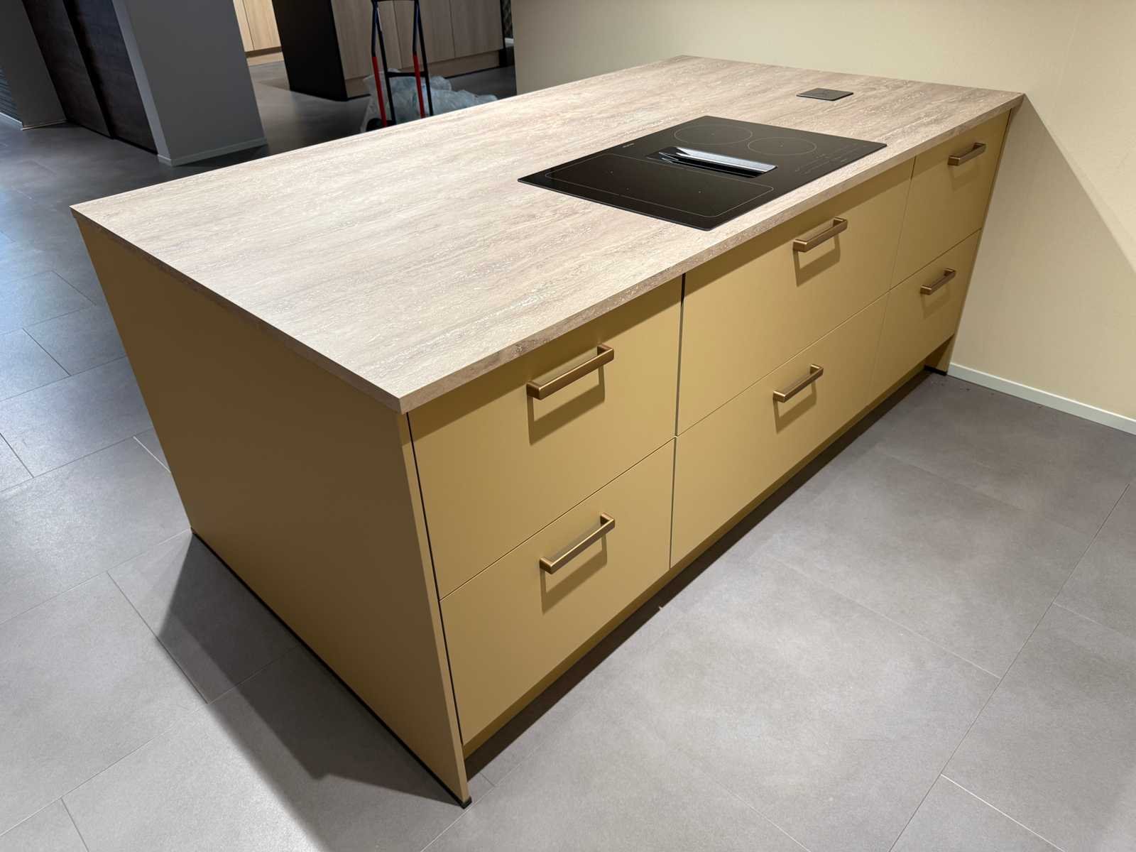 Met warmhoudlade Juno; afmetingen kastenwand circa 246,6x65x236,3; reeds gedemonteerd en ingepakt op pallets. (afstapelen, omruilen of statiegeld per pallet); pallets zijn niet inbegrepen; statiegeld betalen bij afhalen, of pallets afstapelen; werkblad niet ingepakt op pallets (26-IMP-04235) Merk: Impuls Type keukenopstelling: Eiland Lengte: 360cm Breedte: 60cm Hoogte: 90,3cm Kraan: Ja Gootsteen: Ja Aanrechtblad: Travertijn Fornuis: Juno Koelkast: Juno JCU178E8S1 Softclose: true Oven: Juno JB126S2 & Juno JBKM131S2 Vaatwasser: Juno JGVX608E2 Lengte kookeiland: 213,4cm Breedte kookeiland: 118,7cm Hoogte kookeiland: 90,3cm Kleur: Caramel