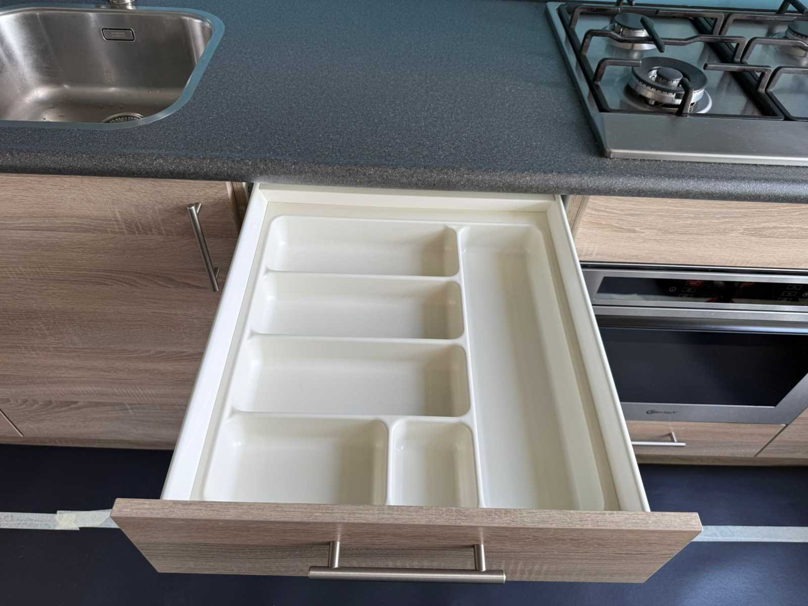 Conditie: gebruikt; afmetingen hoge kast circa 60x60x226 cm; reeds gedemonteerd en ingepakt op pallets. (afstapelen, omruilen of statiegeld per pallet); pallets zijn niet inbegrepen; statiegeld betalen bij afhalen, of pallets afstapelen; werkblad niet ingepakt op pallets (26-2DE-03907) Lengte: 346cm Breedte: 60cm Hoogte: 95cm Gootsteen: Franke Koelkast: Whirlpool Oven: Bauknecht Afzuigkap: Whirlpool
