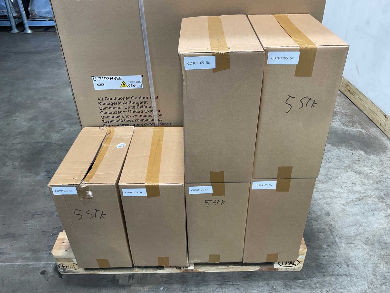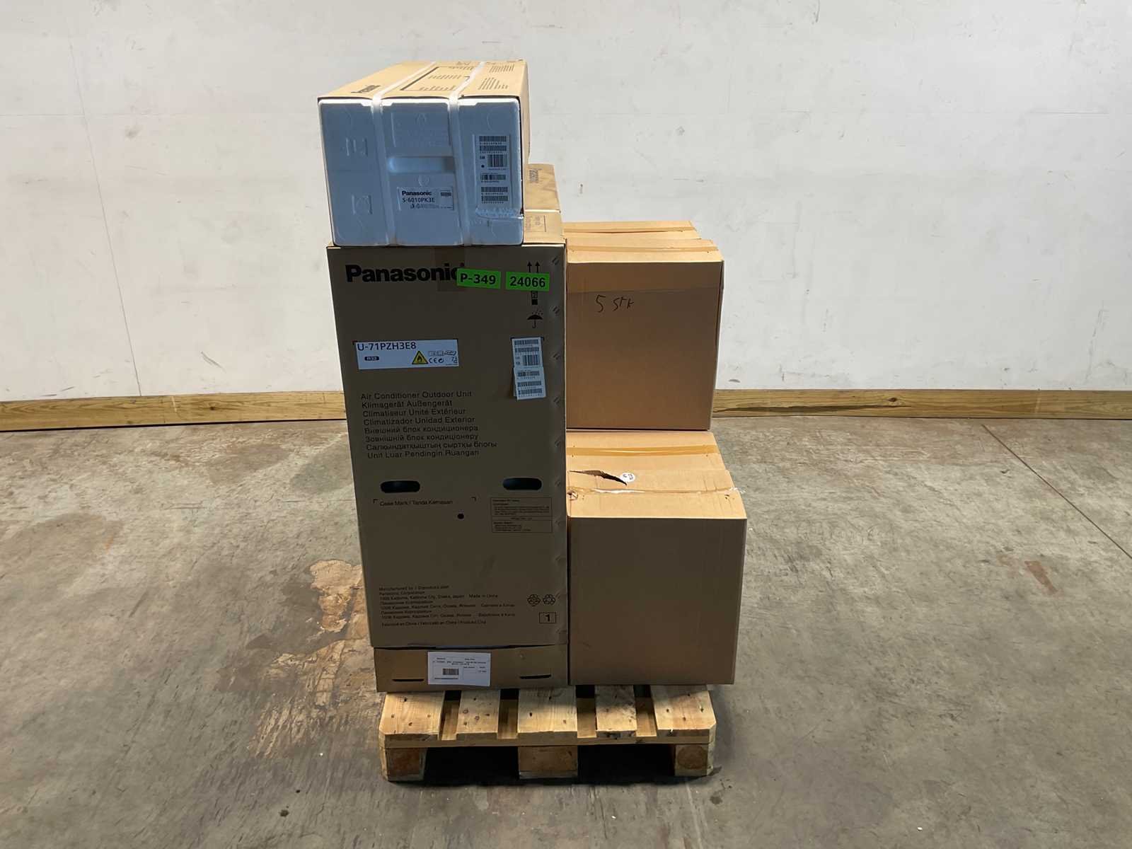 Pallet met 32 stuks Panasonic airco-units en accessoires, bestaande uit 1 stuk wandunit, 1 stuk buitenunit en 30 stuks verwarmingselementen. Model S-6010PK3E – 1 stuk: Deze wandunit behoort tot de PACi-serie en is geschikt voor commerciële toepassingen. De unit is ontworpen voor wandmontage en toepassing binnen single- en multi-split systemen en beschikt over nanoe™ X technologie. Het koelvermogen ligt in de klasse van 6,0 kW tot 10,0 kW (± 20.000 – 34.000 BTU/h), afhankelijk van de configuratie binnen het systeem. De wandunit is uitgevoerd als binnenunit voor directe luchtverdeling in de ruimte en geschikt voor toepassing in middelgrote tot grotere ruimtes. Model U-71PZH3E8 – 1 stuk: Deze buitenunit behoort tot de PACi NX-serie en is geschikt voor commerciële toepassingen binnen split-systemen. De unit werkt met R32 koudemiddel en is ontworpen voor combinatie met één binnenunit. Het nominale koelvermogen bedraagt 7,1 kW (± 24.000 BTU/h) en het verwarmingsvermogen circa 8,0 kW. De unit werkt op 380–400–415 V (3-fase) en is geschikt voor toepassing in middelgrote installaties. Model CD101105 – 30 stuks: Deze verwarmingselementen zijn bedoeld voor toepassing binnen verwarmings- of boilerinstallaties. De elementen hebben een vermogen van 3,0 kW en werken op 230 V. Uitgevoerd met 16" lengte en 1-1/2" aansluiting en geschikt voor diverse verwarmingssystemen. Merk: Panasonic Type: diverse