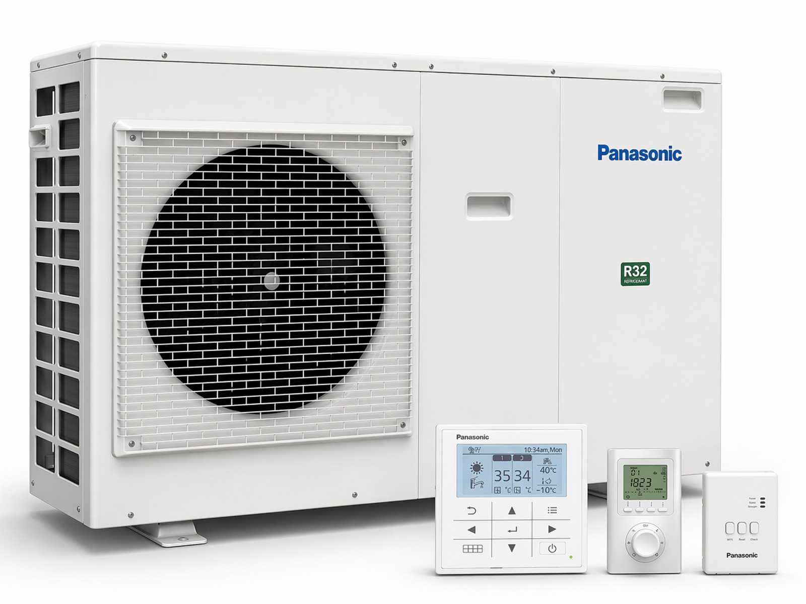 Panasonic WH-MDC05J3E5 warmtepomp set zonder installatie. De Panasonic WH-MDC05J3E5 is een Aquarea High Performance warmtepomp uit de J-generatie met mono-bloc configuratie, geschikt voor het leveren van verwarming, koeling en warm tapwater binnen één systeem. De unit werkt met het koudemiddel R32 en onttrekt warmte uit de buitenlucht voor afgifte aan het verwarmingssysteem. De warmtepomp heeft een verwarmingscapaciteit van 5,00 kW (A+7°C, W35°C) met een COP van 5,08. Bij hogere watertemperaturen (W55°C) bedraagt de capaciteit 5,00 kW met een COP van 3,01. De seizoensgebonden efficiëntie bedraagt SCOP 5,12 (W35°C) en 3,63 (W55°C). Voor koeling levert de unit een capaciteit van 5,00 kW. De buitenunit heeft afmetingen van 1283 × 320 × 865 mm (B × D × H) en een nettogewicht van circa 99 kg. Het werkbereik voor verwarmen ligt tussen -20 °C en +35 °C buitentemperatuur en voor koelen tussen 10 °C en +43 °C. De maximale water-uitlaattemperatuur bedraagt 60 °C in verwarmingsmodus. De set is uitgebreid met een Panasonic CZ-TAW1B Aquarea Smart Cloud interface, waarmee het systeem via LAN of wifi op afstand bediend en gemonitord kan worden. Daarnaast is een Panasonic PAW-A2W-RTWIRELESS draadloze LCD kamerthermostaat inbegrepen voor lokale temperatuurregeling en bediening van het systeem. Merk: Panasonic Model: WH-MDC05J3E5 Product type: warmtepompset Kleur: wit Gewicht: 99kg Lengte: 1283cm Breedte: 320cm Hoogte: 865cm Materiaal: Metaal / kunststof