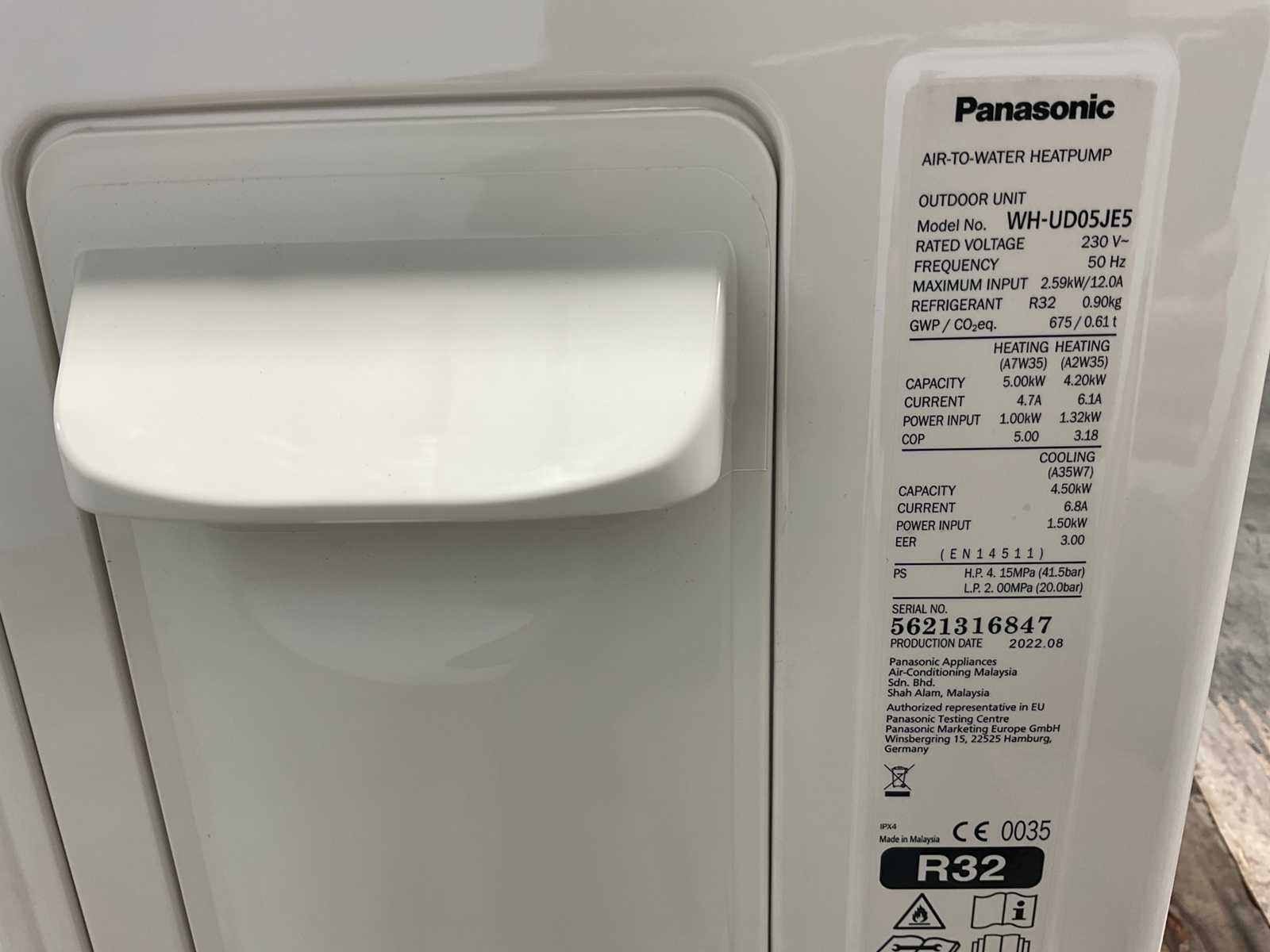 Panasonic Aquarea bi-bloc binnen- en buitenunit zonder installatie. De set bestaat uit de Panasonic WH-UD05JE5 buitenunit en de WH-SDC0305J3E5 binnenunit. Deze combinatie behoort tot de Aquarea J-generatie en betreft een lucht-water warmtepomp in bi-bloc uitvoering. De units werken met R32 koudemiddel en zijn ontworpen voor toepassing in residentiële verwarmings- en koelsystemen. Het verwarmingsvermogen bedraagt circa 5,00 kW bij A+7°C/W35°C met een COP tot circa 5,00. Bij lagere buitentemperaturen (A+2°C/W35°C) bedraagt het vermogen circa 4,20 kW met een COP van circa 3,18. Het systeem is geschikt voor zowel verwarmen als koelen en kan worden toegepast in lage temperatuur verwarmingssystemen. De set werkt op 230 V (1-fase) en is voorzien van geïntegreerde hydraulische aansluitingen in de binnenunit voor koppeling met het verwarmingssysteem. Binnenunit: afmetingen zijn 892 x 500 x 340 mm en deze weegt ca. 45 kilogram. Buitenunit: afmetingen zijn 622 x 824 x 299 mm en deze weegt ca. 40 kilogram. Merk: Panasonic Model: KIT-WC05J3E5 Product type: warmtepompset