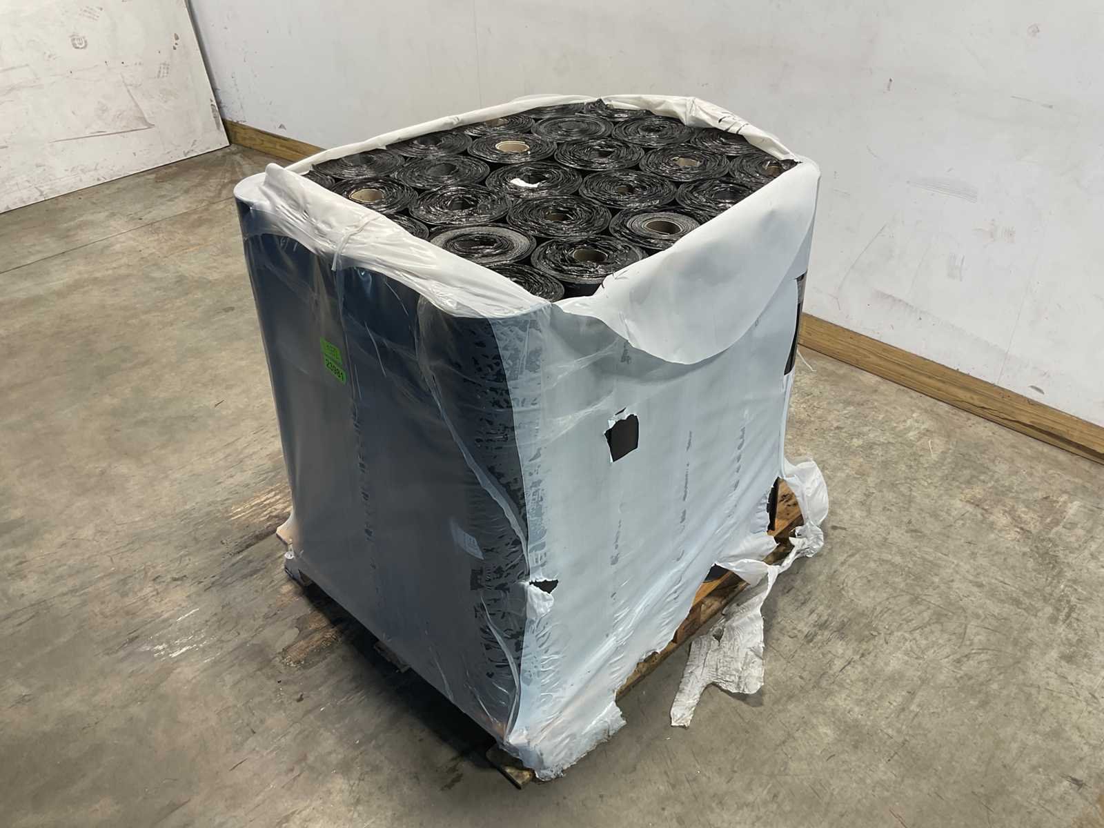 Pallet met 25 rollen bitumen dakleer.