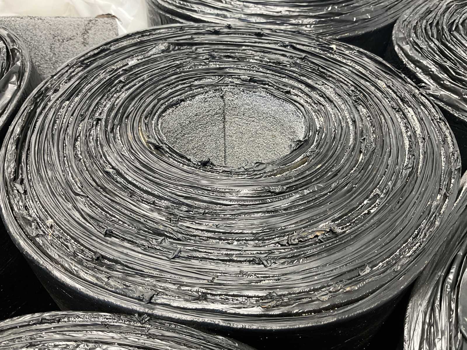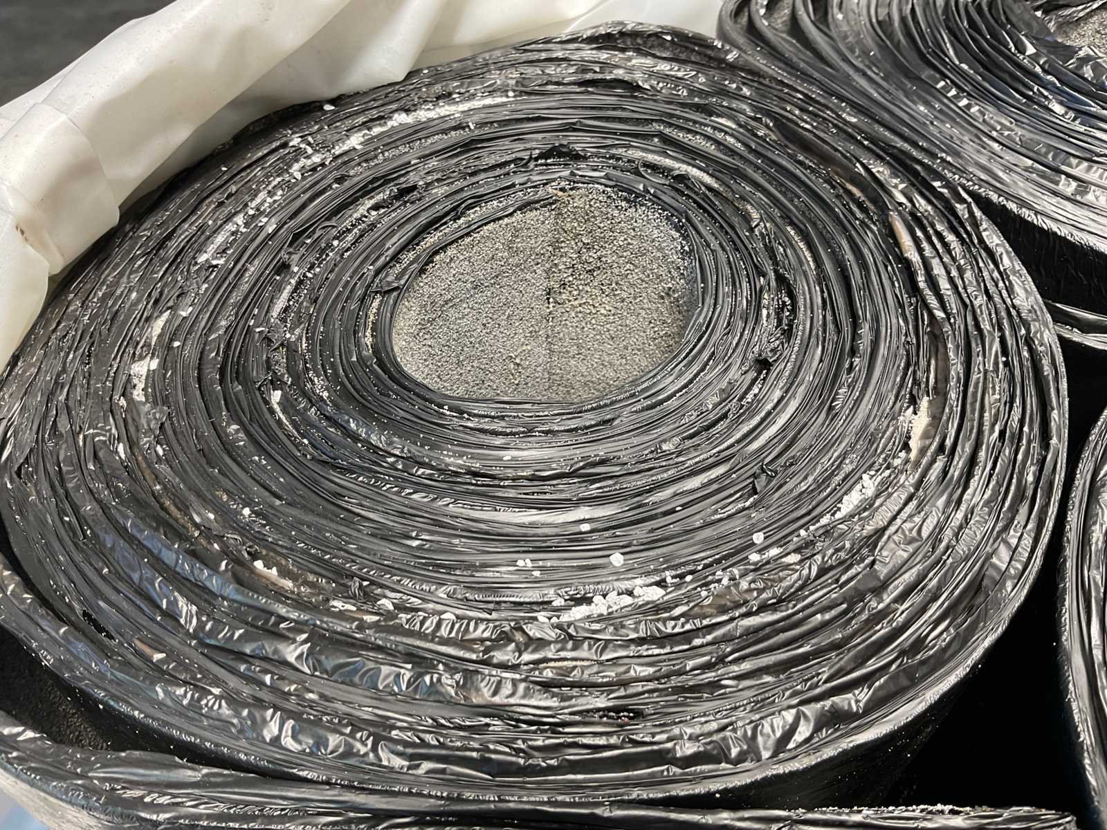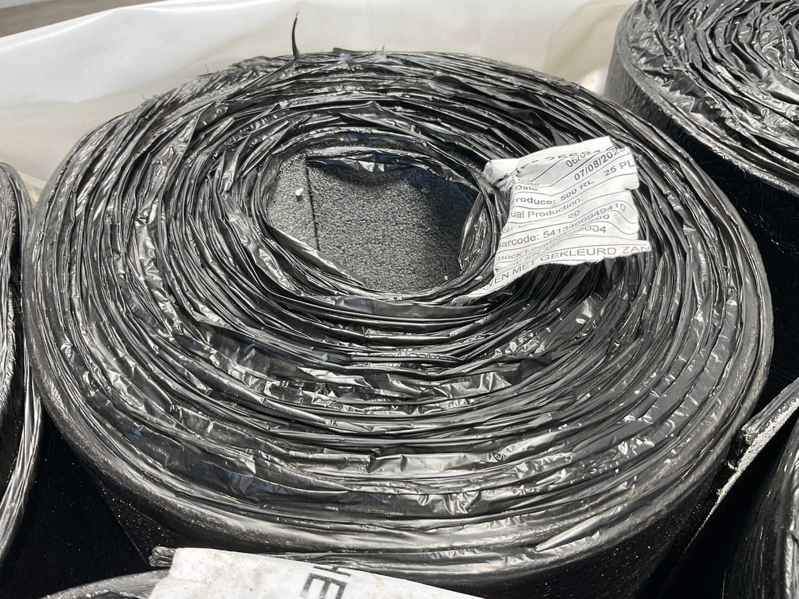 Pallet met 21 rollen bitumen dakleer.