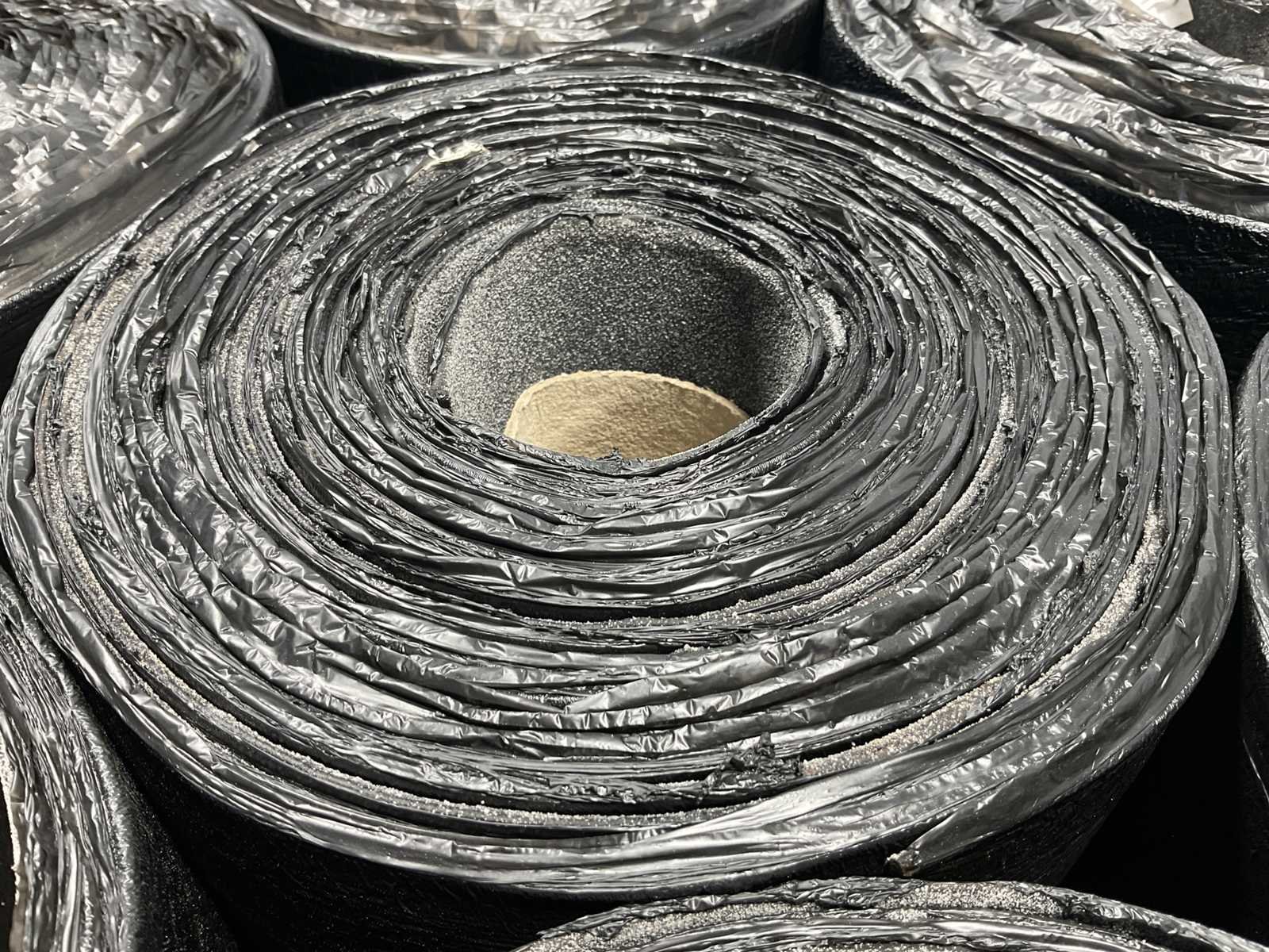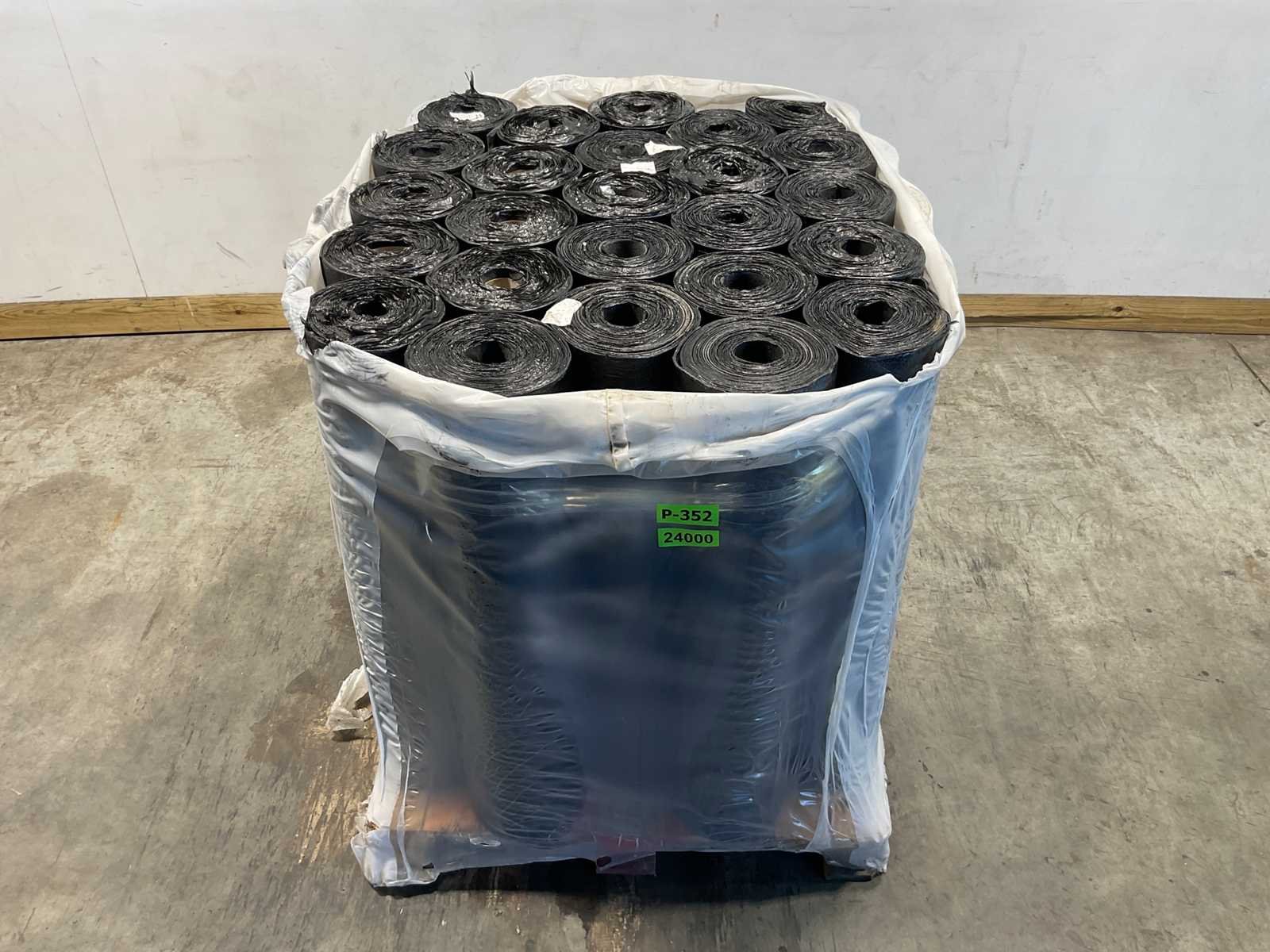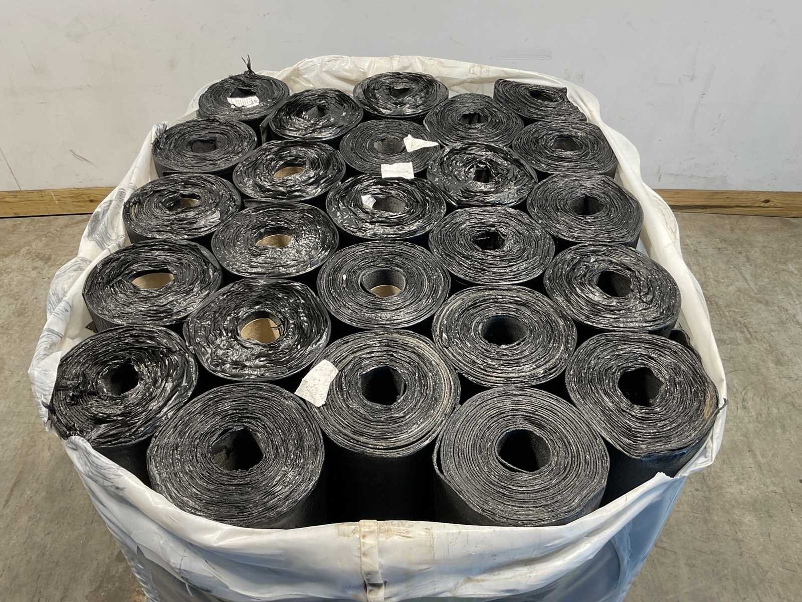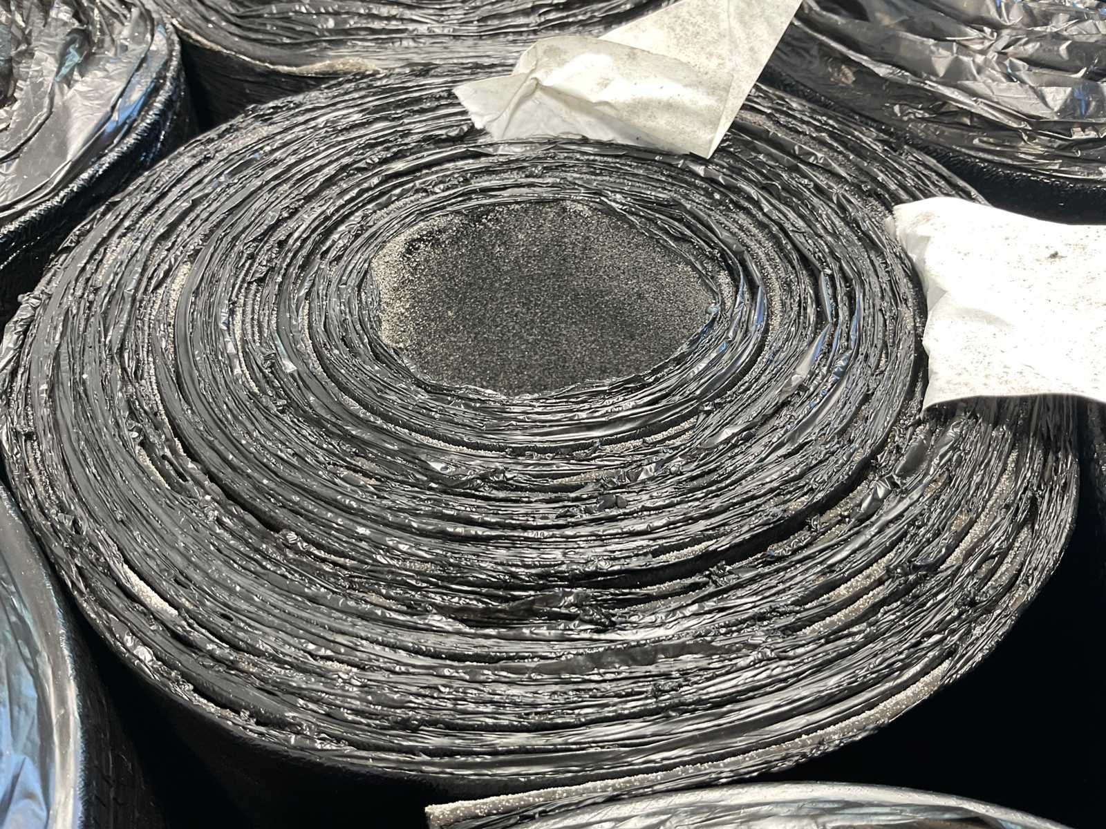 Pallet met 25 rollen bitumen dakleer.