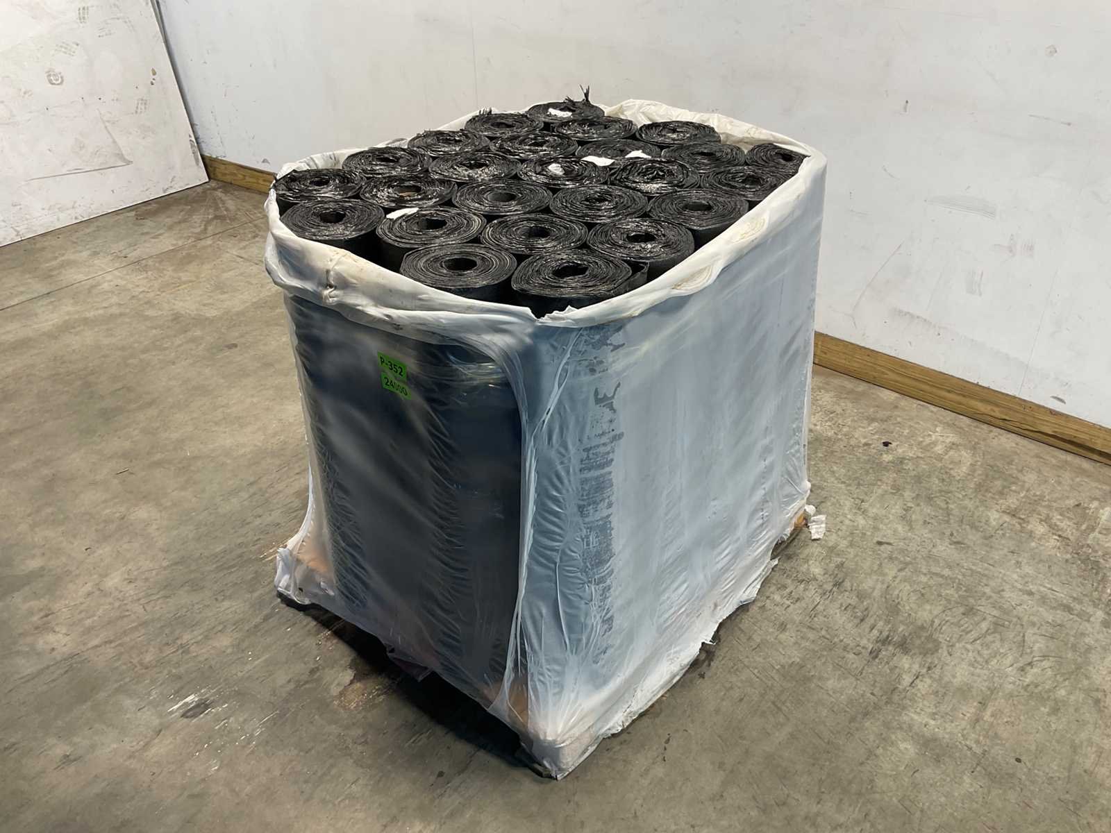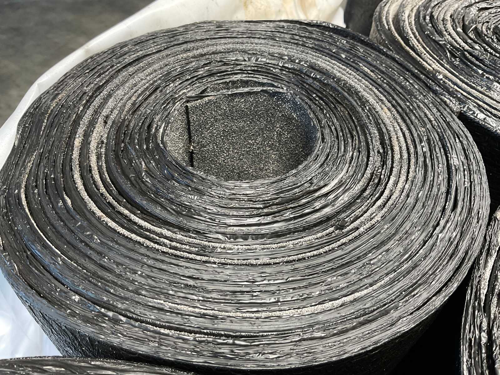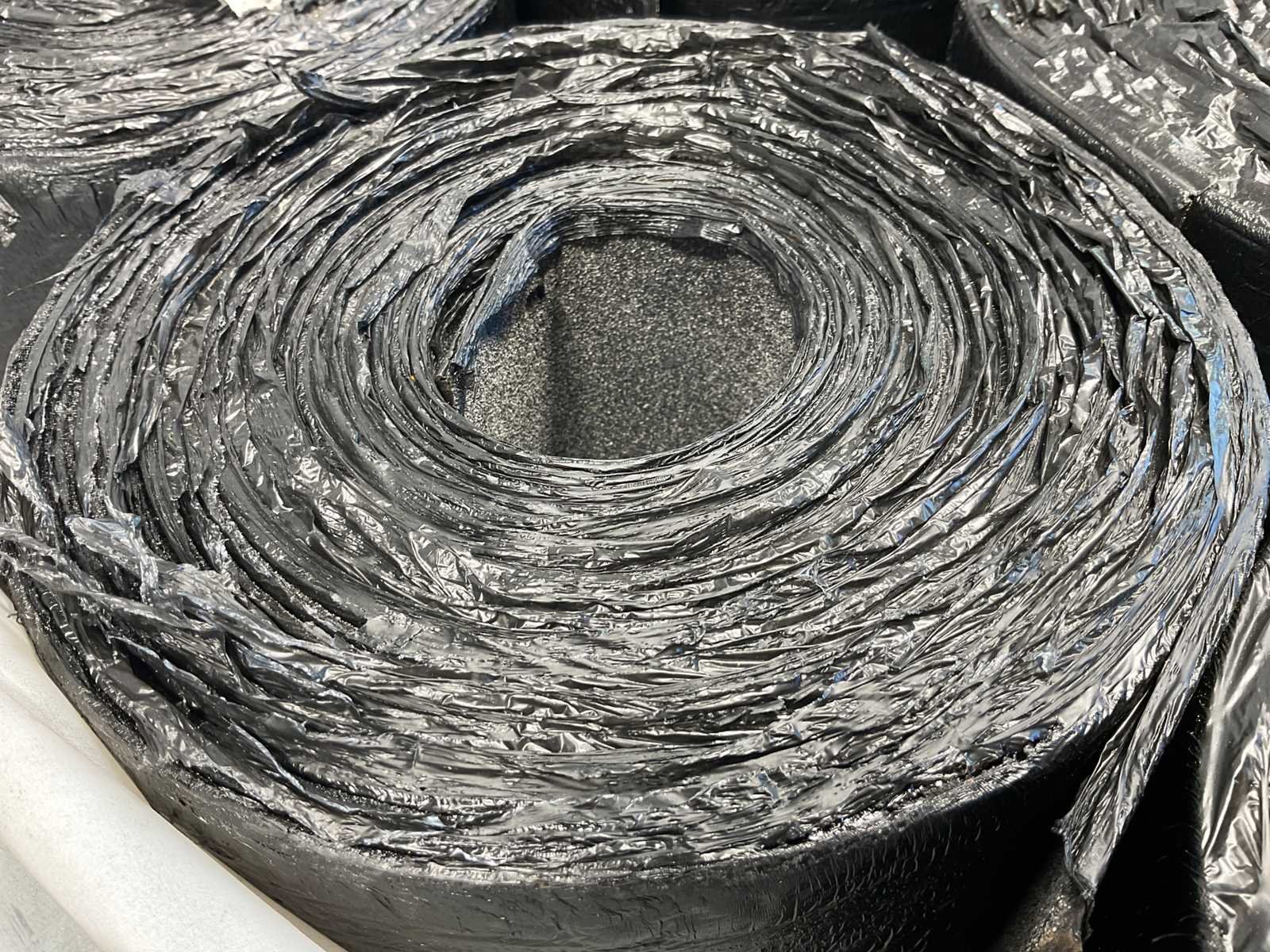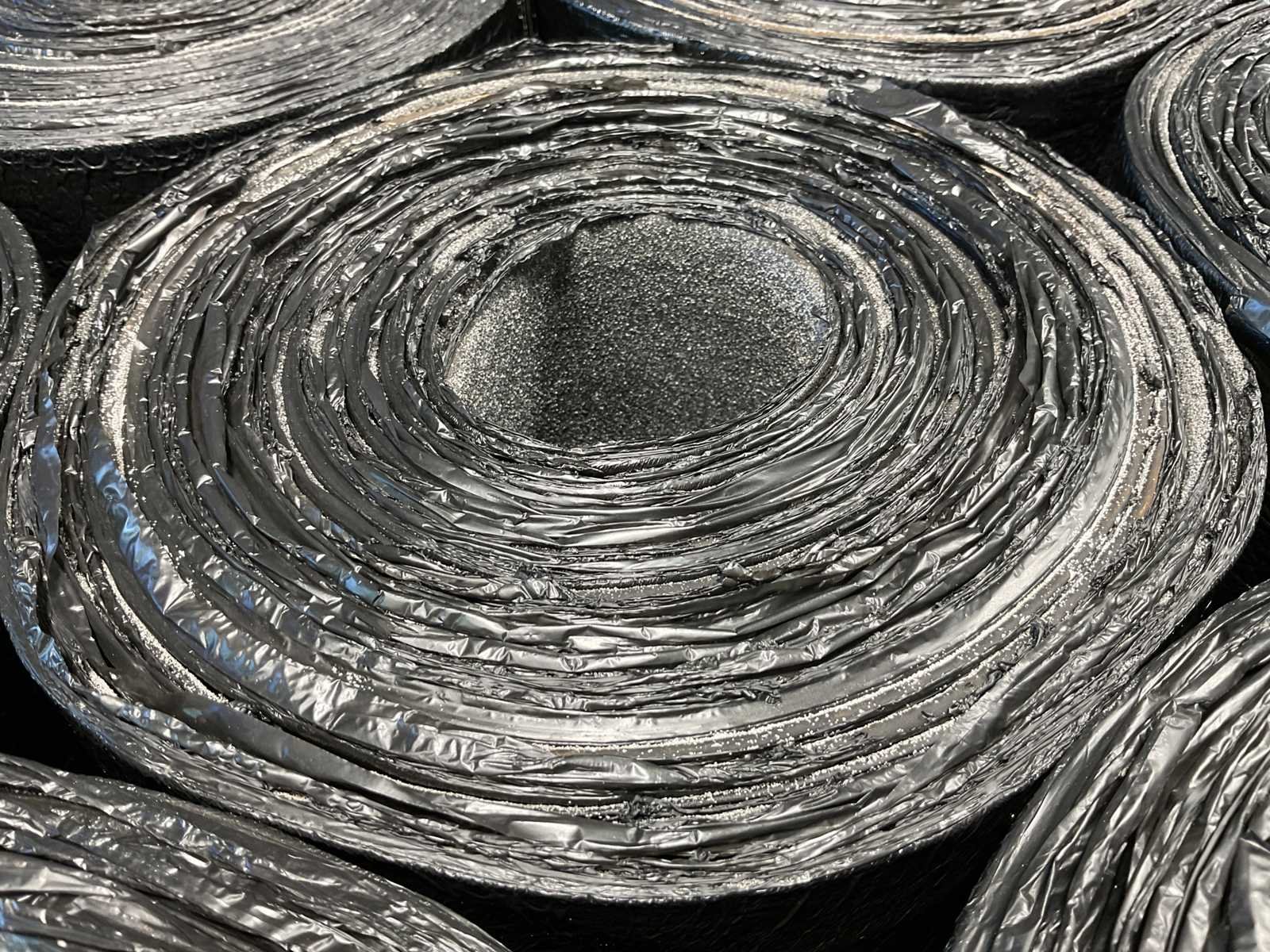 Pallet met 25 rollen bitumen dakleer.