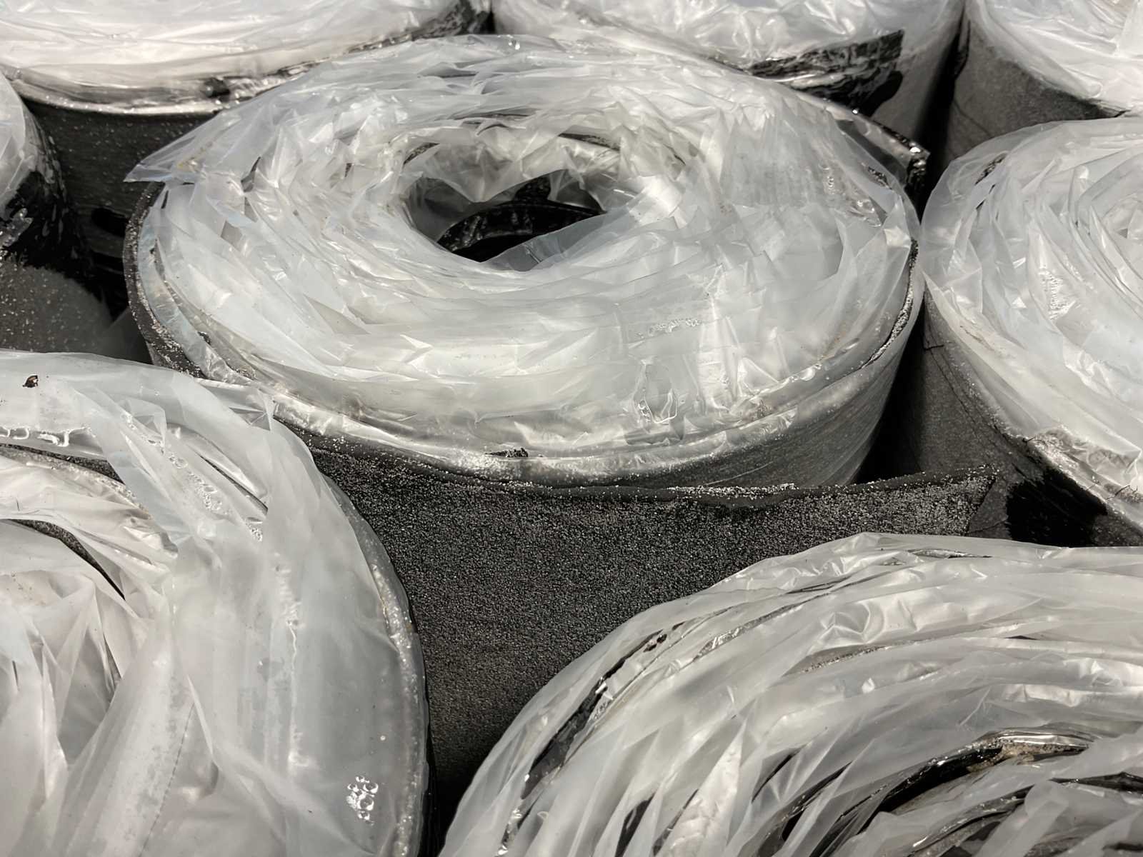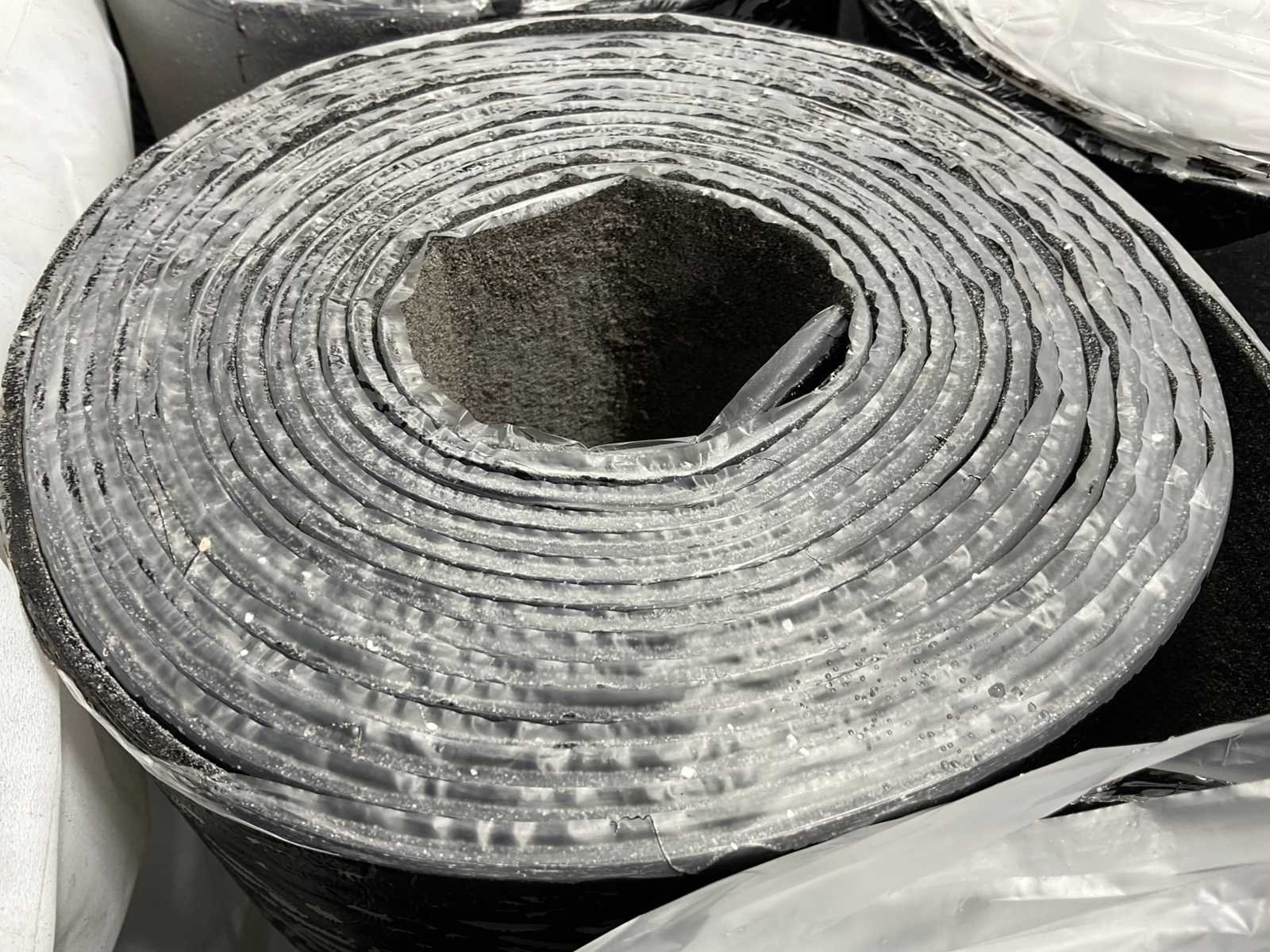 Pallet met 26 rollen bitumen dakleer.