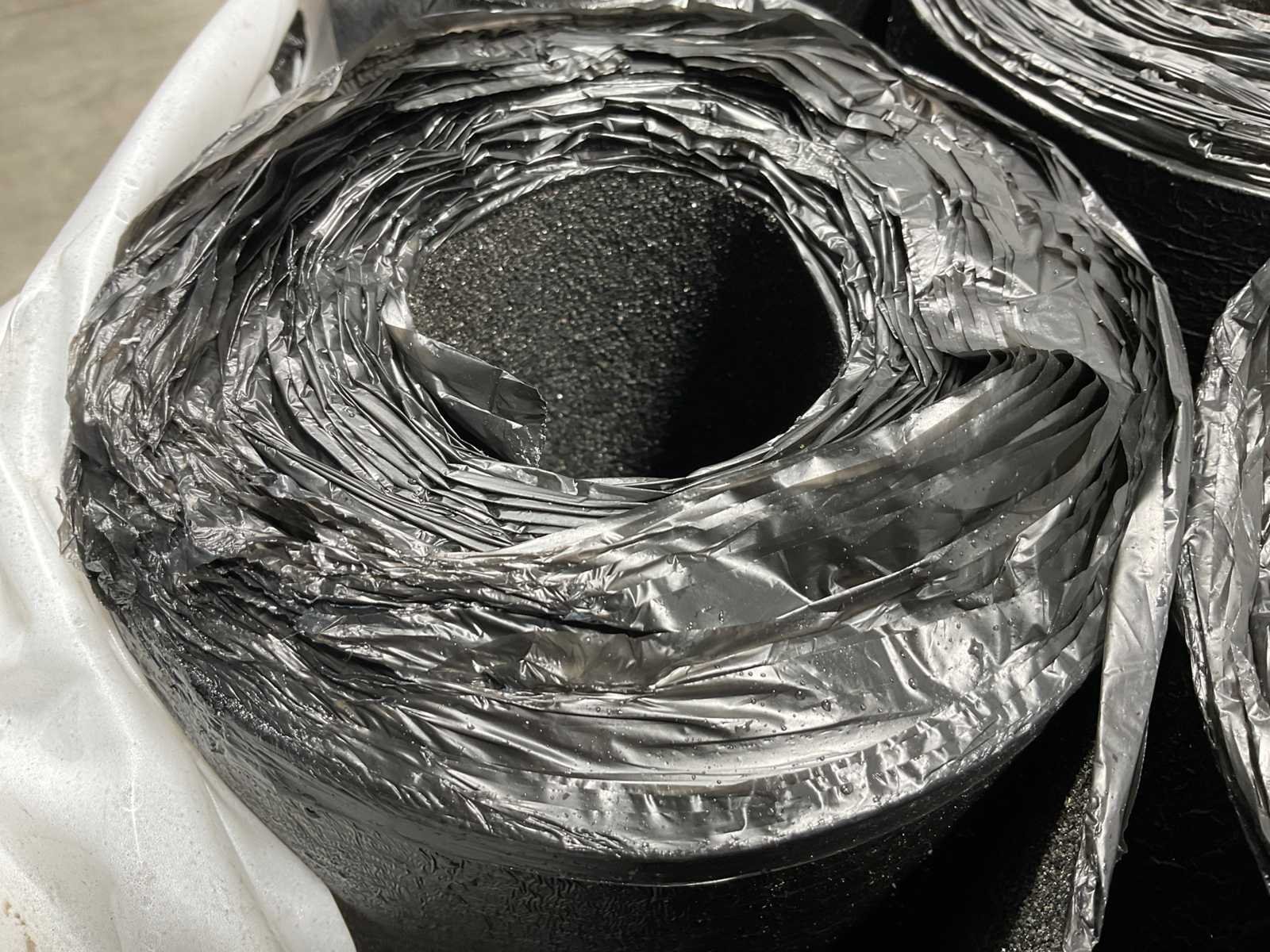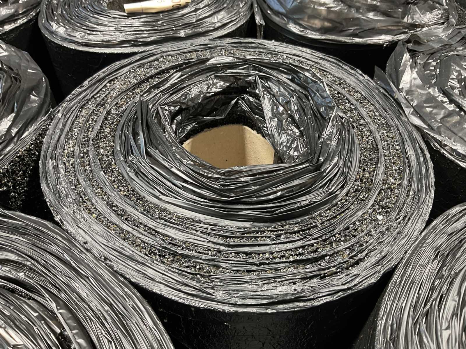 Pallet met 30 rollen bitumen dakleer.