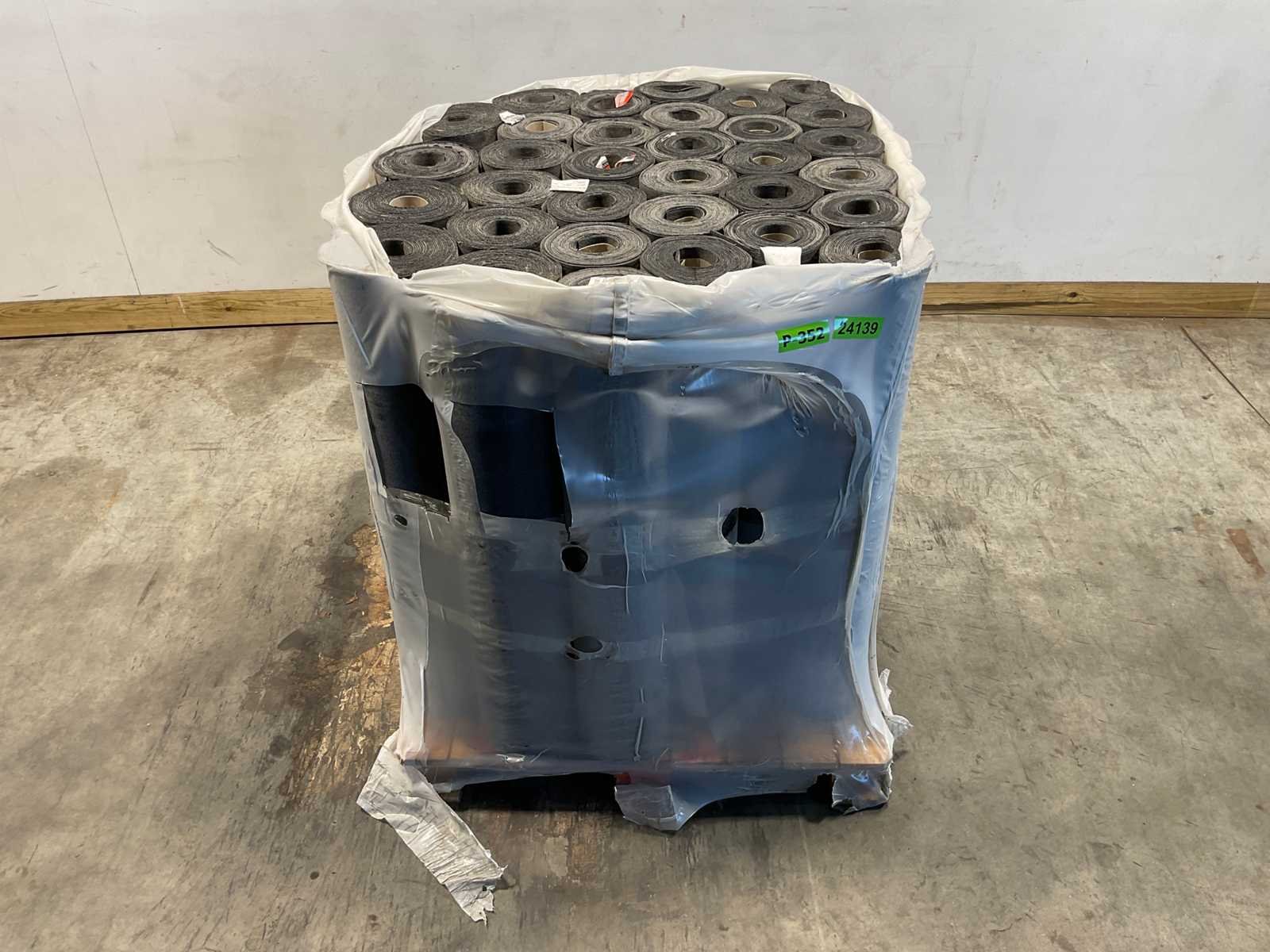 Pallet met 33 rollen bitumen dakleer.