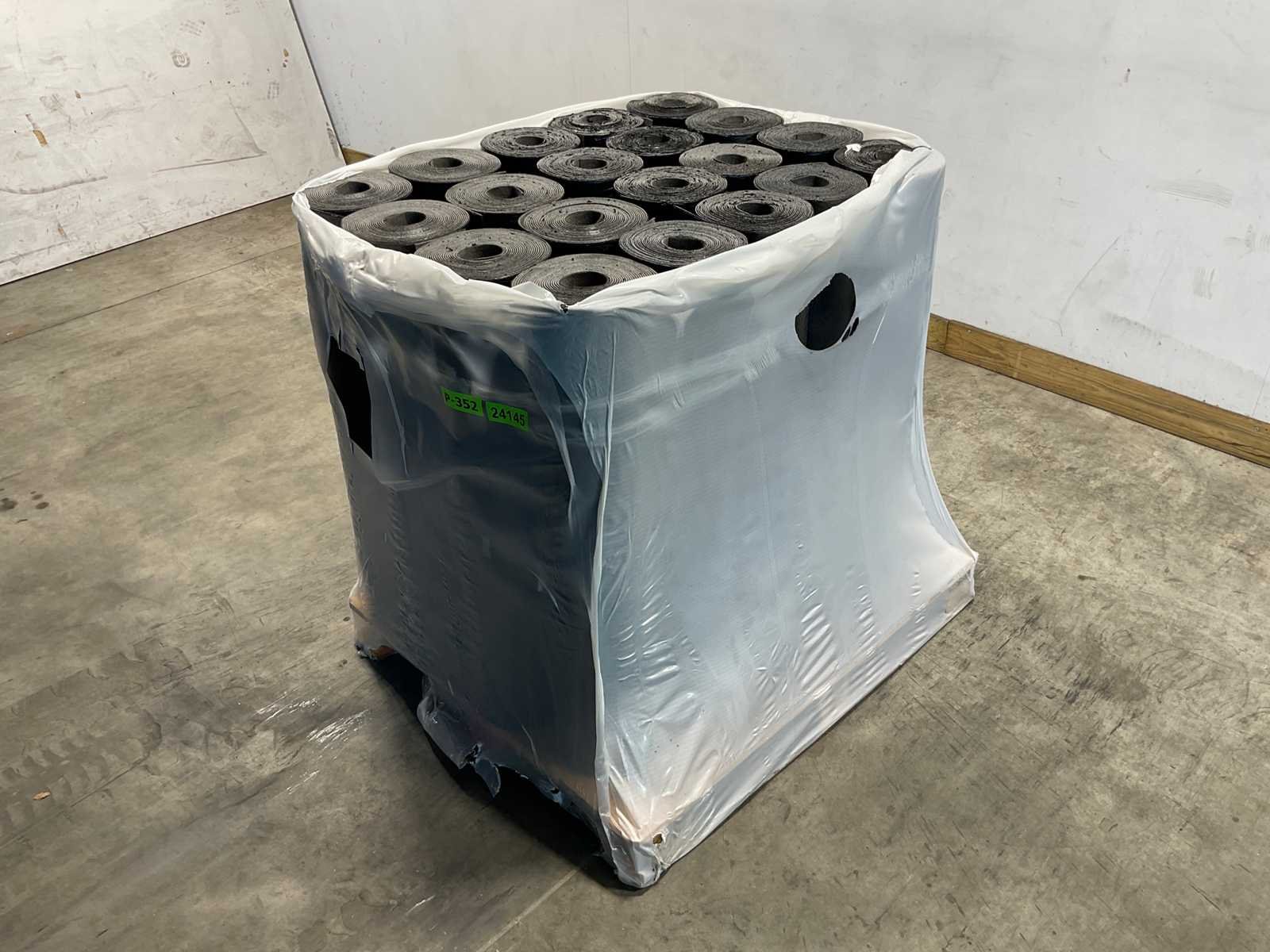 Pallet met 20 rollen bitumen dakleer.