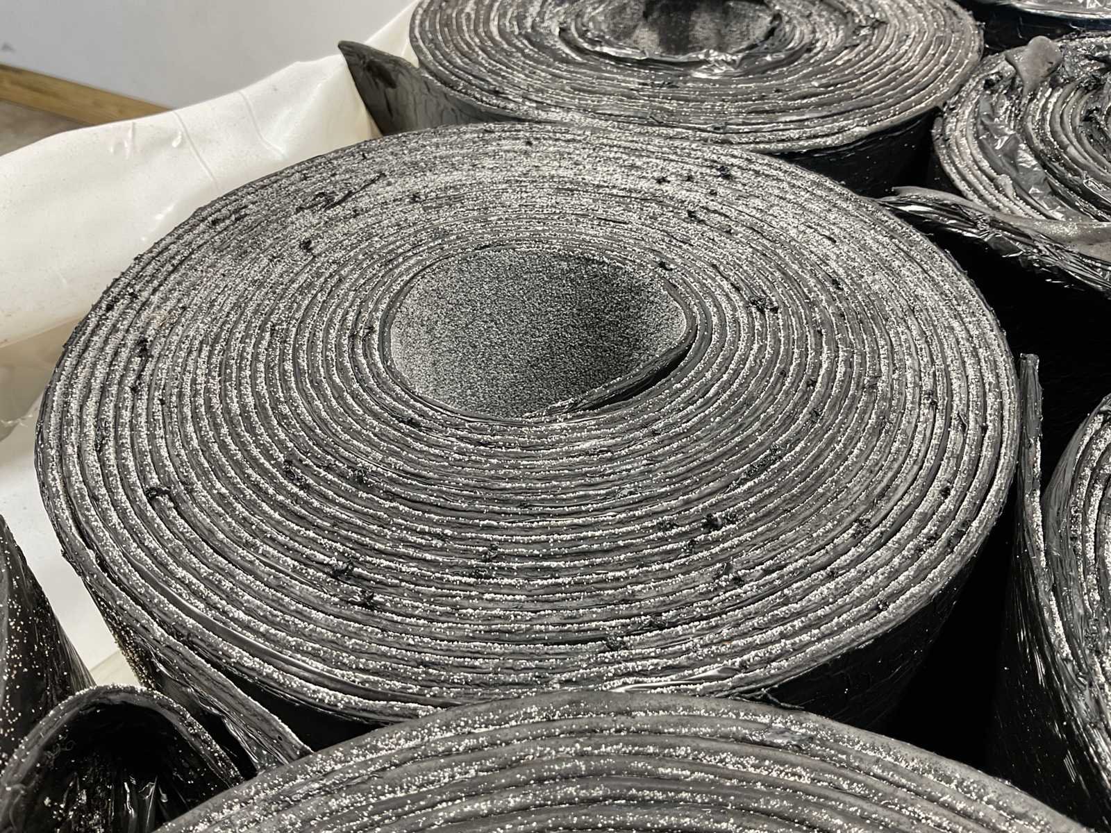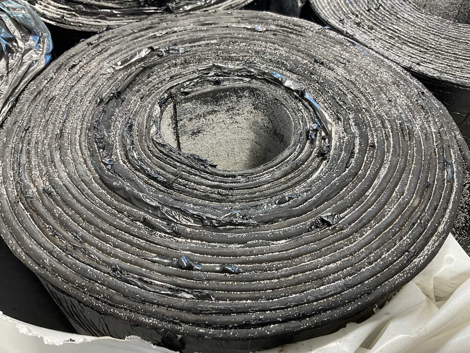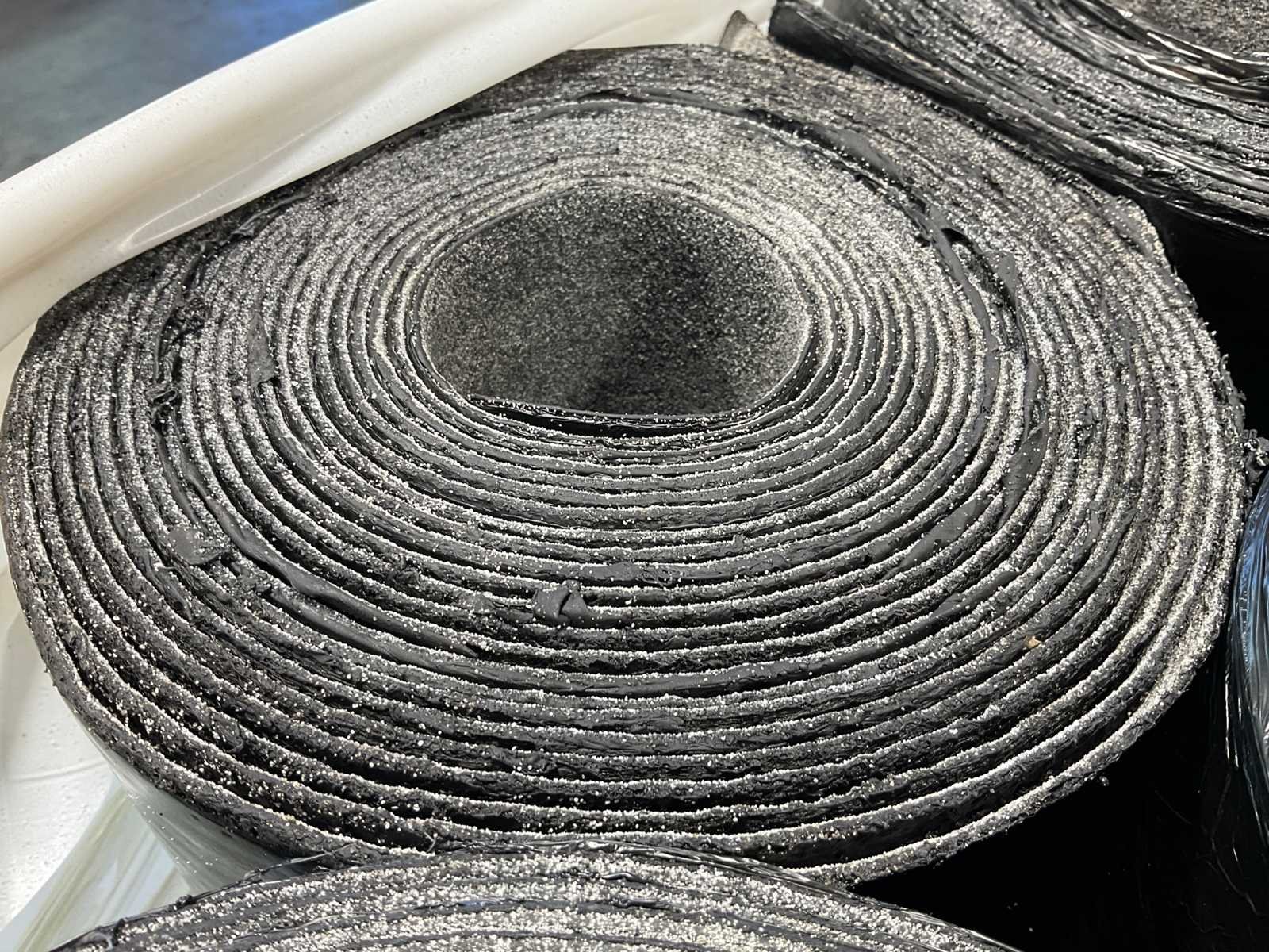 Pallet met 27 rollen bitumen dakleer.
