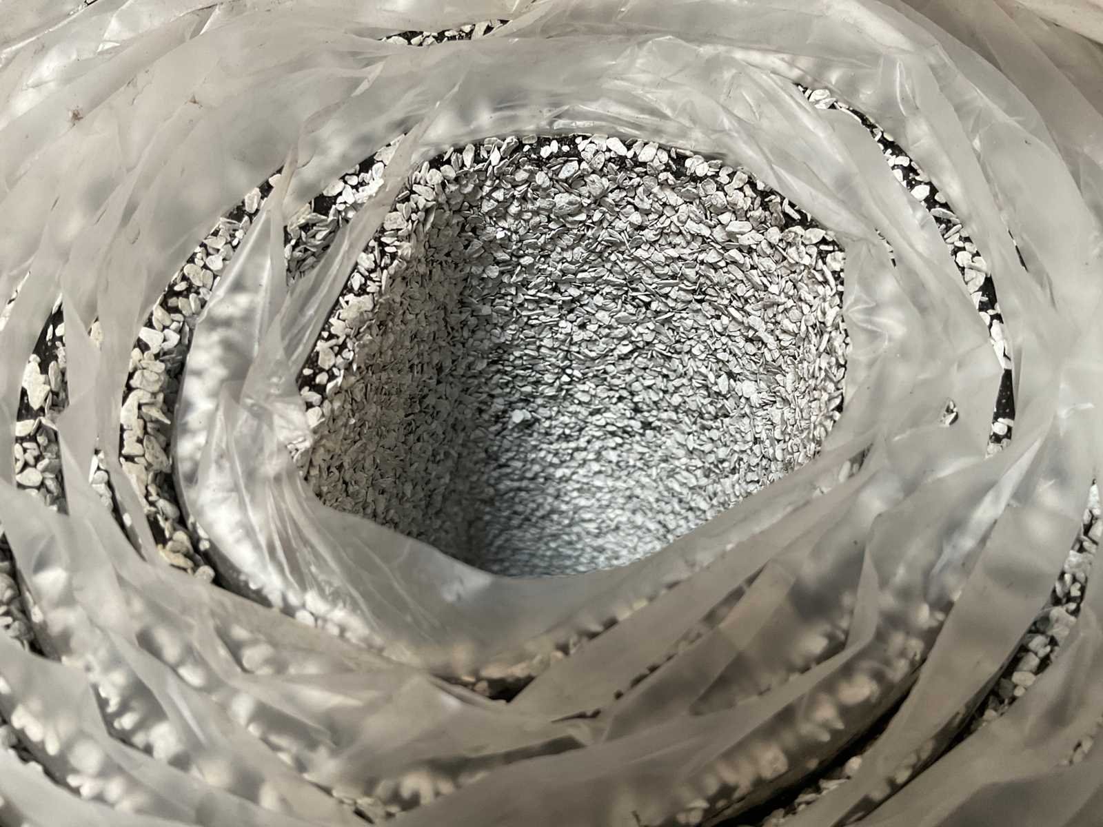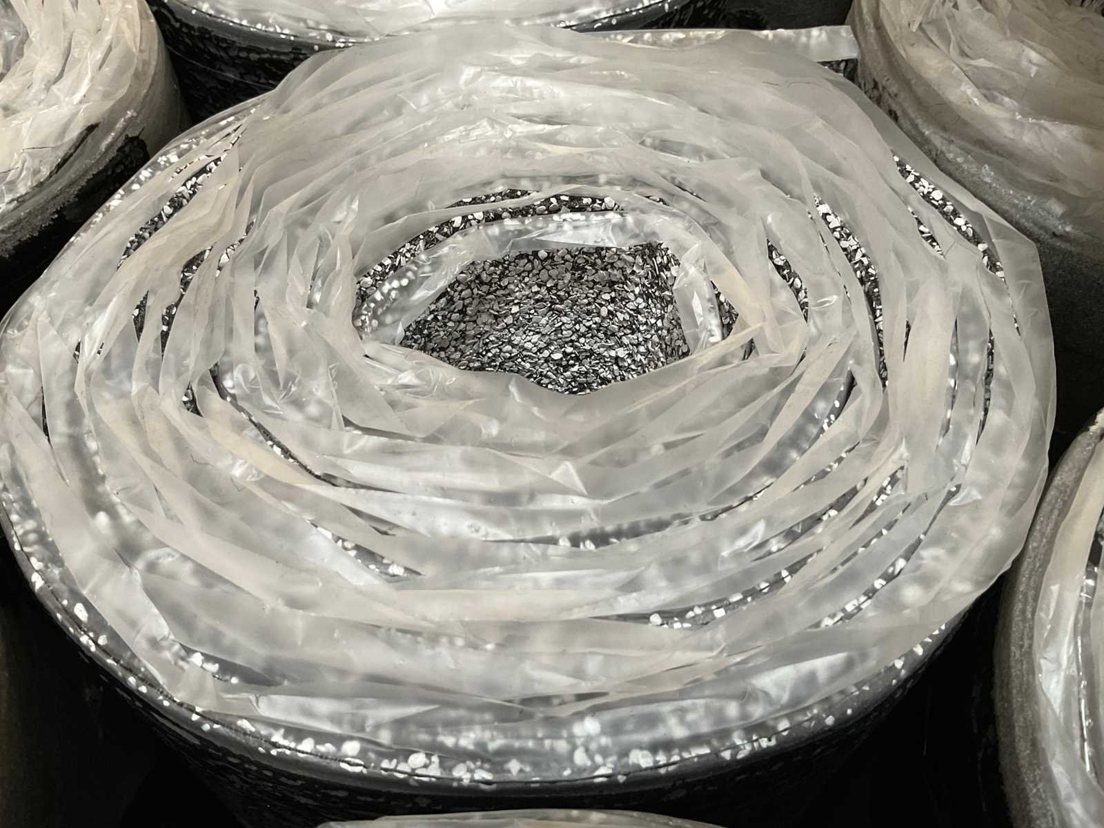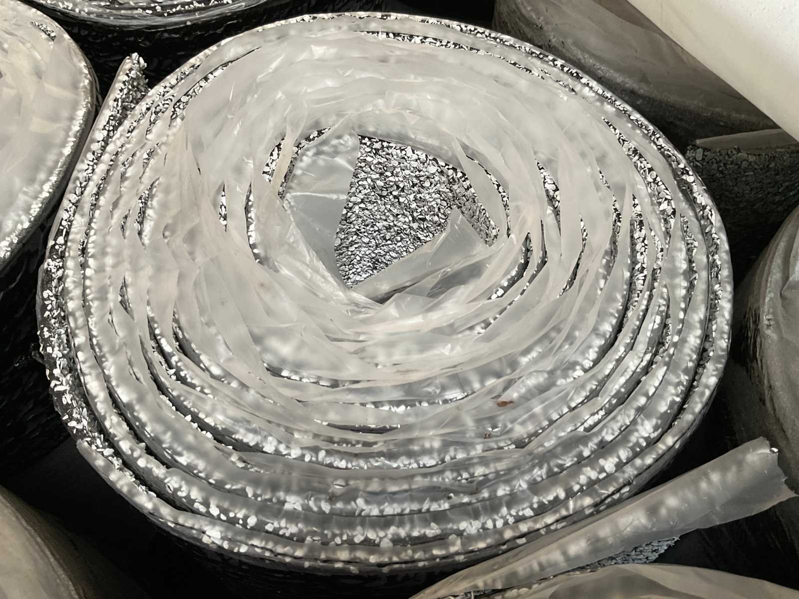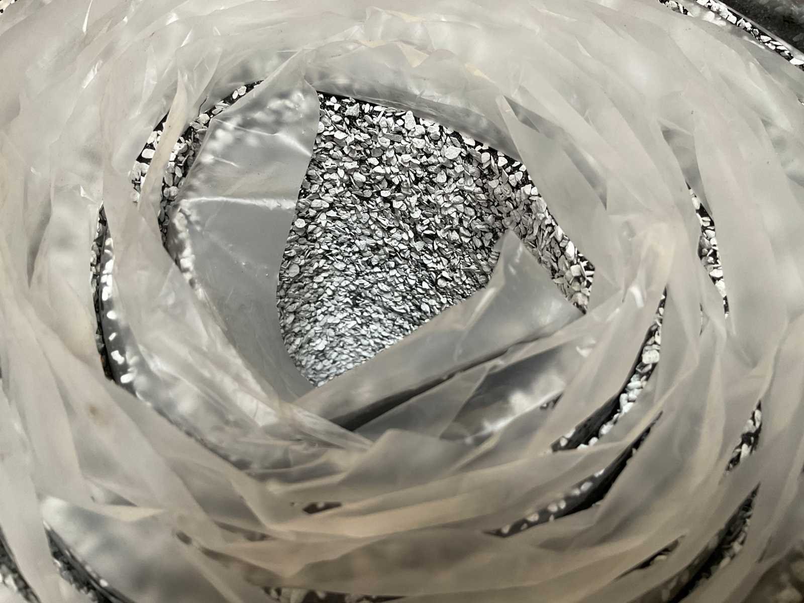 Pallet met 25 rollen bitumen dakleer. Let op: mix witte leislag (21 rollen), grijze leislag (3 rollen) & 1 rol bovenlaag.