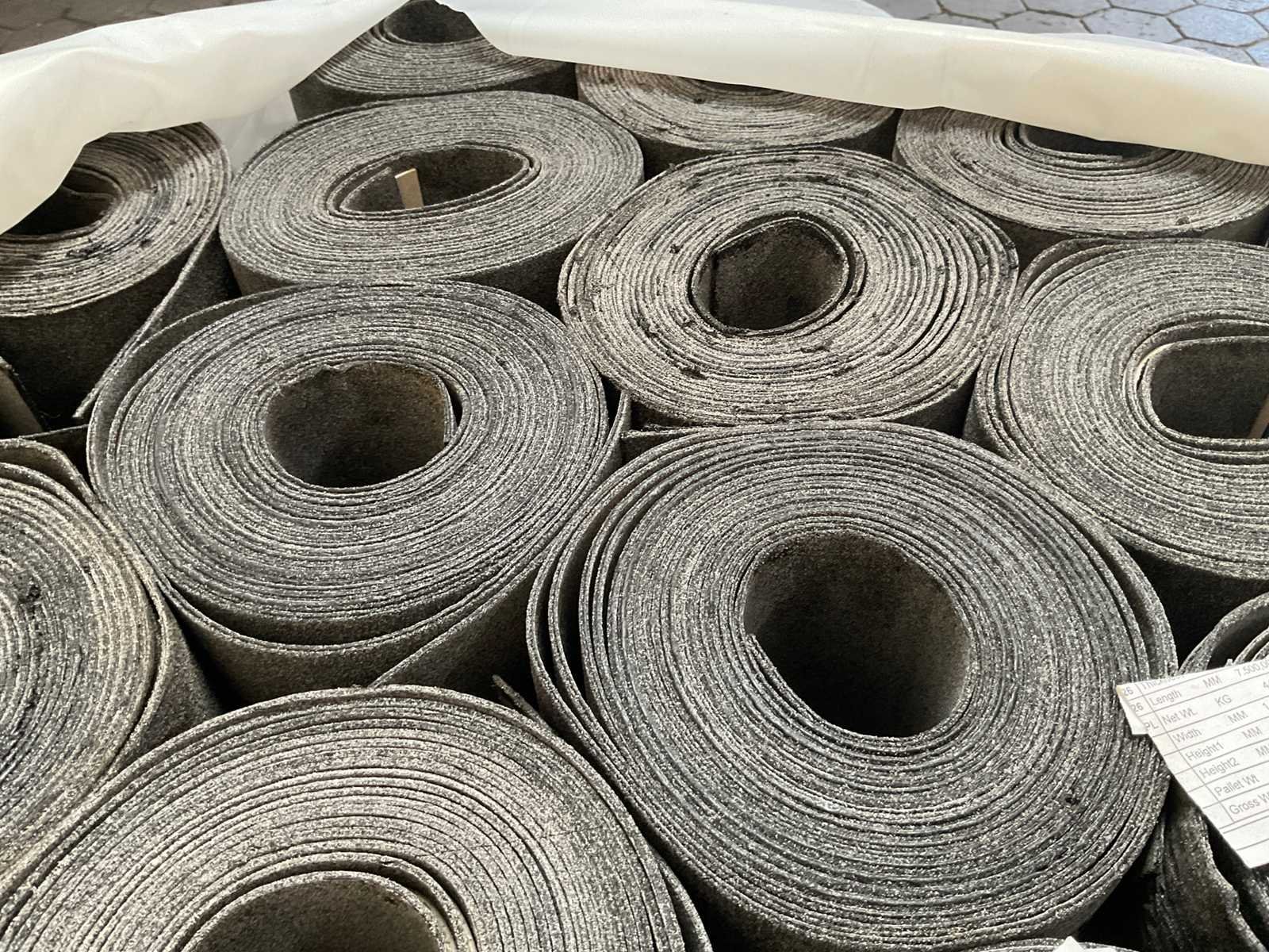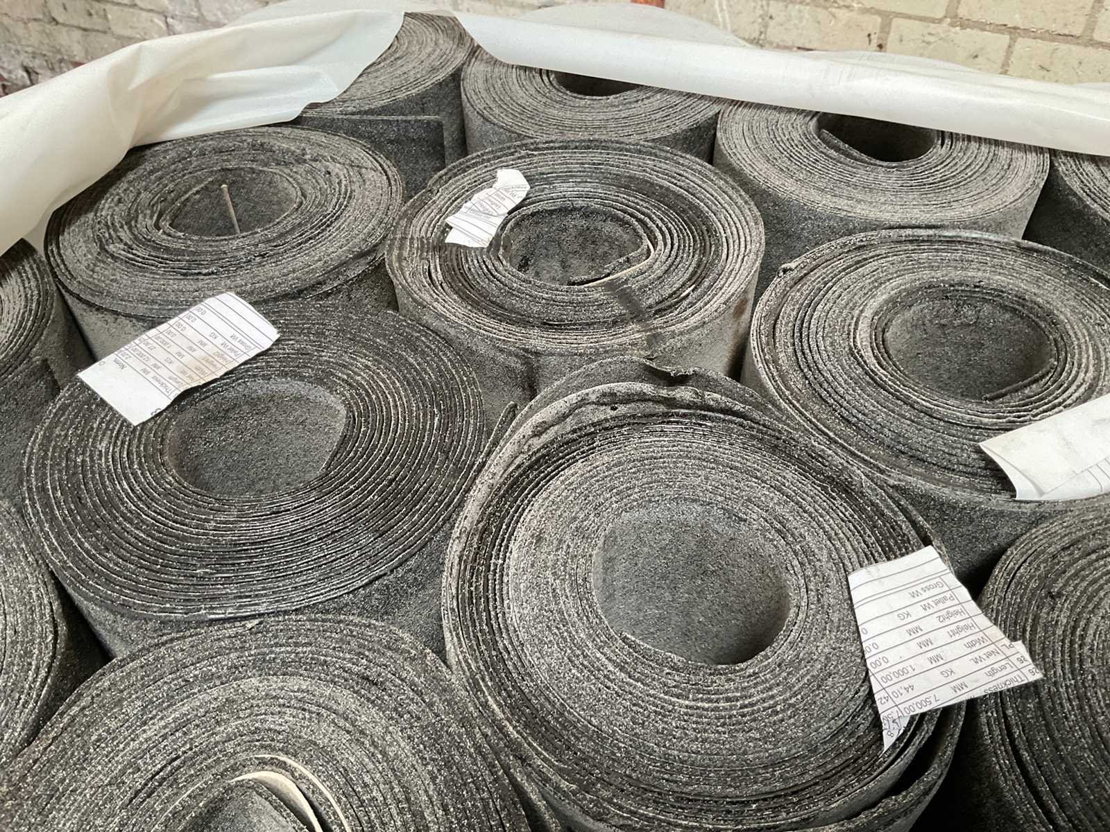 Pallet met 29 rollen bitumen dakleer.