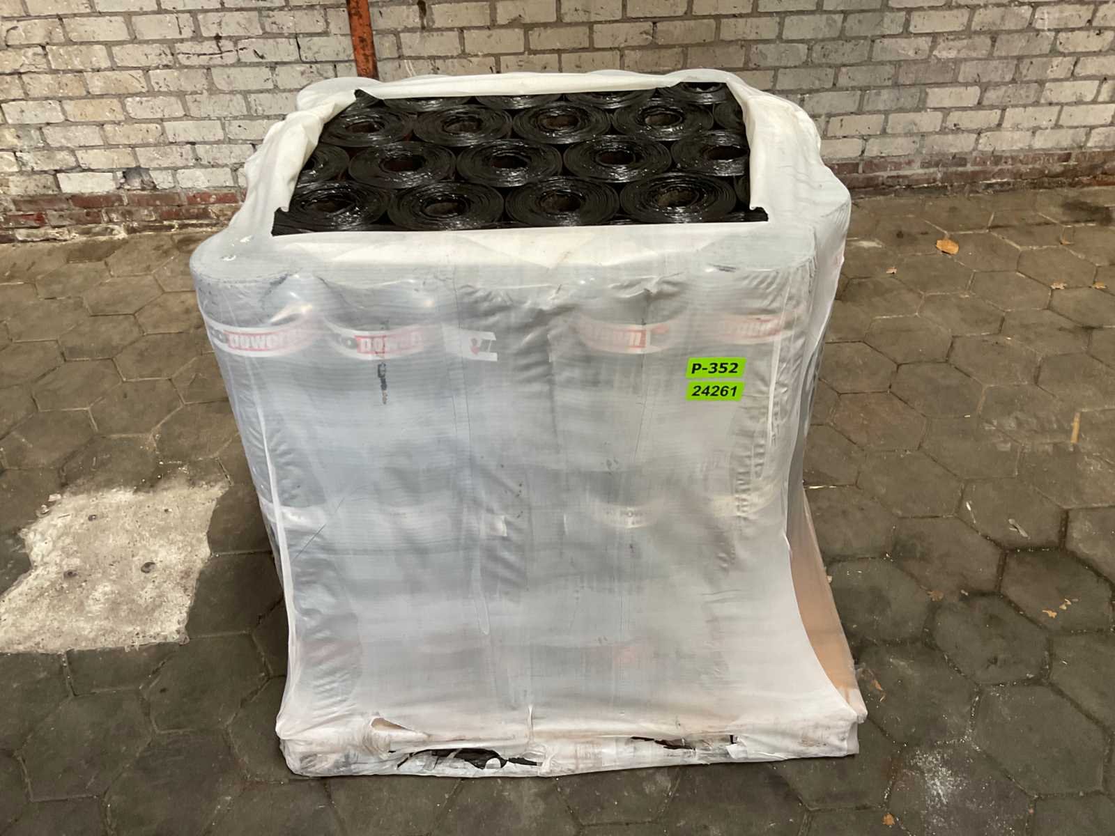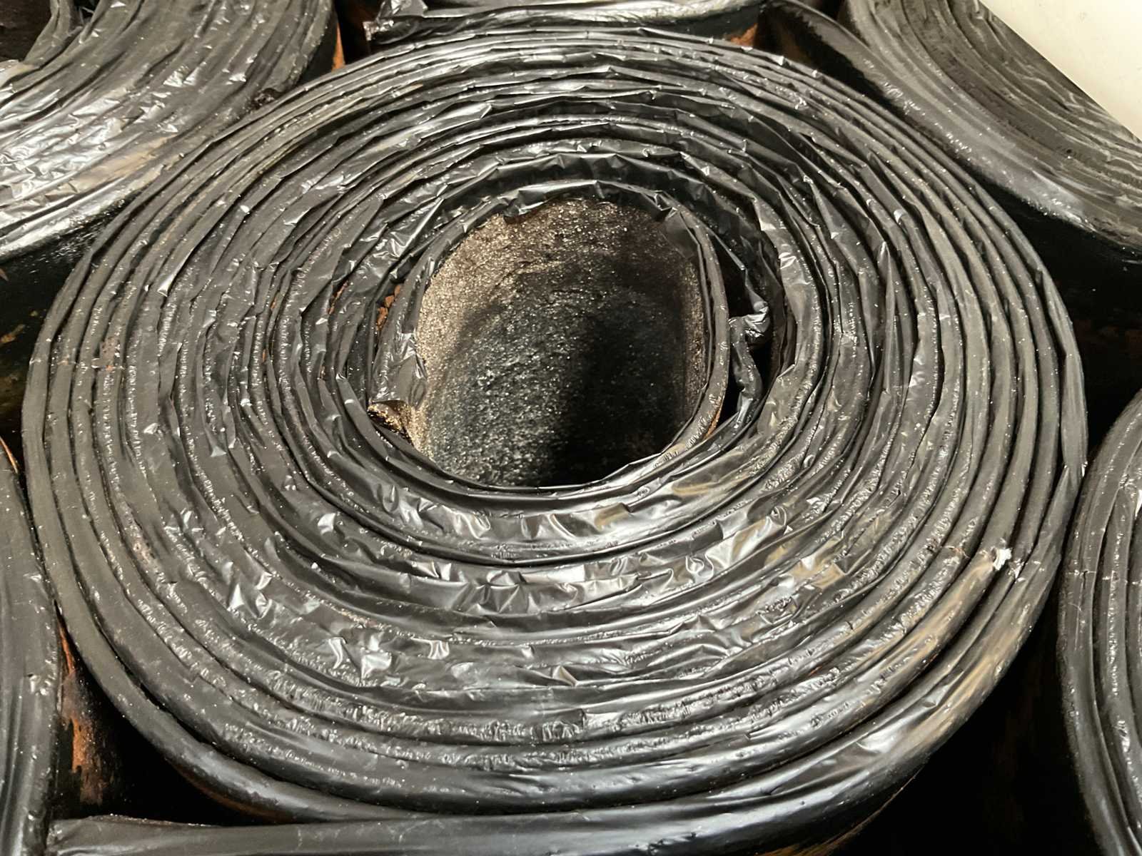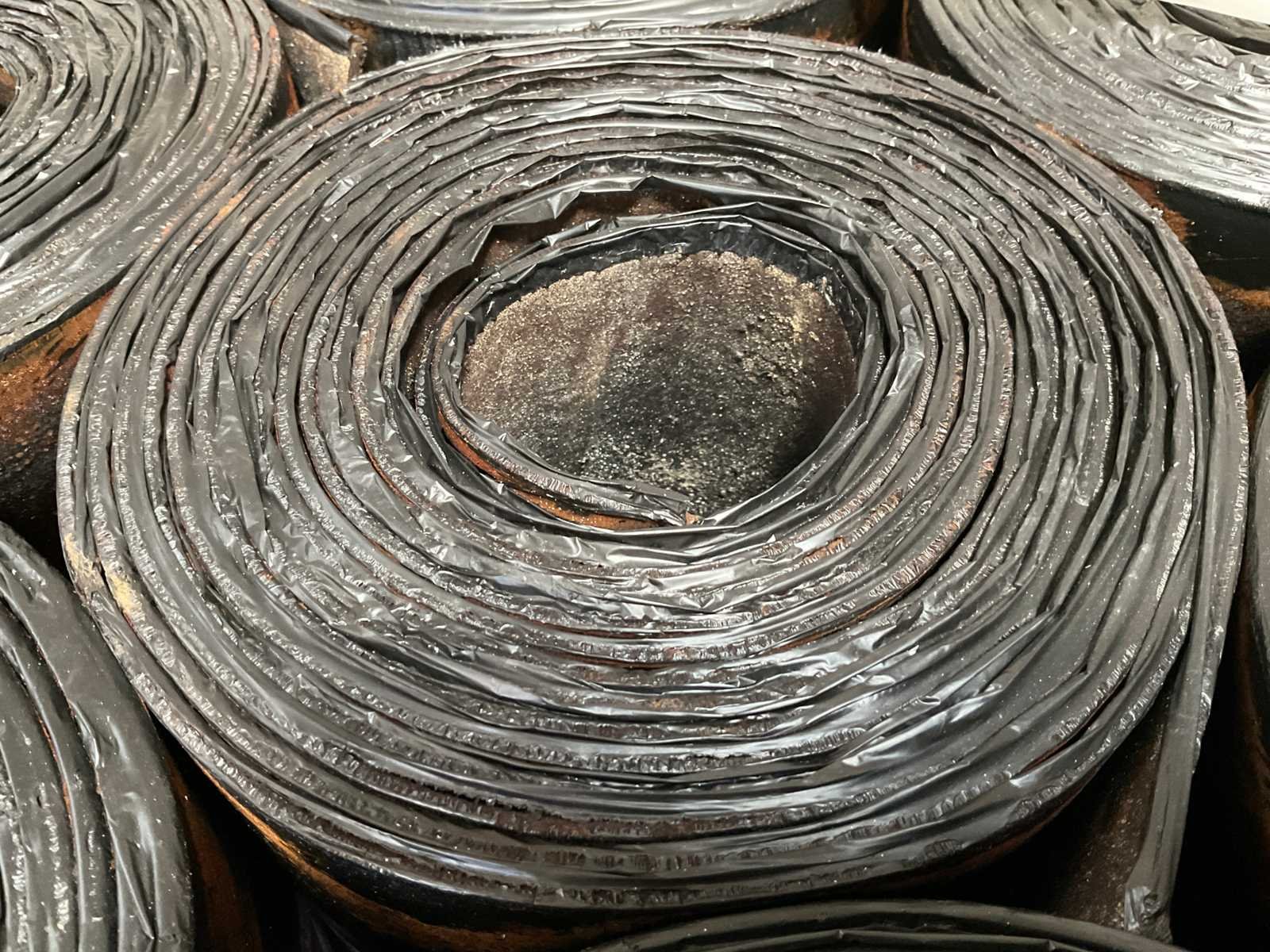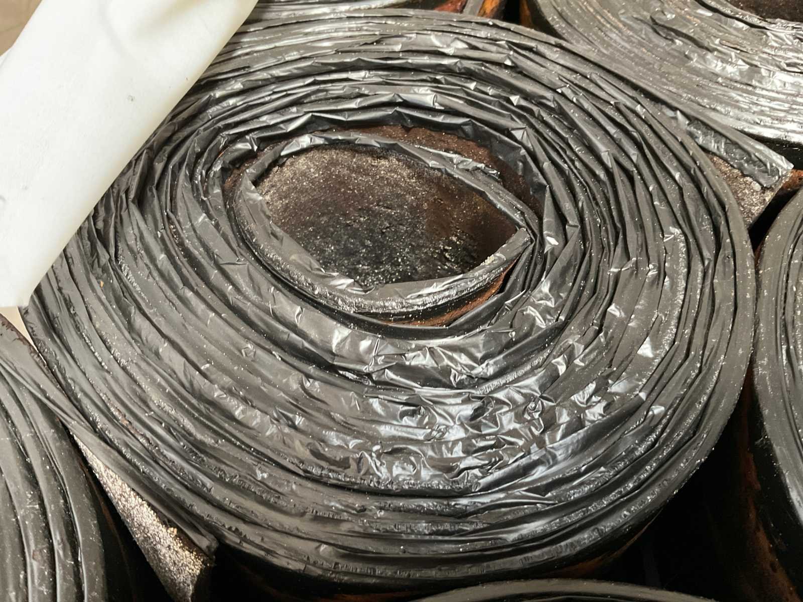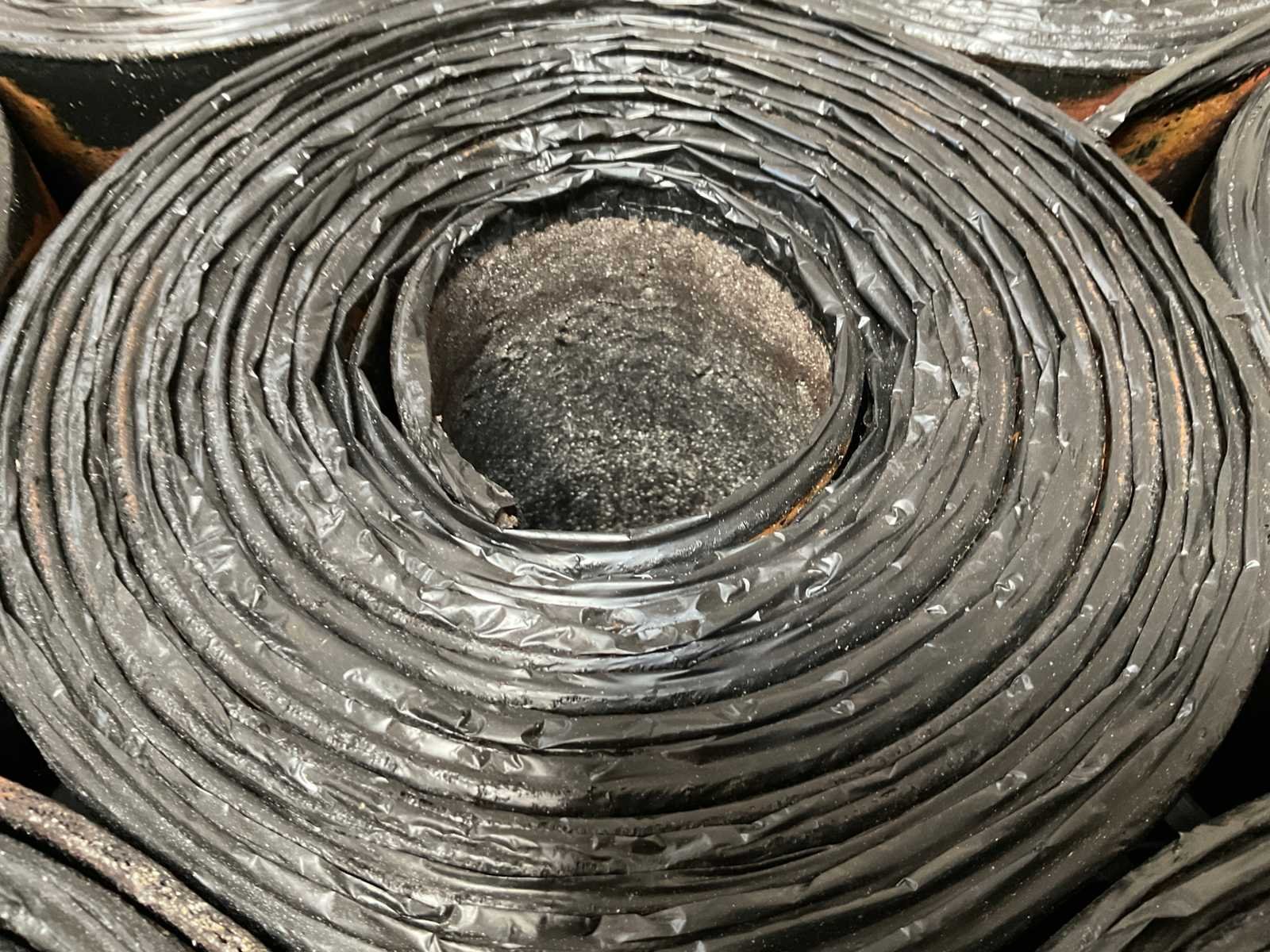 Pallet met 25 rollen bitumen dakleer.