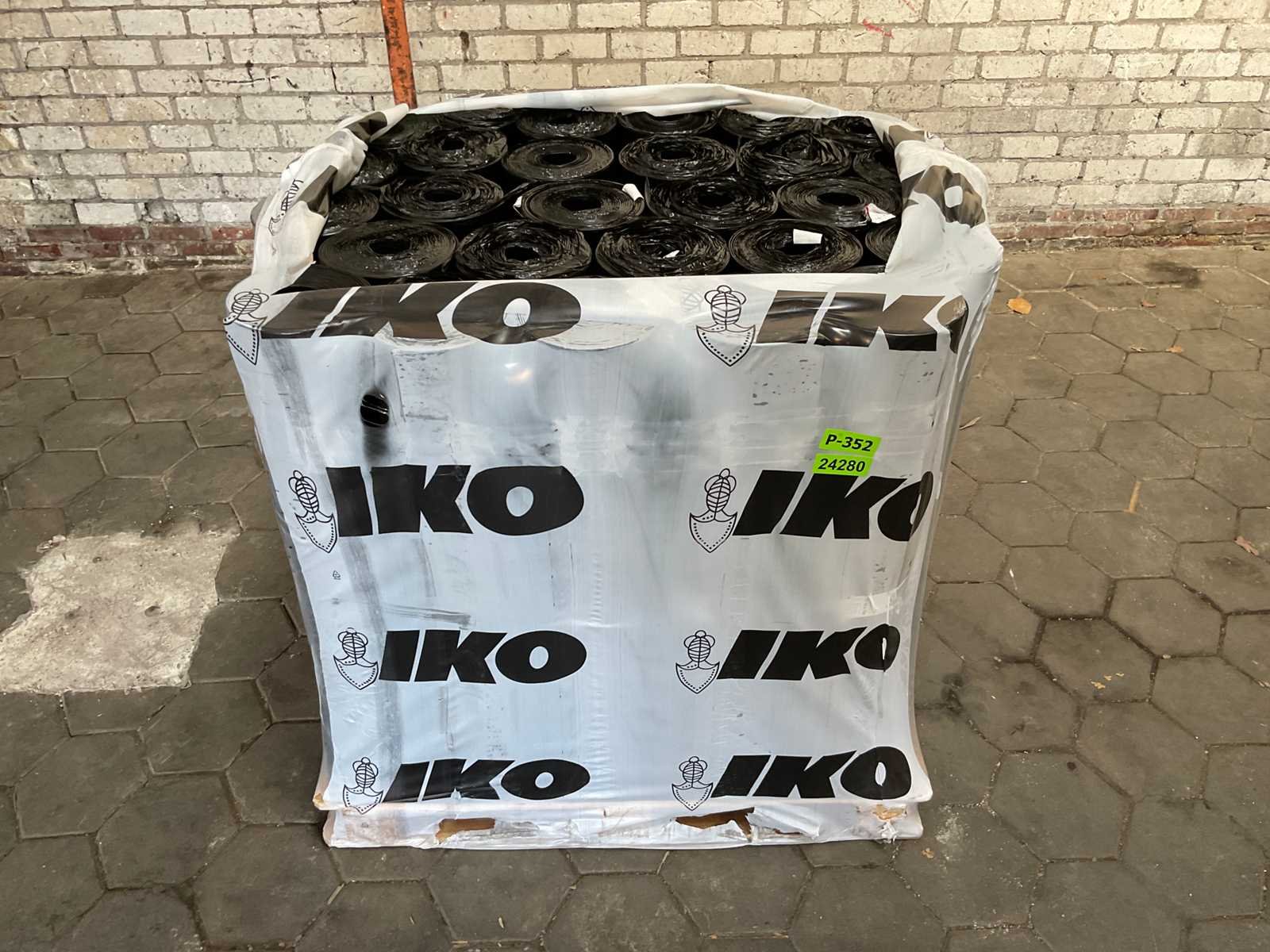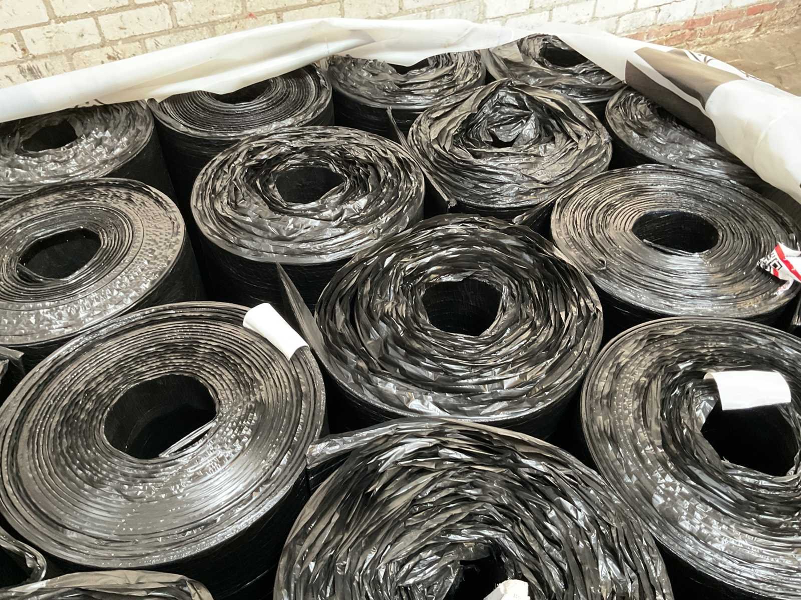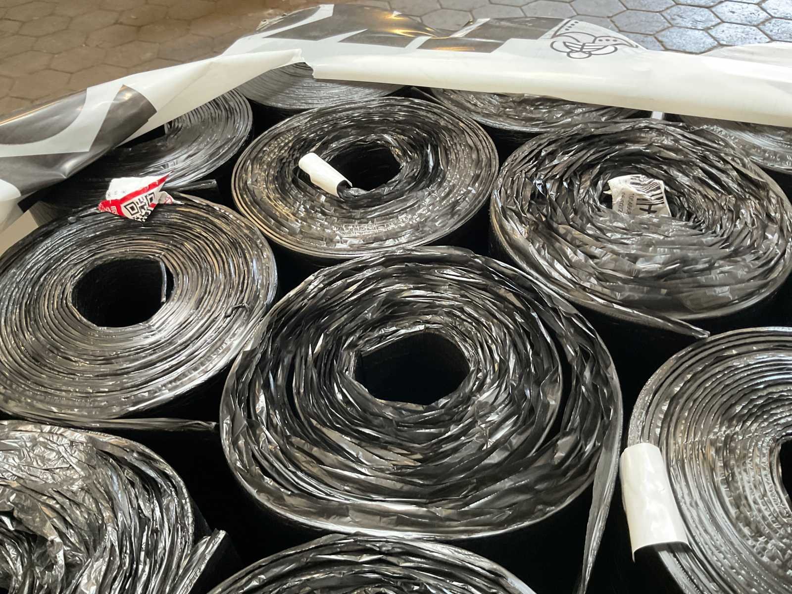 Pallet met 27 rollen bitumen dakleer.
