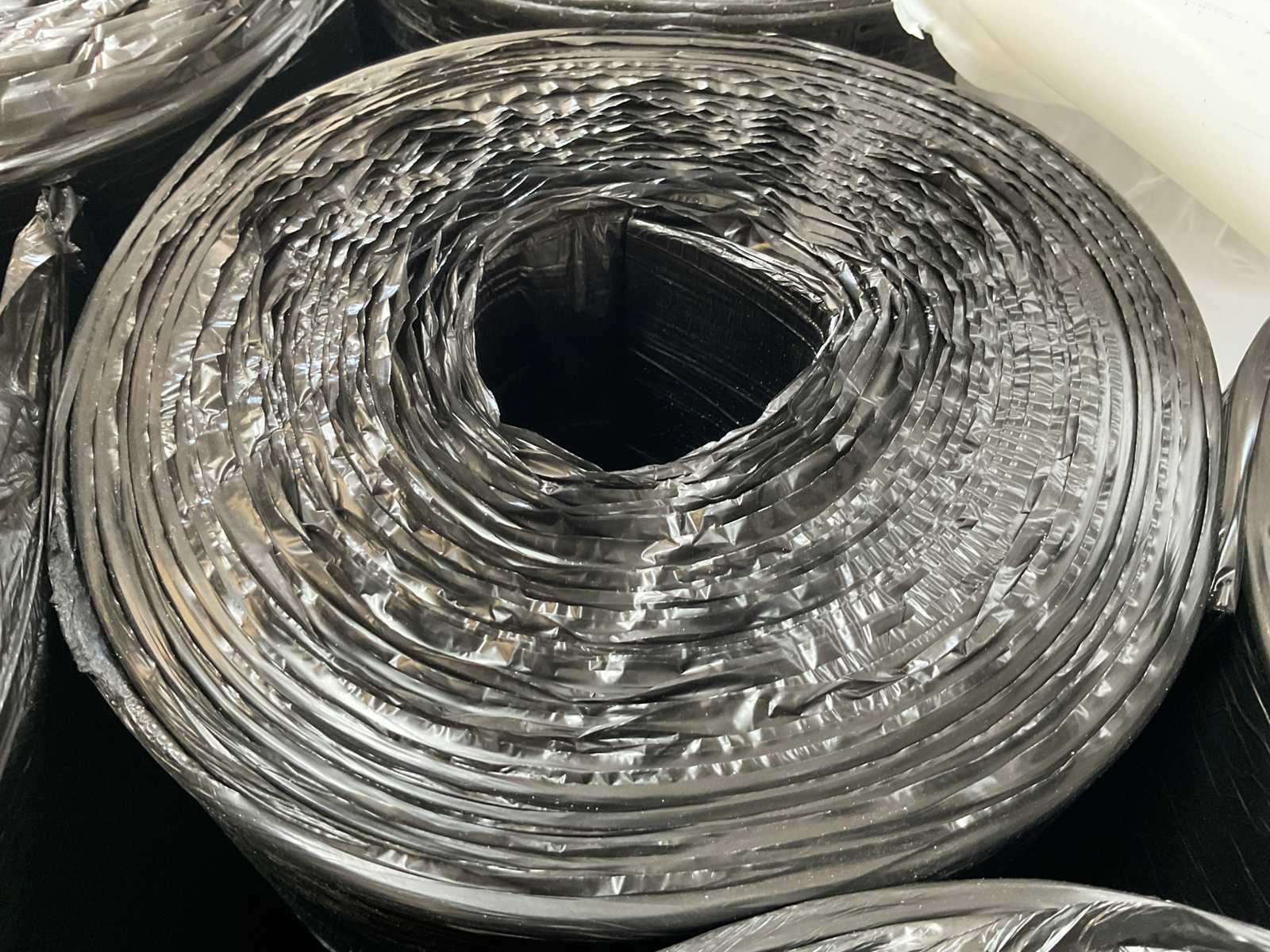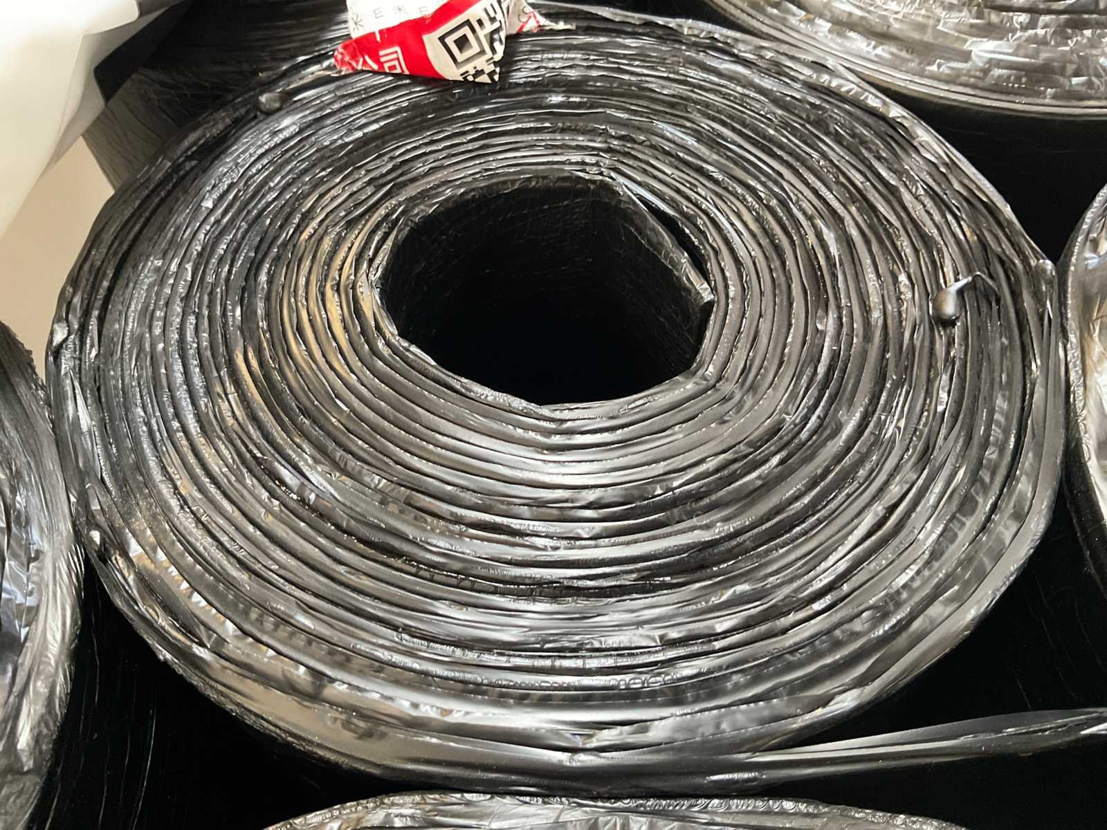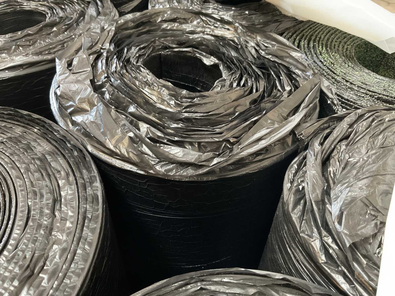 Pallet met 27 rollen bitumen dakleer.