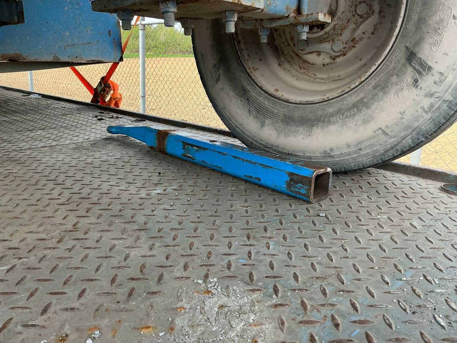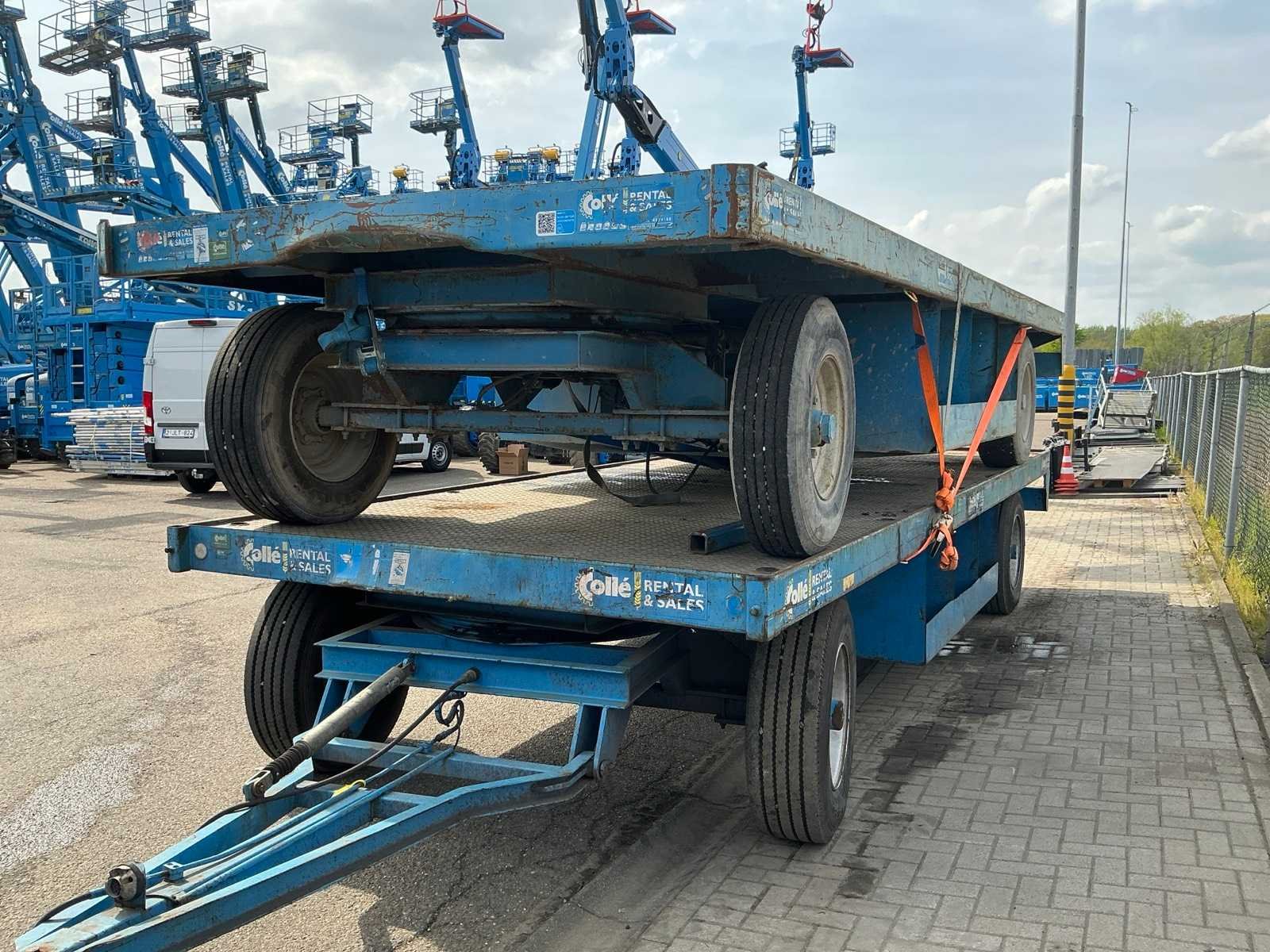 Laadvloer 600x240 cm; Let op! Bovenste trailer heeft schade aan draaikrans Merk: Record Type: PLW 12 ton Laadvermogen: 12000kg Aantal assen: 2 Lengte: 820 Breedte: 240