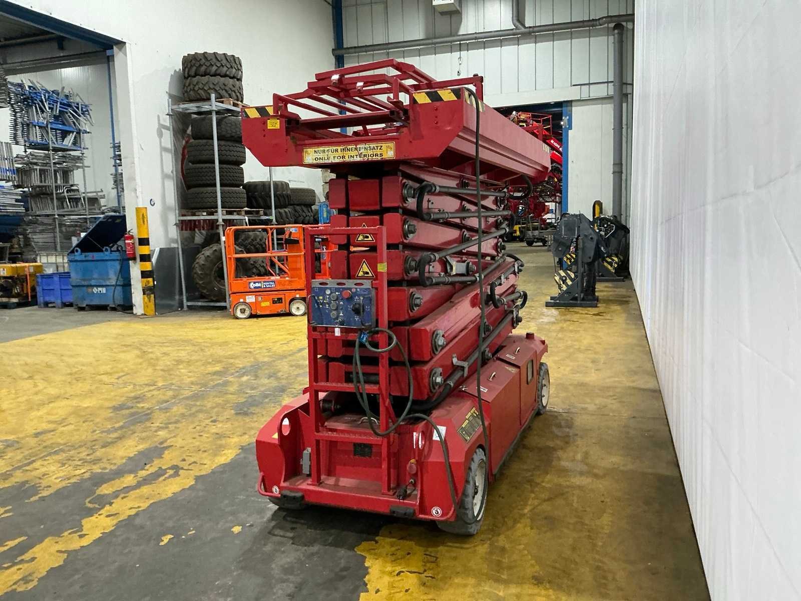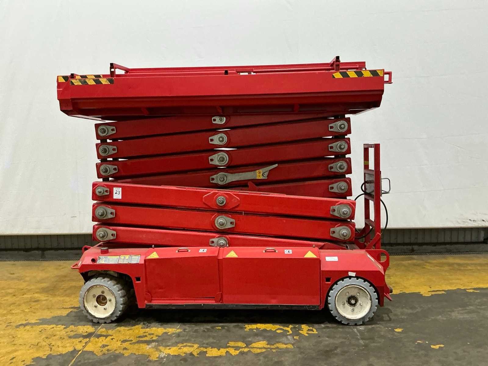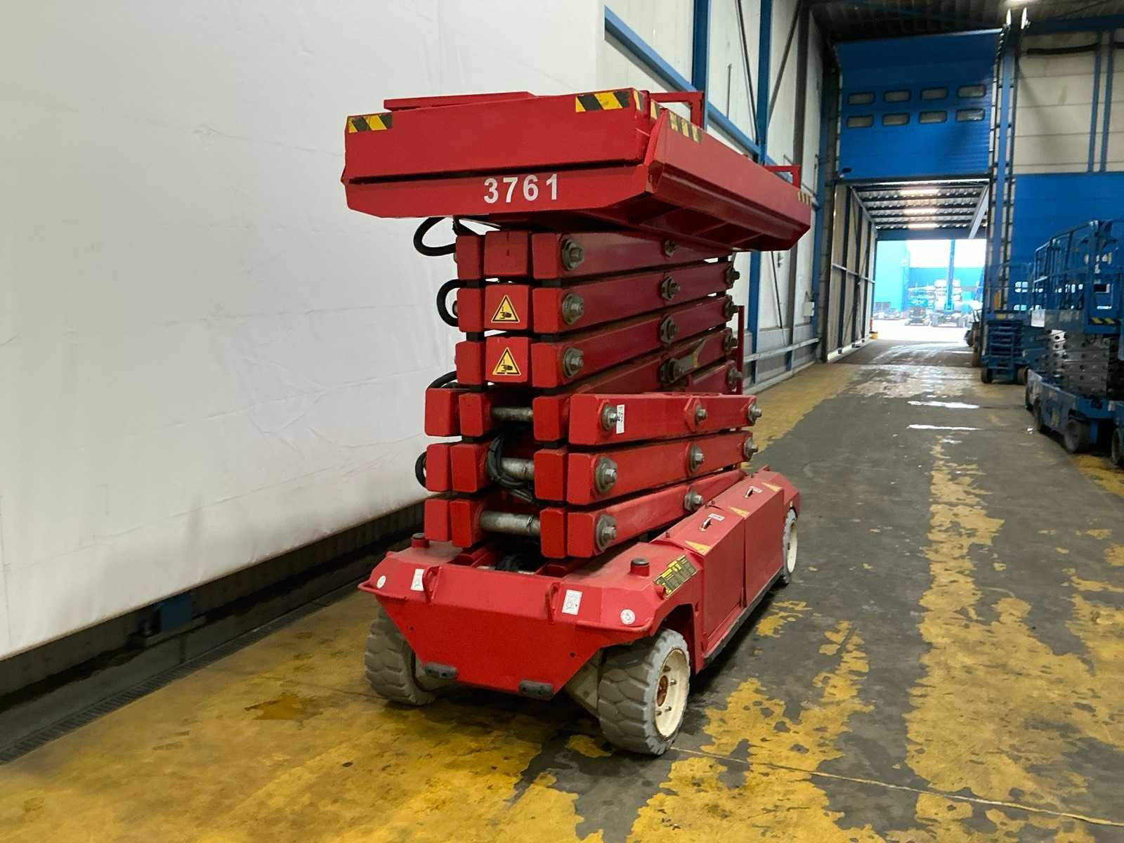 Transporthoogte 2350 mm; urenstand niet afleesbaar; accupakket dient vervangen te worden. Merk: PB Type: S171-12E Bouwjaar: 2013 Serienummer: 10171.1320 Schaarhoogwerker: true Werkhoogte: 17000mm Horizontale rijkwijdte: 15000mm Plateau afm. l: 3000mm Plateau afm. b: 1000mm Platform capaciteit: 400kg Accu lader: true Eigen gewicht: 4670kg Totale afmeting L: 3100mm Totale afmeting Breedte: 1200mm Totale afmeting Hoogte: 2350mm