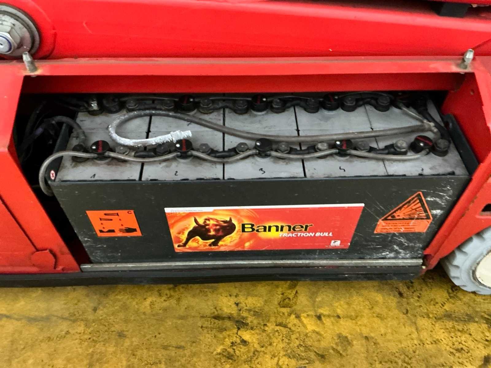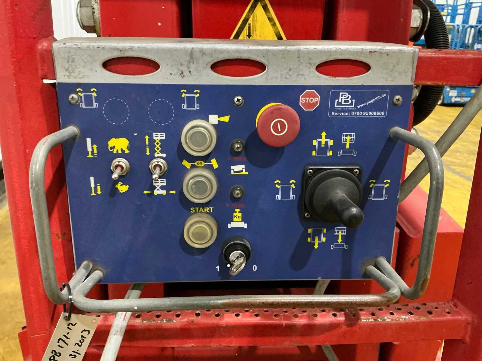 Transporthoogte 2350 mm; urenstand niet afleesbaar; accupakket dient vervangen te worden. Merk: PB Type: S171-12E Bouwjaar: 2013 Serienummer: 10171.1310 Schaarhoogwerker: true Werkhoogte: 17000mm Horizontale rijkwijdte: 15000mm Plateau afm. l: 3000mm Plateau afm. b: 1000mm Platform capaciteit: 400kg Accu lader: true Eigen gewicht: 4670kg Totale afmeting L: 3100mm Totale afmeting Breedte: 1200mm Totale afmeting Hoogte: 2350mm