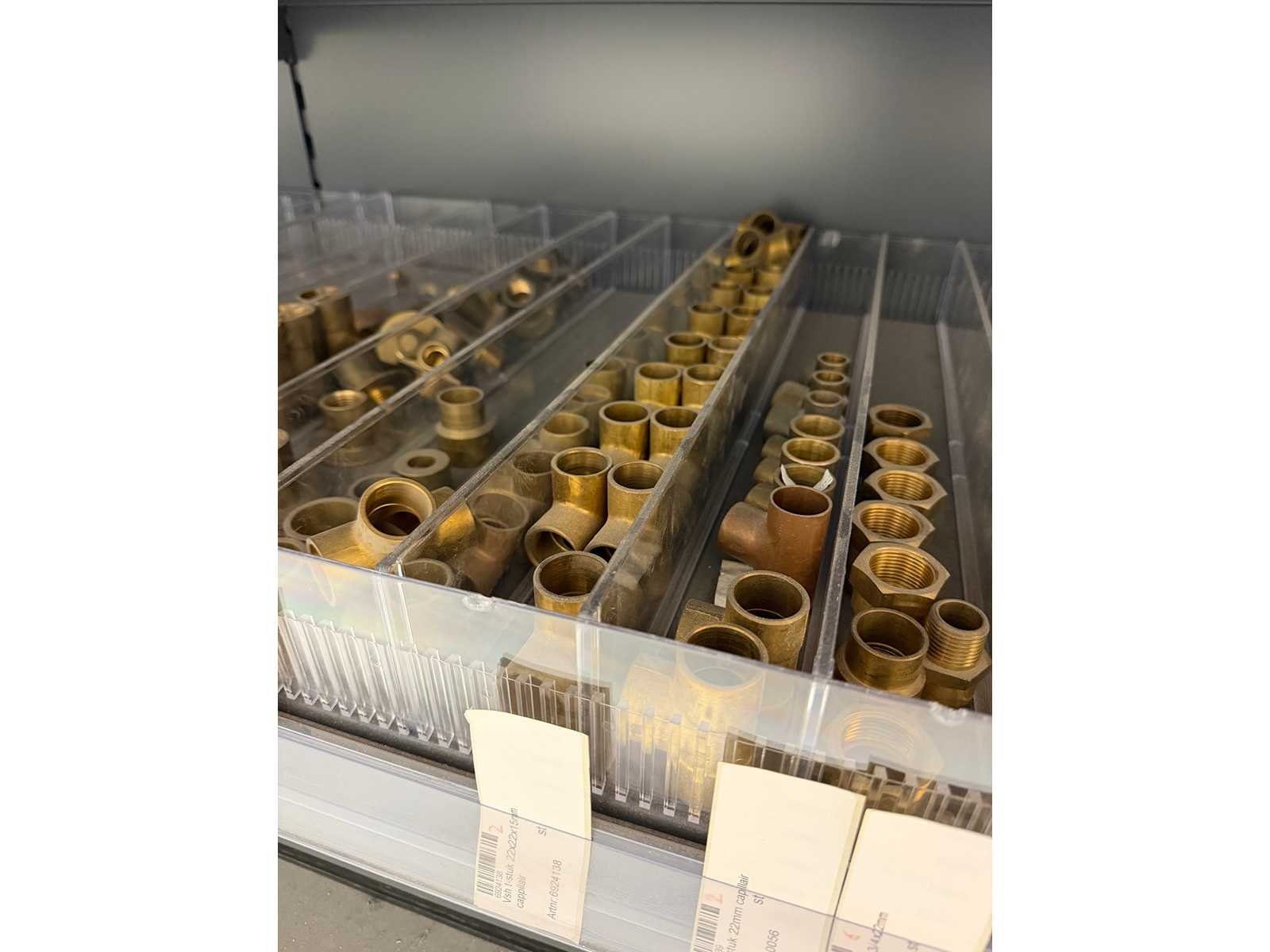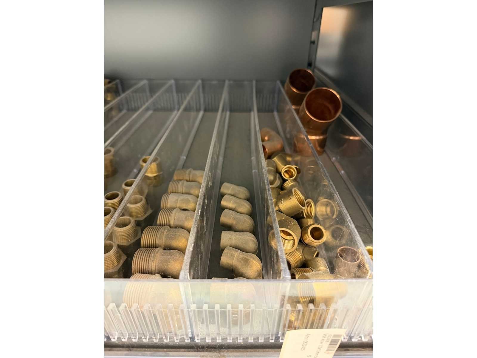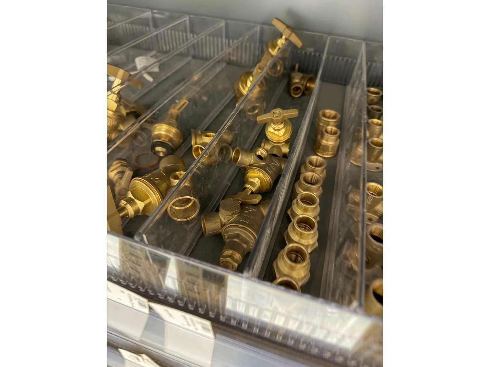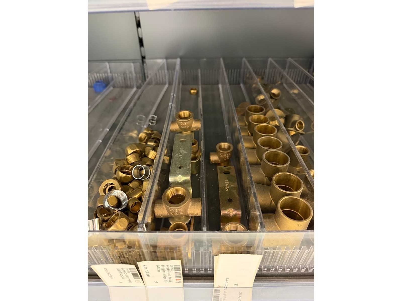 Partij installatiemateriaal w.o. messing koppelingen en koperen hulpstukken