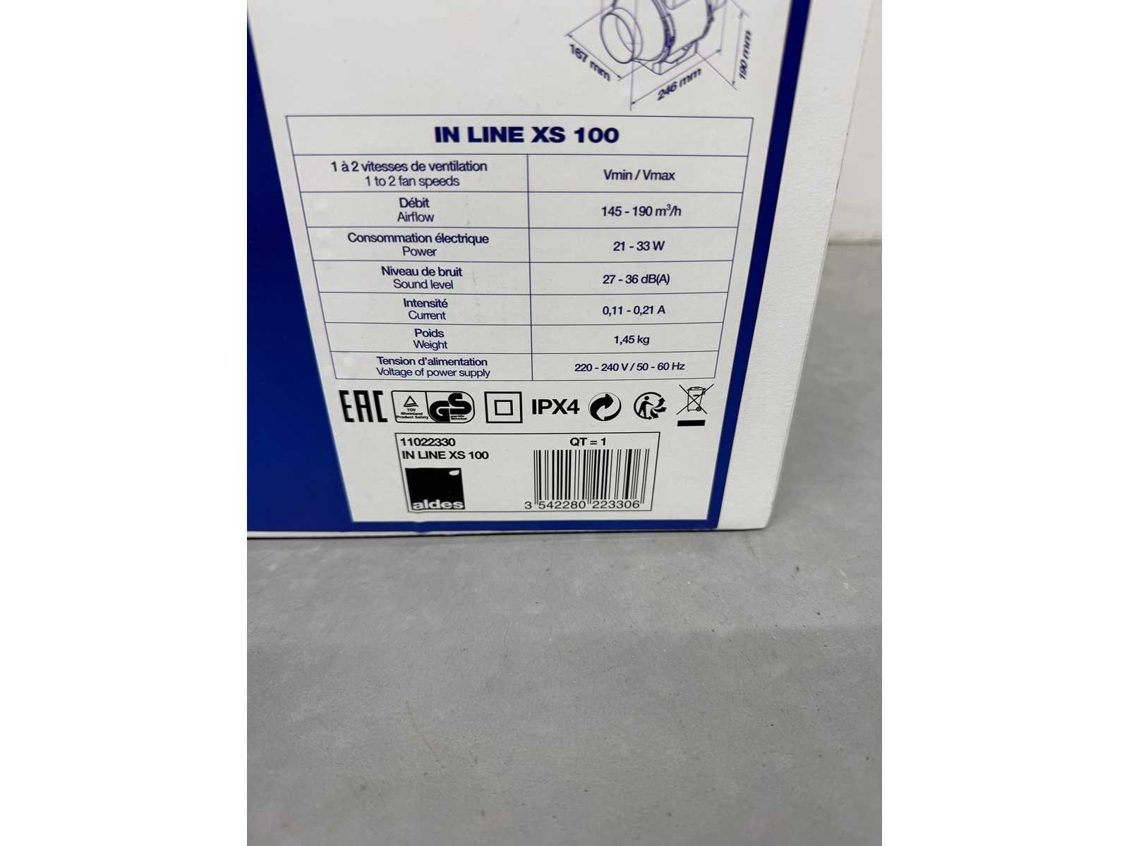 Aldes - inline xs - kanaalventilator 100 mm kunststof