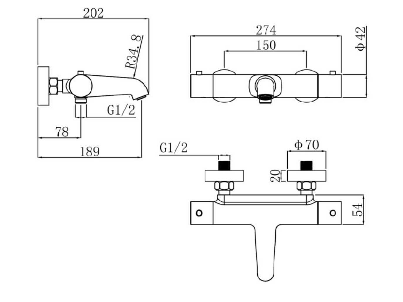 Regn - 10007bb - thermostatische badmengkraan met gekoelde behuizing geborsteld goud