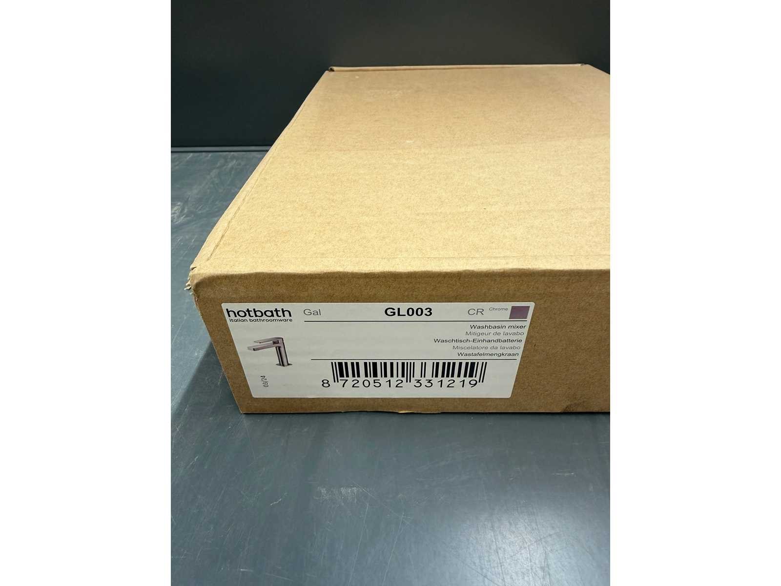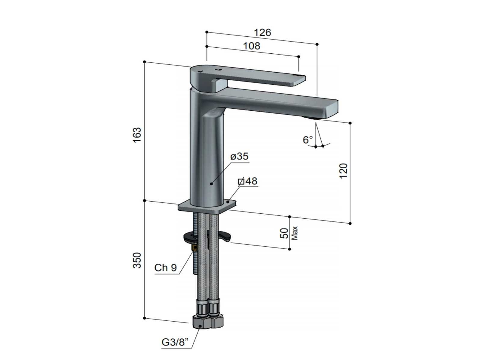 Hoogte: 16.3 cm Breedte: 3.5 cm Diepte: 12.6 cm Materiaal: Messing Kleur: Chroom Afmeting gat: 4.8 cm Hoogte uitloop: 12 cm Koud of warm water: Mengkraan Lengte Uitloop: 12.6 cm Merk: Hotbath Model: Gal GL003