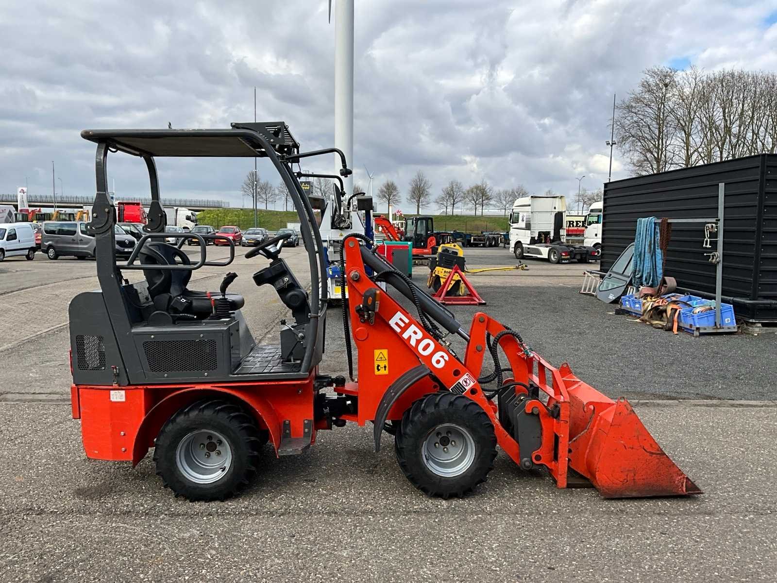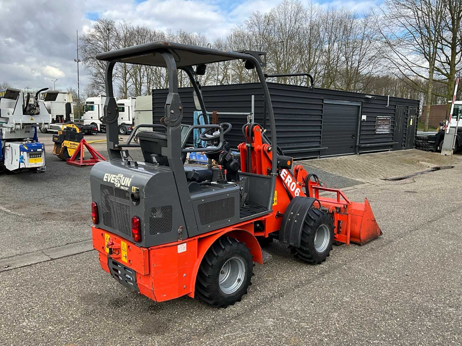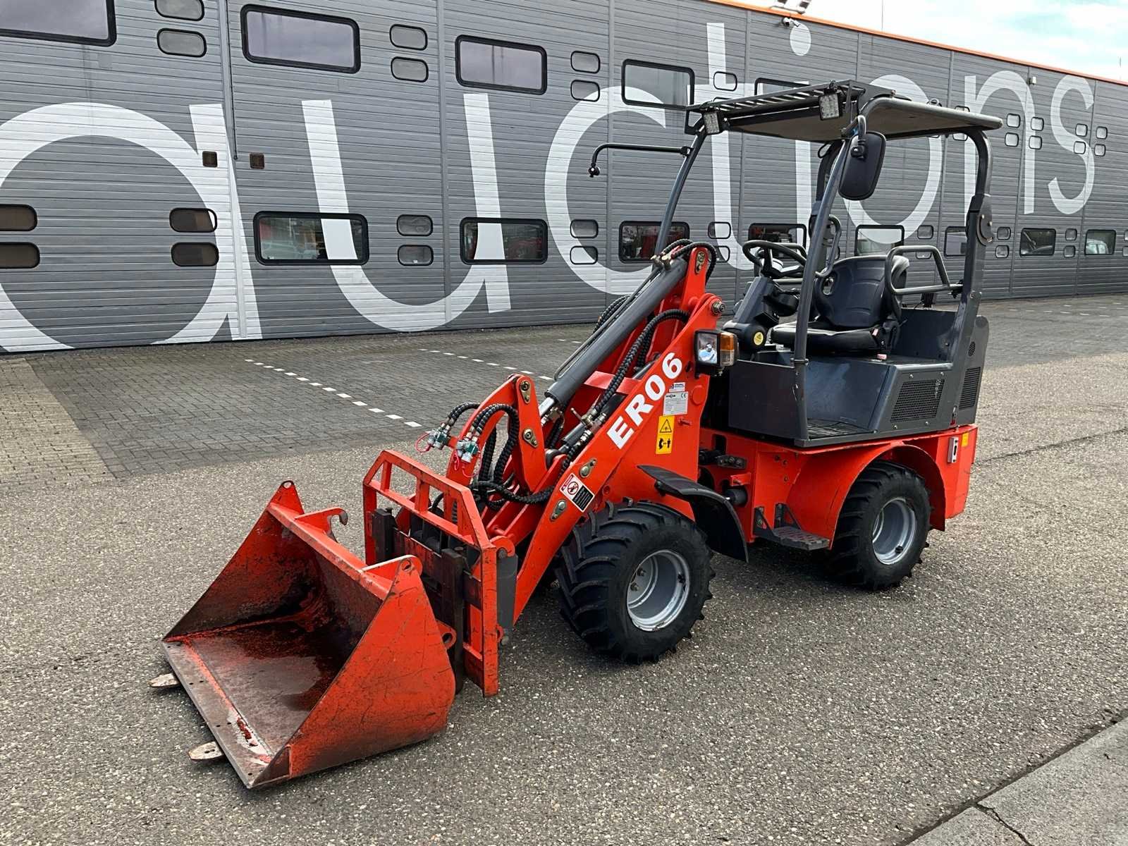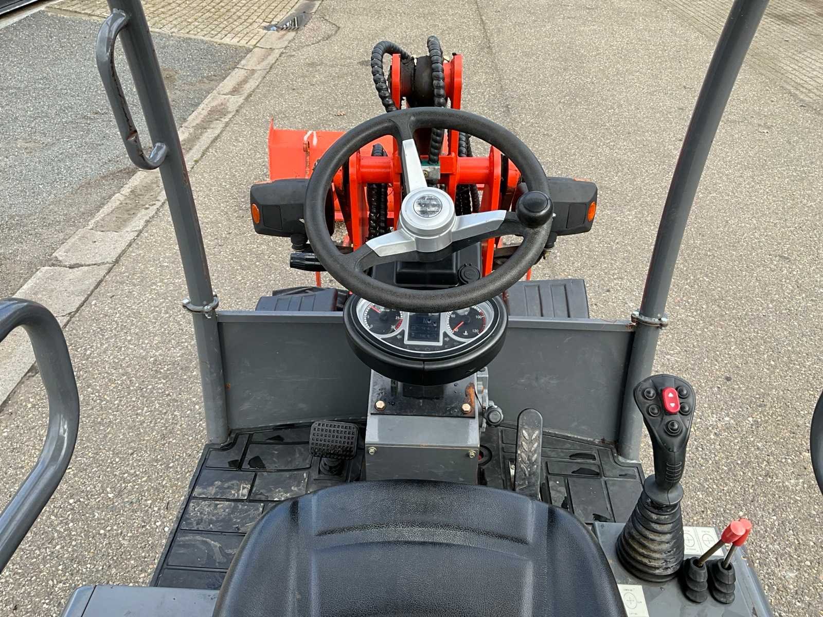 Hydraulische snelwissel, dichte bak 1200mm, vorkenbord 1000mm breed lengte vorken 900mm, 2x extra hydraulische functie, 4WD, wegverlichting Merk: Everun Type: ER06 Bouwjaar: 2020 Serienummer: 200216 Merk motor: Kubota D1105 Motorvermogen (kW): 18kW Aantal cilinders: 3 Brandstof: Diesel Bedrijfsgewicht: 2000kg Graafbak afm. b: 1200mm Bandenmaat: 26x12.00-12 Afgelezen urenstand: 130 Totale afmeting L: 4600mm Totale afmeting Breedte: 1200mm Totale afmeting Hoogte: 2350mm
