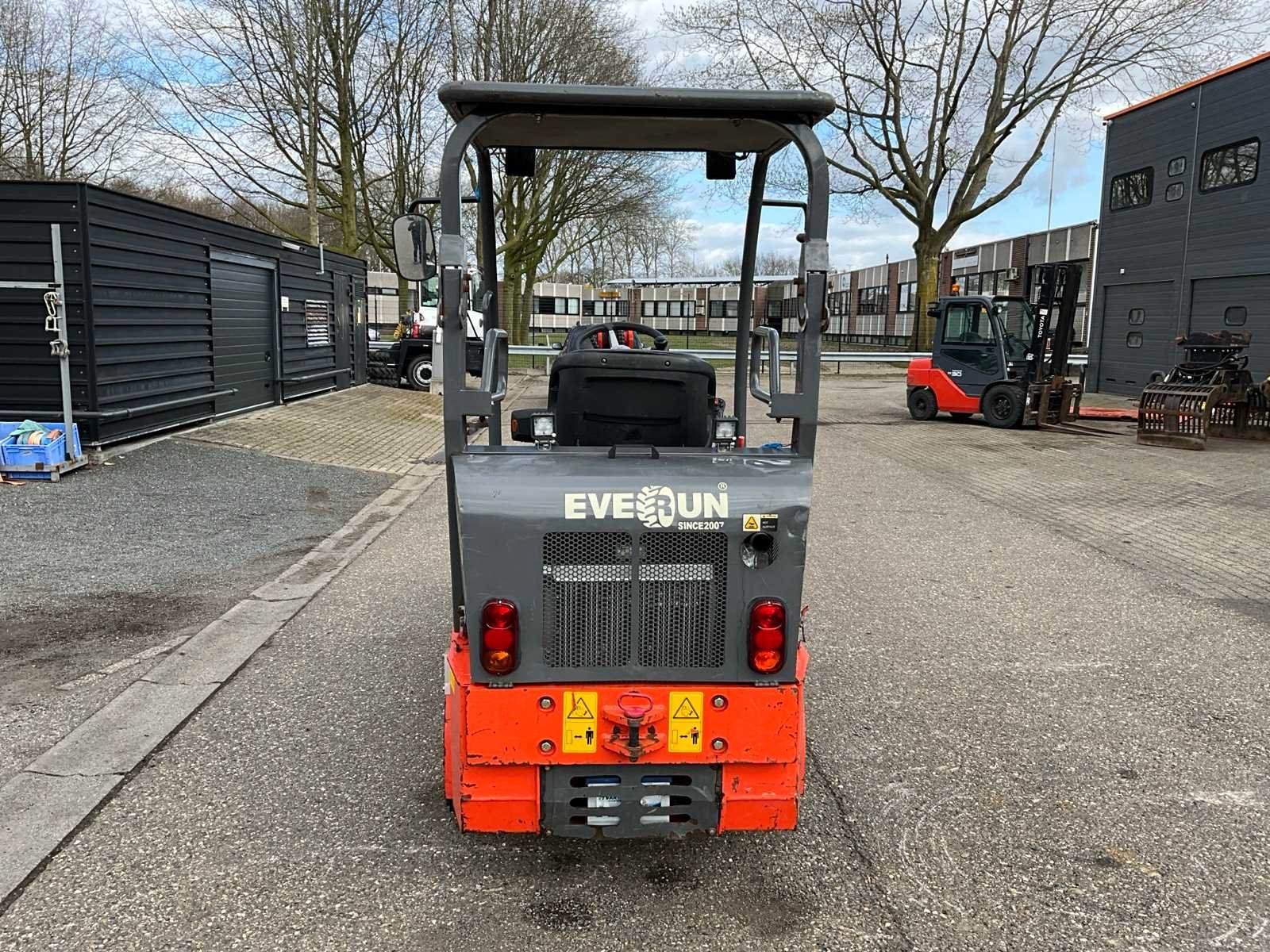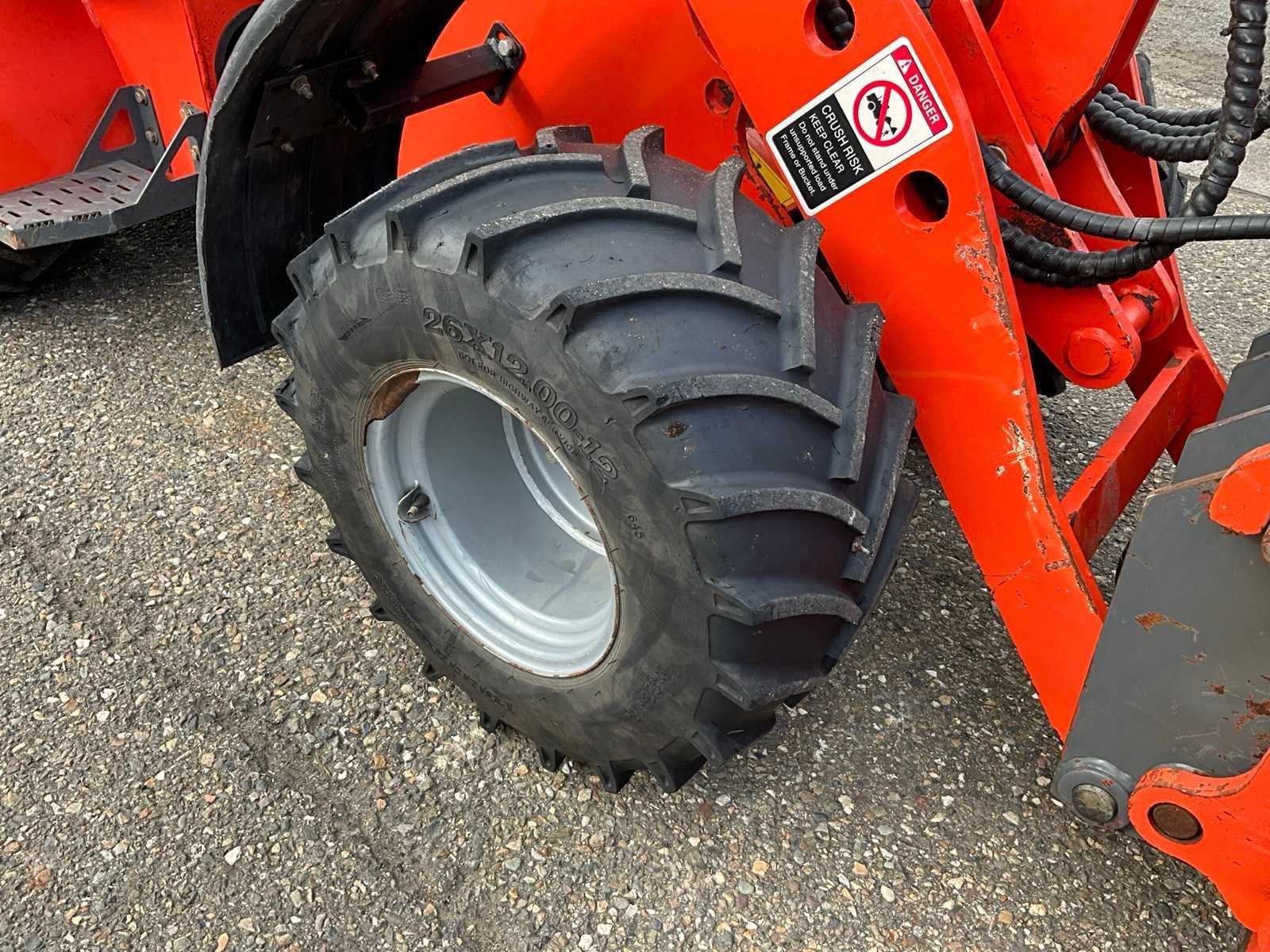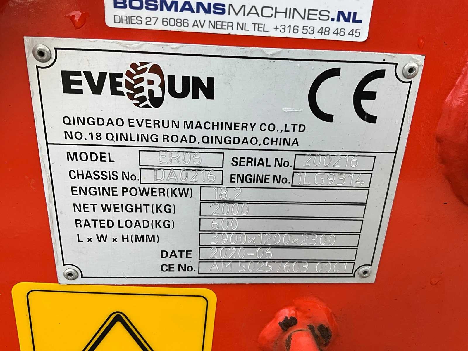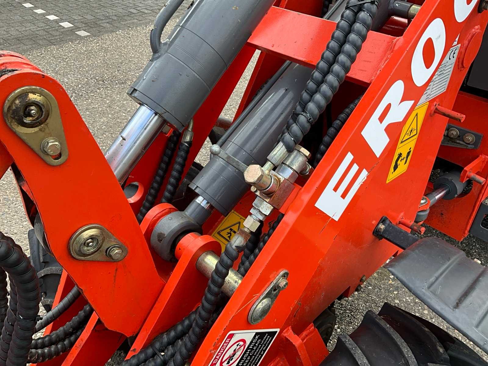 Hydraulische snelwissel, dichte bak 1200mm, vorkenbord 1000mm breed lengte vorken 900mm, 2x extra hydraulische functie, 4WD, wegverlichting Merk: Everun Type: ER06 Bouwjaar: 2020 Serienummer: 200216 Merk motor: Kubota D1105 Motorvermogen (kW): 18kW Aantal cilinders: 3 Brandstof: Diesel Bedrijfsgewicht: 2000kg Graafbak afm. b: 1200mm Bandenmaat: 26x12.00-12 Afgelezen urenstand: 130 Totale afmeting L: 4600mm Totale afmeting Breedte: 1200mm Totale afmeting Hoogte: 2350mm