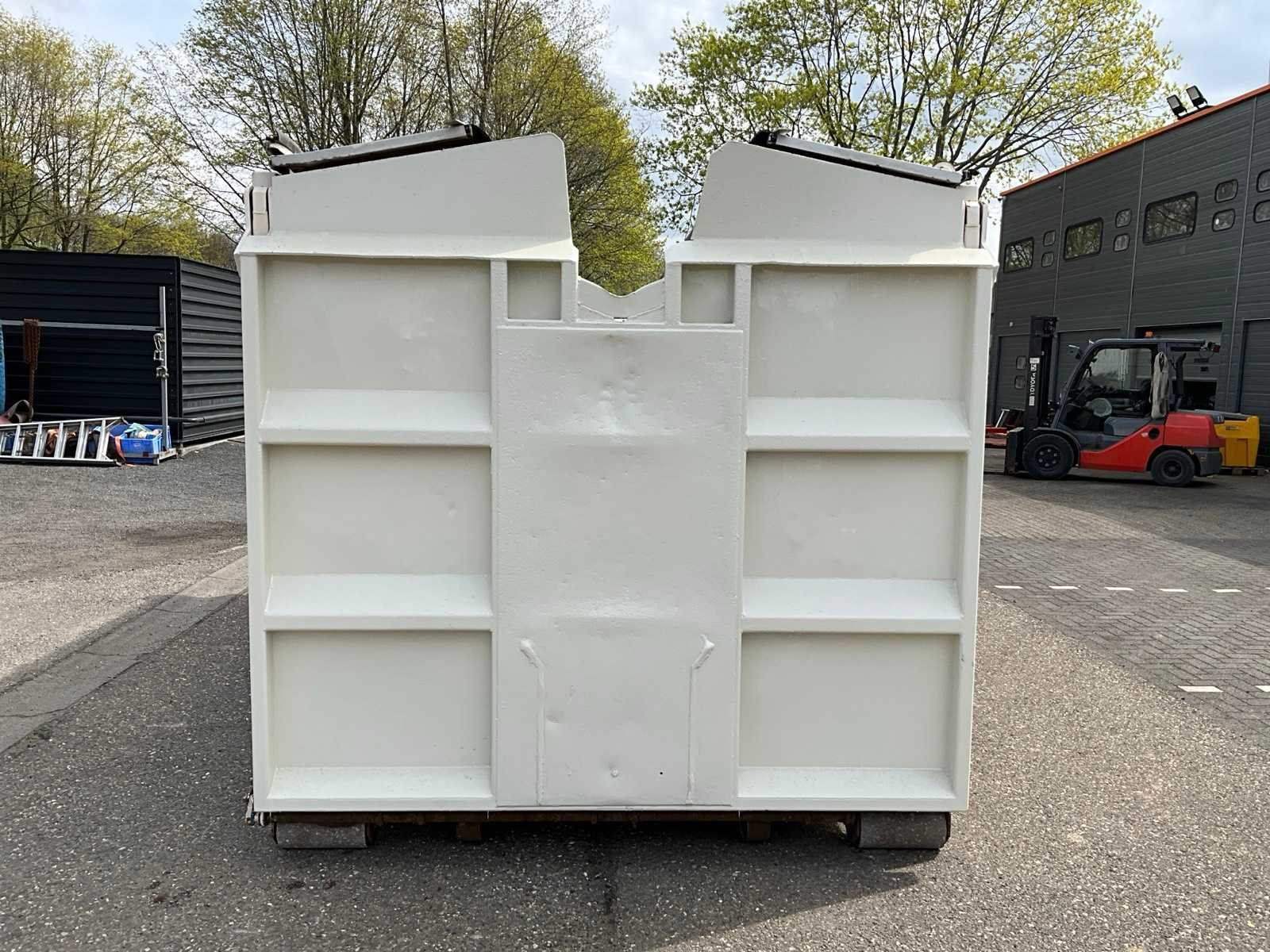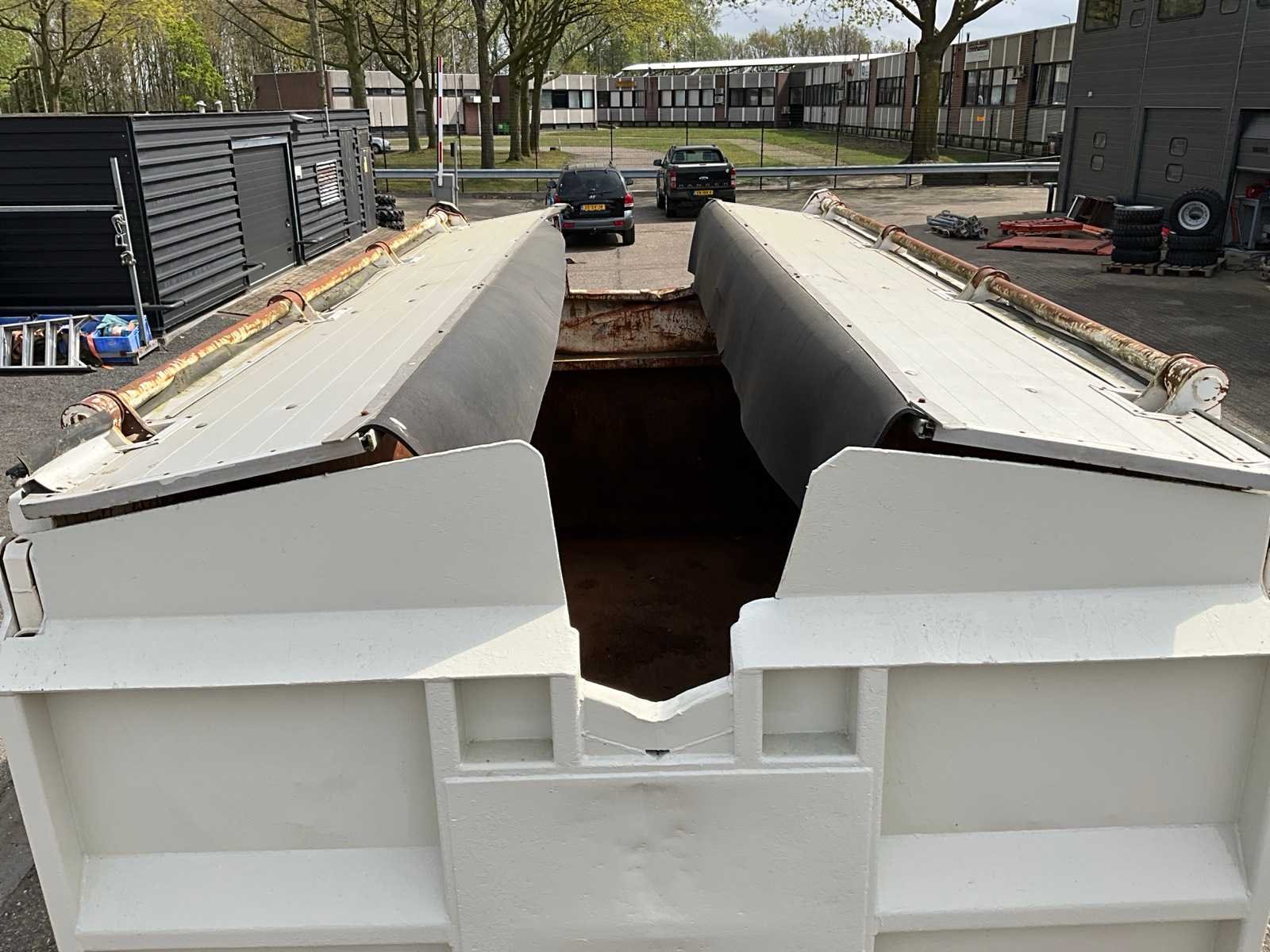 Achter klep, hydraulisch bediende afdekkleppen boven, inhoud +/- 23m3 Merk: Vossebelt Serienummer: A-020-69 Totale afmeting L: 6600mm Totale afmeting Breedte: 2500mm Totale afmeting Hoogte: 2400mm