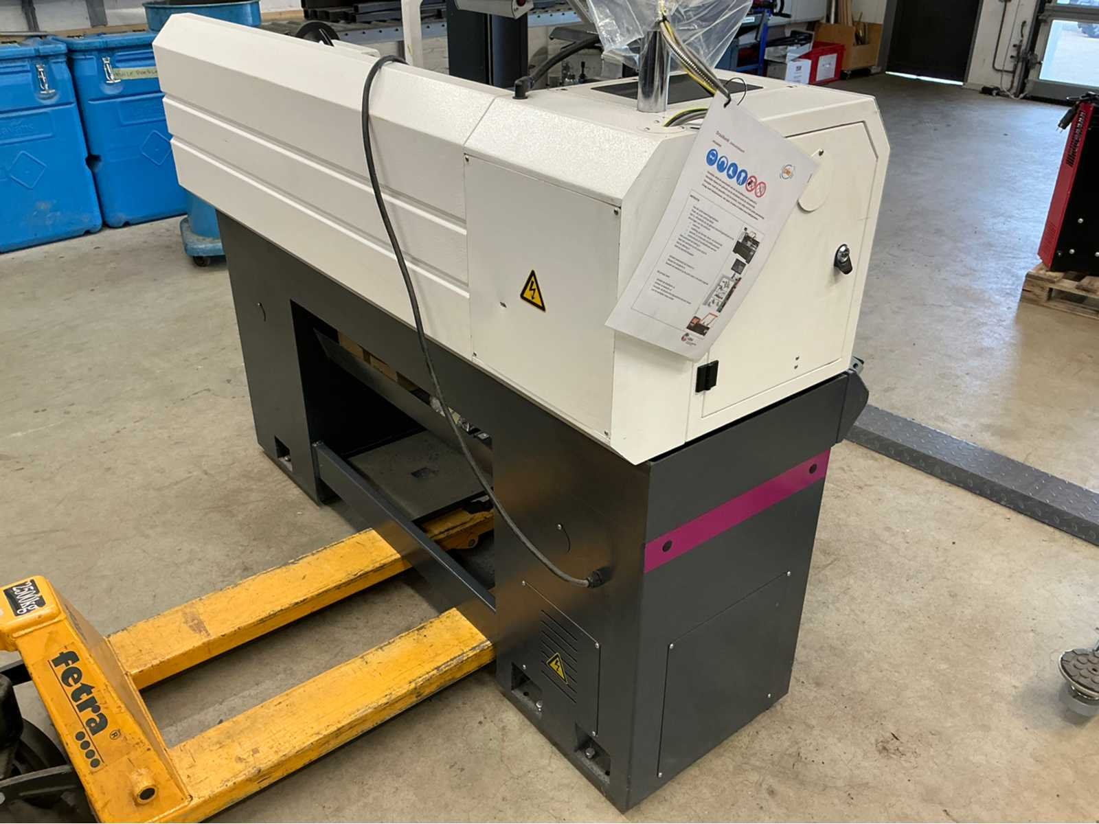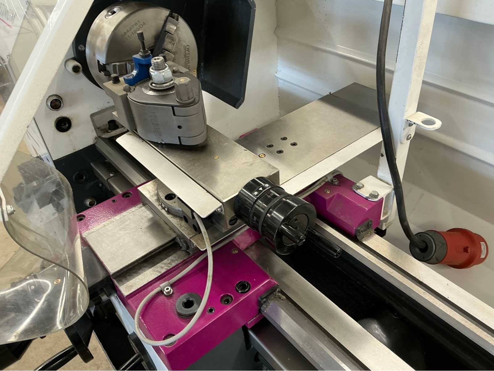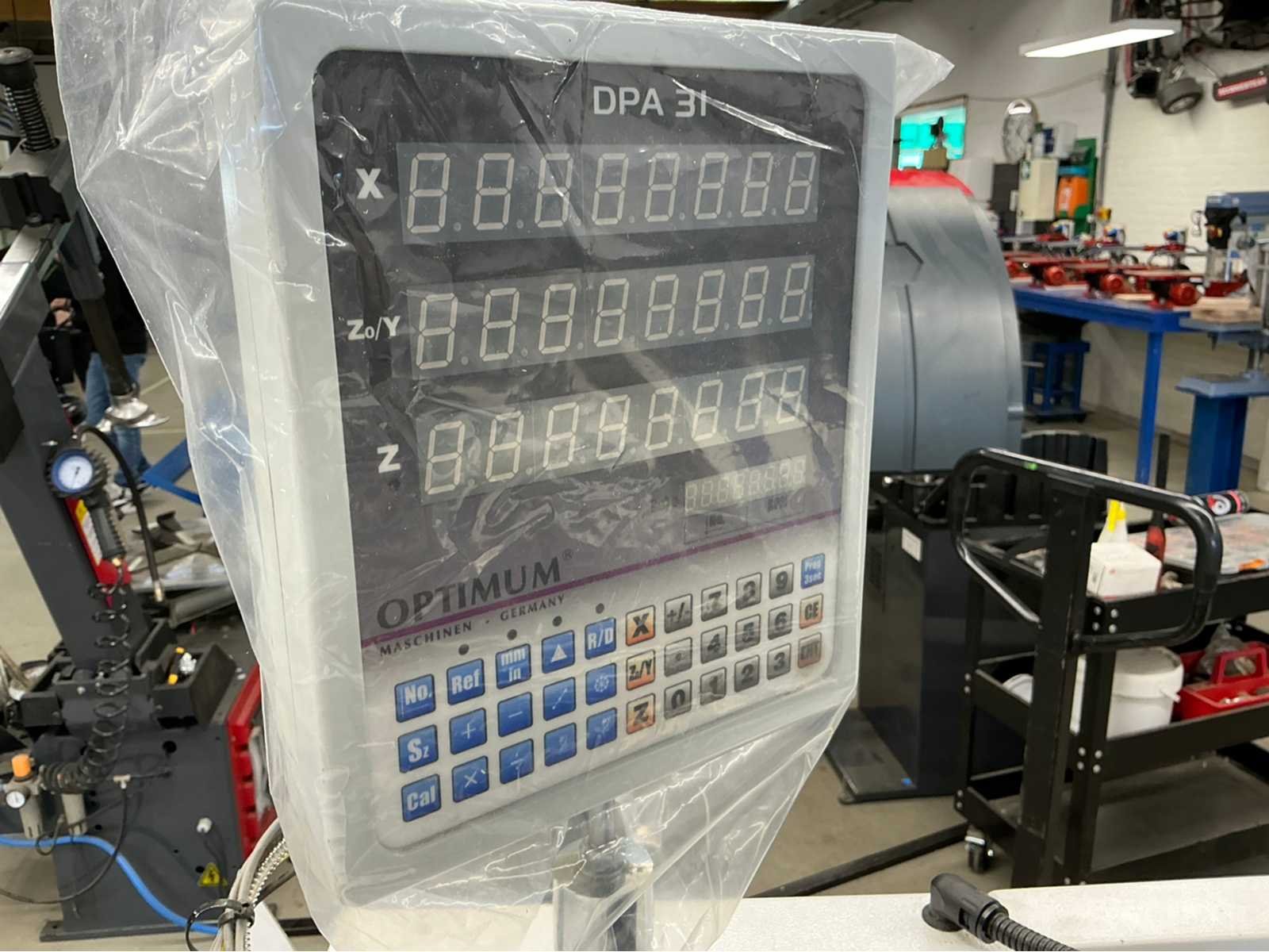 Type: OptiTurn TM3310D metaaldraaibank met digitale aflezing (3-assig) Aansluitspanning: 400 V Motorvermogen: ca. 1,5 kW Centerhoogte: 165 mm Centerafstand: 1000 mm Max. draaidiameter boven bed: ca. 330 mm Max. draaidiameter boven dwarsslede: ca. 216 mm Spilboring: 38 mm Spilopname: Camlock DIN ISO 702-2 nr. 4 Spindelconus: MK5 Toerentalbereik: ca. 65 – 2000 omw/min (9 standen) Langsvoeding: ca. 0,02 – 0,4 mm/omw Dwarsvoeding: ca. 0,01 – 0,2 mm/omw Schroefdraad snijden: metrisch en inch Verplaatsing dwarsslede: ca. 168 mm Verplaatsing bovenslede: ca. 90 mm Losse kop opname: MK3 Pinoolslag: ca. 100 mm Geleidingen: gehard en geslepen prismabed Nauwkeurigheid (spilrondloop): < 0,015 mm Afmetingen (lxbxh): ca. 1760 × 745 × 1320 mm Gewicht: ca. 470 kg Voorzien van: 1 x Kit 5-delige snelwisselhouder 1 x Draaibeitelset WP 16 mm 7dlg, 790034324 1 x Snelspan boorkop tot 16 mm 1 x Boorkopstaart 1 x Meedraaiend centerpunt verlengde punt MK 3 6 x Trildempers Merk: Optiturn Type: TM3310D Bouwjaar: 2022 Serienummer: 12312204003 Draailengte: 1000mm Aansluiting: 400V Machinegewicht: 440kg Afmeting l: 1760mm Afmeting b: 745mm Afmeting h: 1320mm