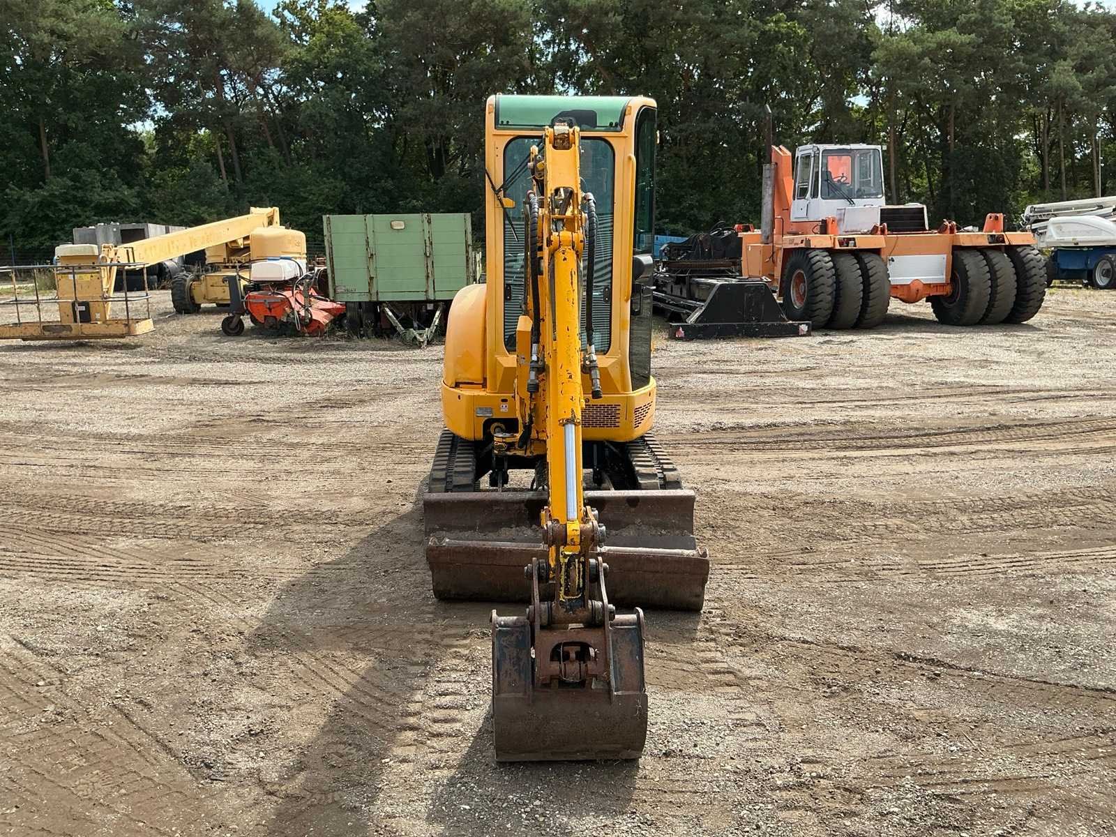 Voorzien van: tandenbak 480mm, opschoonbak 1200mm, mechanische snelwissel, aux. functie op giek, dozerblad, cilinder bescherming (giek, arm, bak, blad), ROPS/FOPS-cabine, joystickbediening, armleuningen, schuifstoel, rijhendels en pedalen, bouwjaar: 2012, motorvermogen: 14,3 kW, diesel, eigen gewicht: ca. 2.405 kg, normering: CE, max. graafdiepte: ca. 2.505 mm, achterzwenkradius: 690 mm, rupsbreedte: 250 mm, Zero tail swing, lengte: ca. 3.890 – 4.400 mm, breedte: ca. 1.380 mm, hoogte: ca. 2.460 – 2.500 mm, gesloten cabine. Merk: Yanmar Type: VIO 20-4 Bouwjaar: 2012 Serienummer: YCEVIOVCF401170 Motorvermogen (kW): 14.3kW Brandstof: Diesel Bedrijfsgewicht: 2405kg Inclusief graafbak: Yes Graafbak afm. b: 480mm Rups breedte: 250mm Afgelezen urenstand: 4064 Eigen gewicht: 2405kg Totale afmeting L: 3900mm Totale afmeting Breedte: 1380mm Totale afmeting Hoogte: 2500mm
